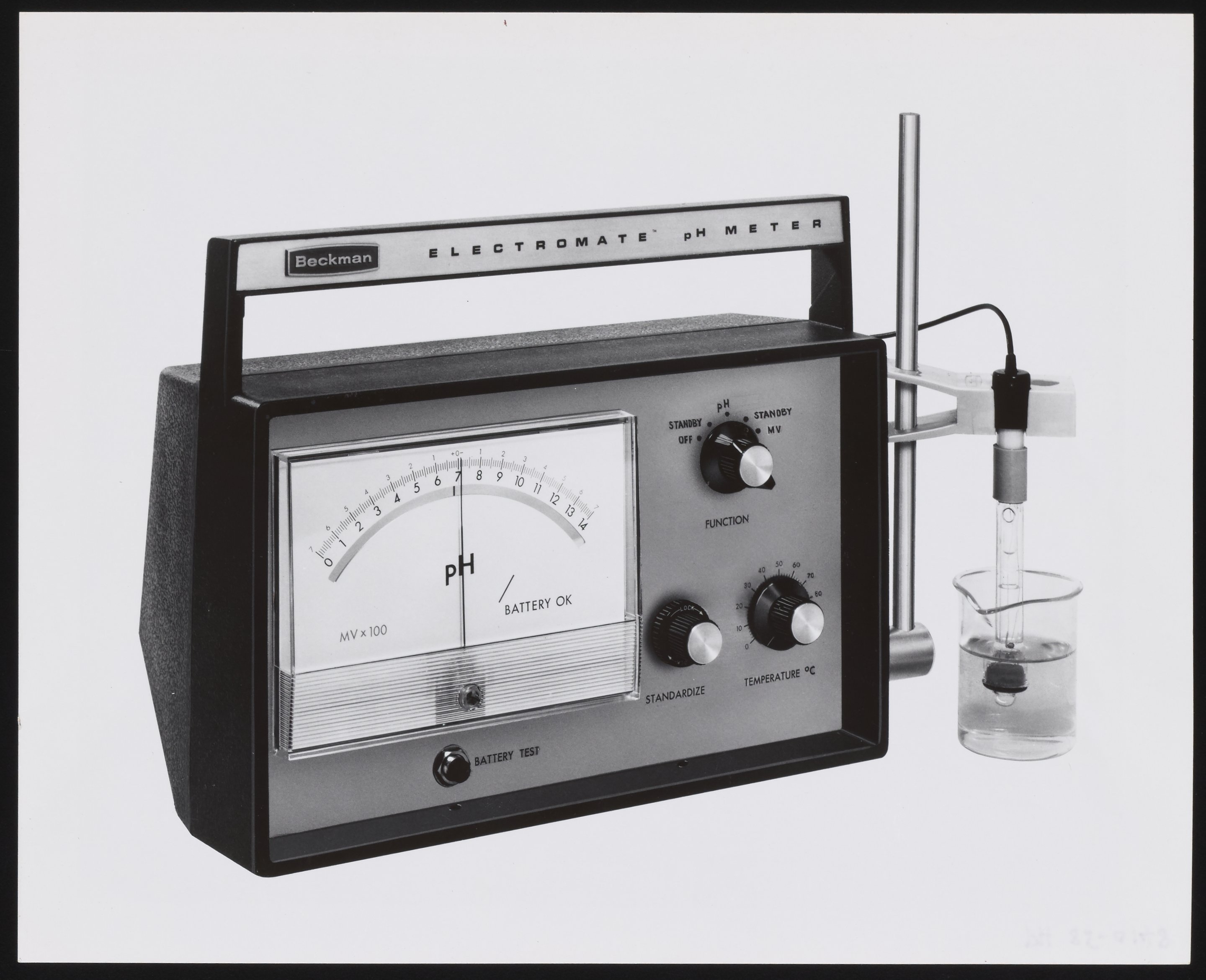 “Beckman Electromate PH Meter,” n.d. Beckman Historical Collection, Box 55, Folder 177. Science History Institute. Philadelphia. https://digital.sciencehistory.org/works/rn301144t.