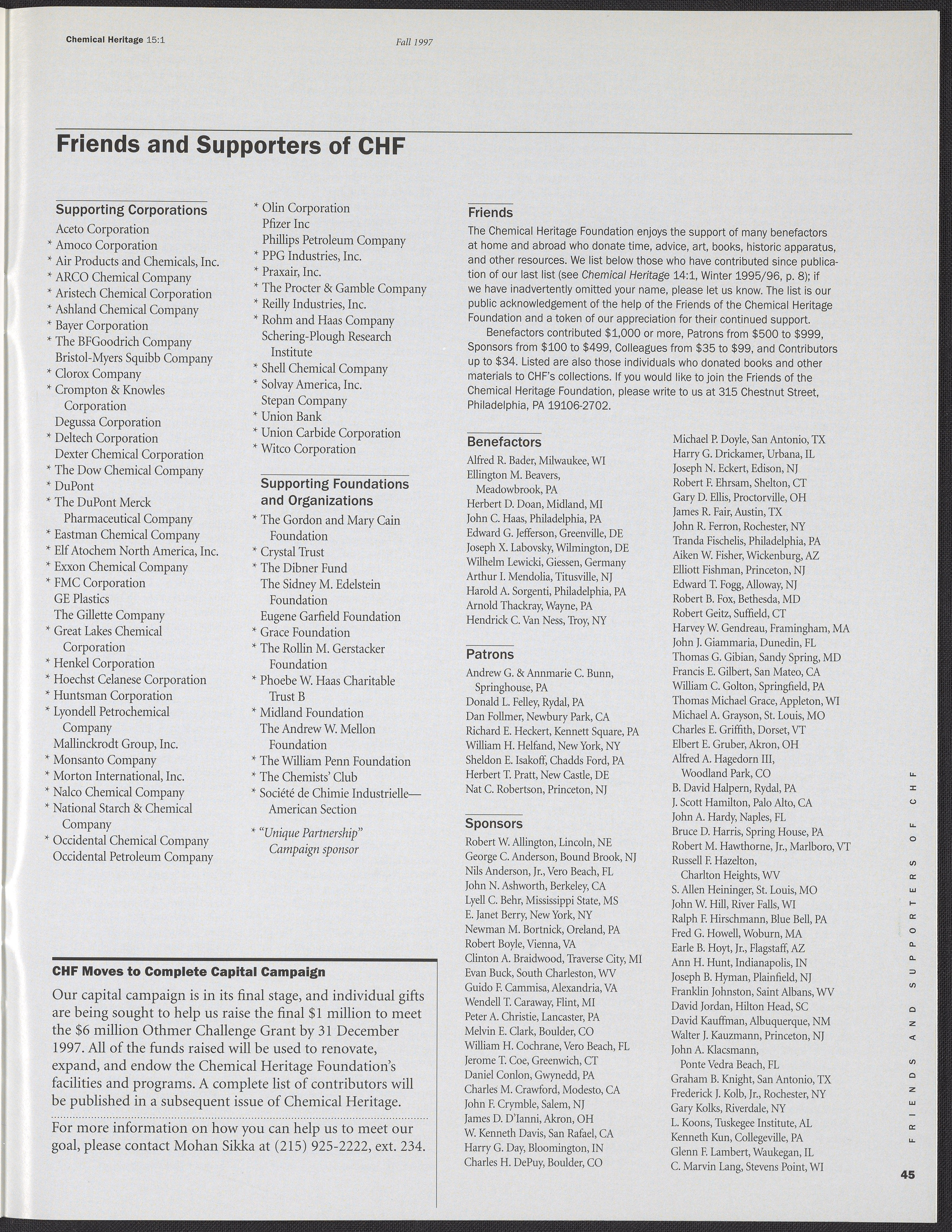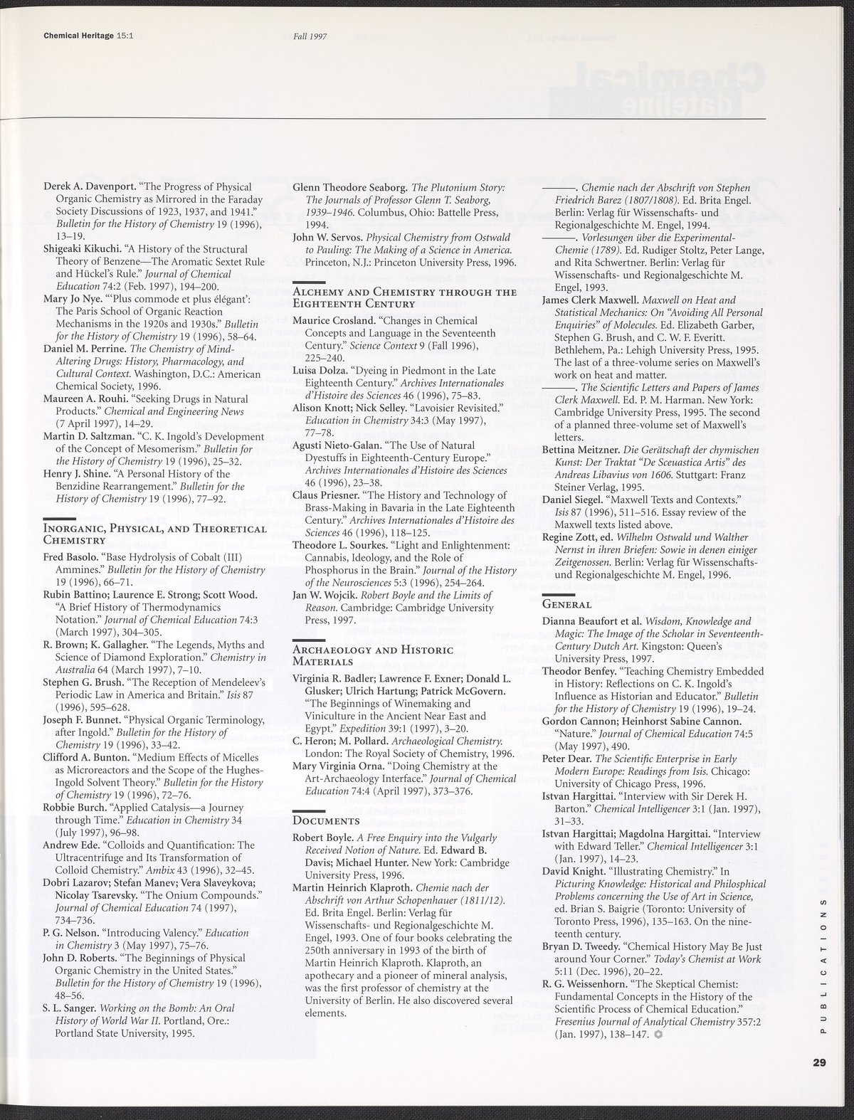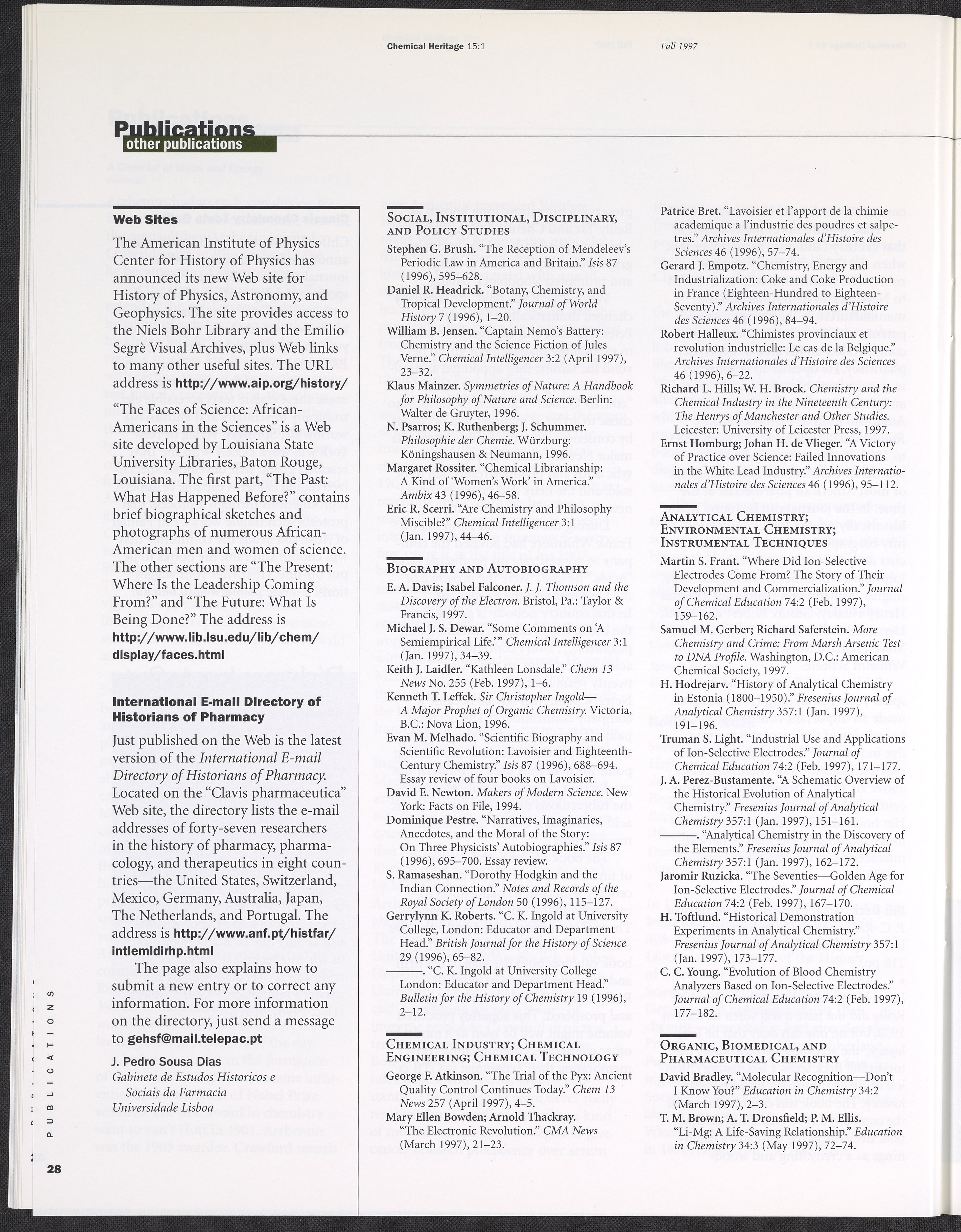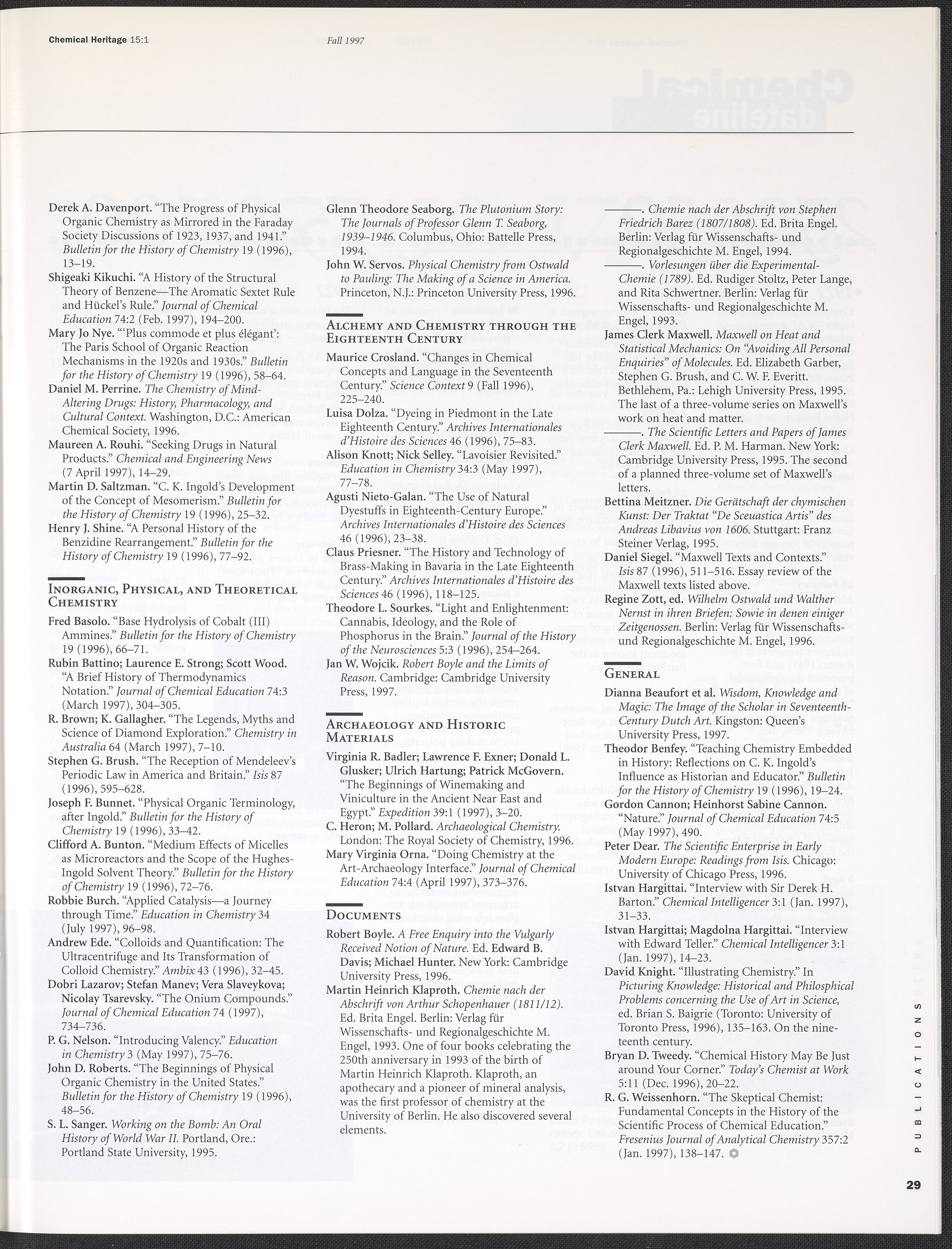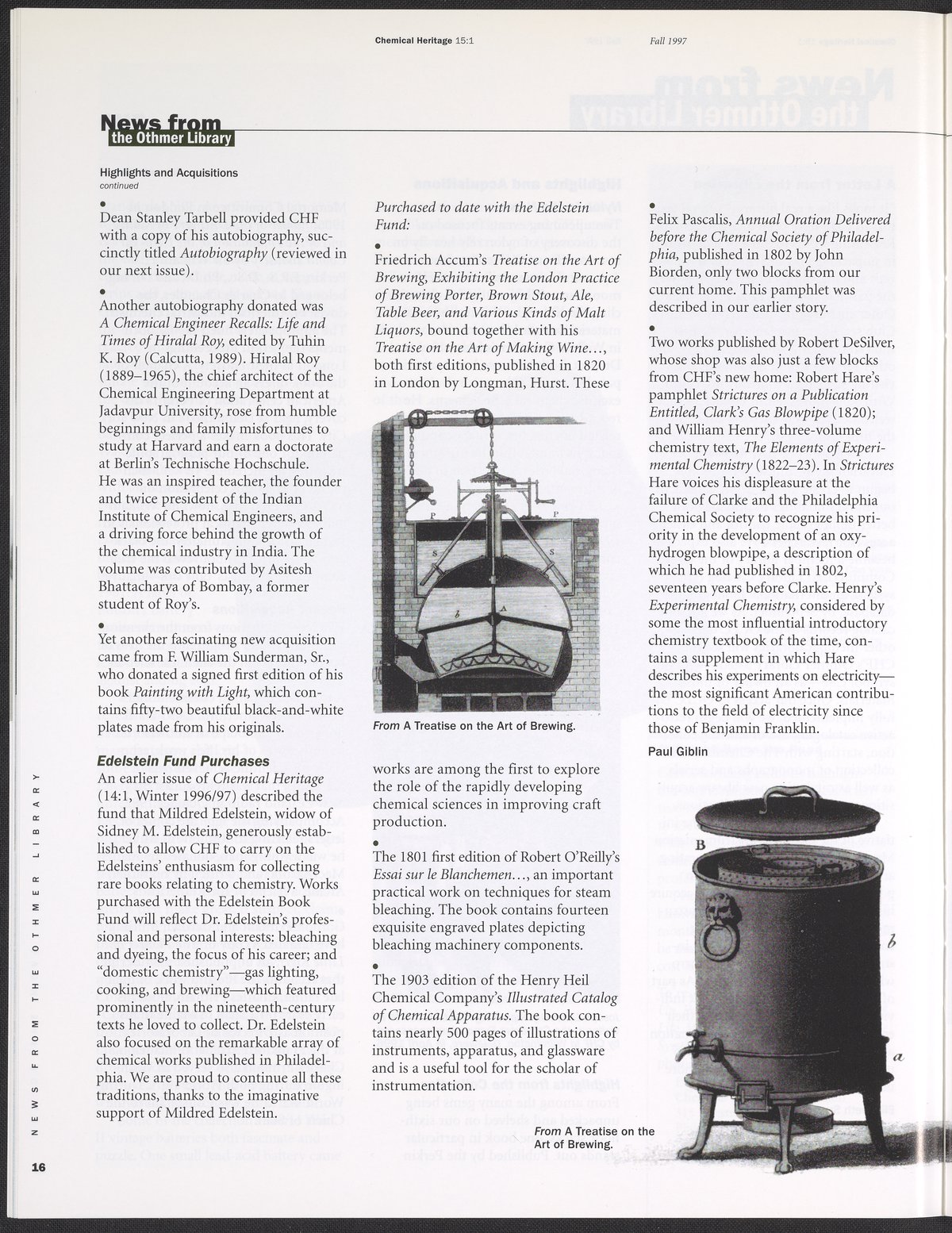 “Chemical Heritage, Volume 15 Number 1.” Philadelphia, Pennsylvania: Chemical Heritage Foundation, 1997. 099C001. Science History Institute. Philadelphia. https://digital.sciencehistory.org/works/row1swz.