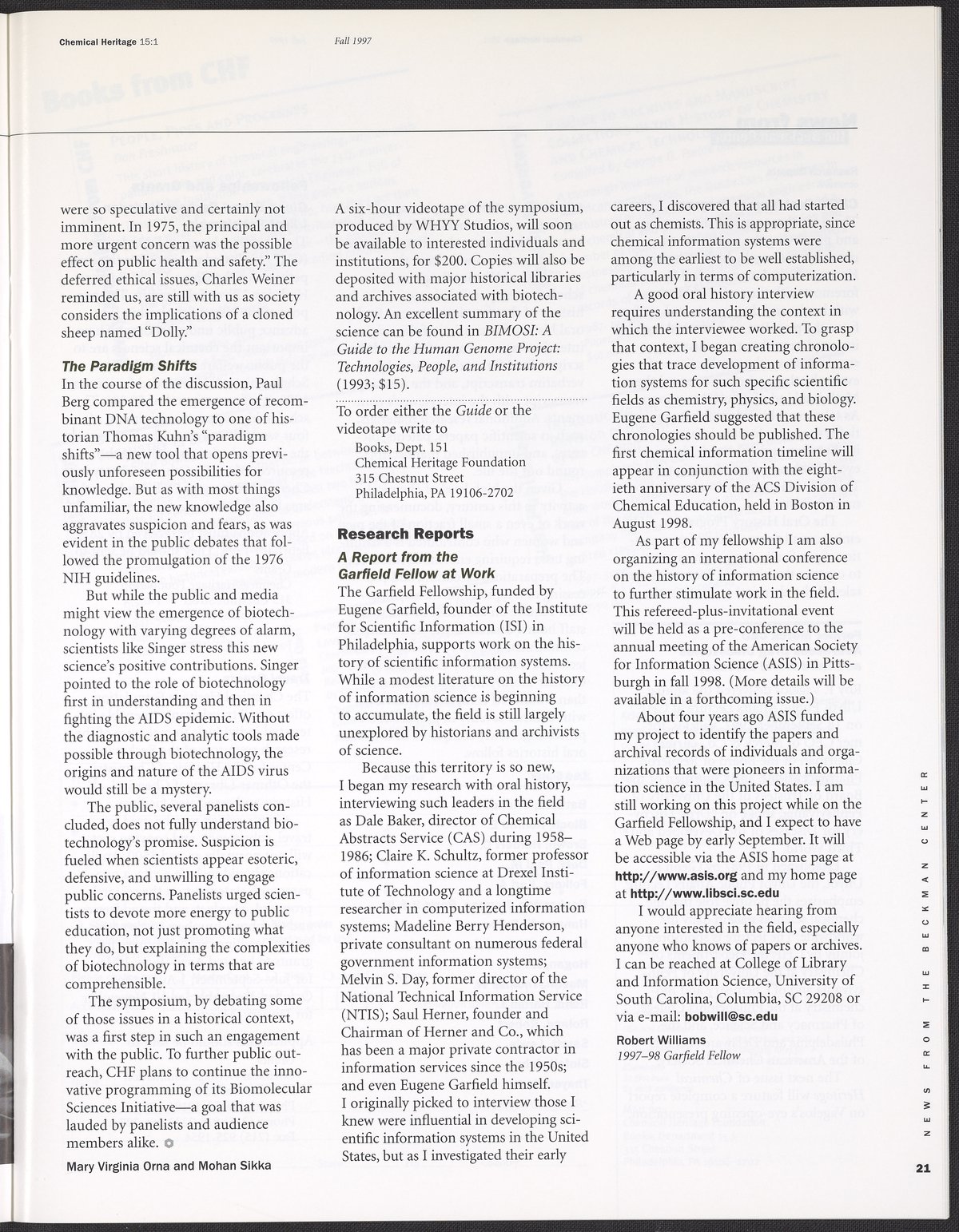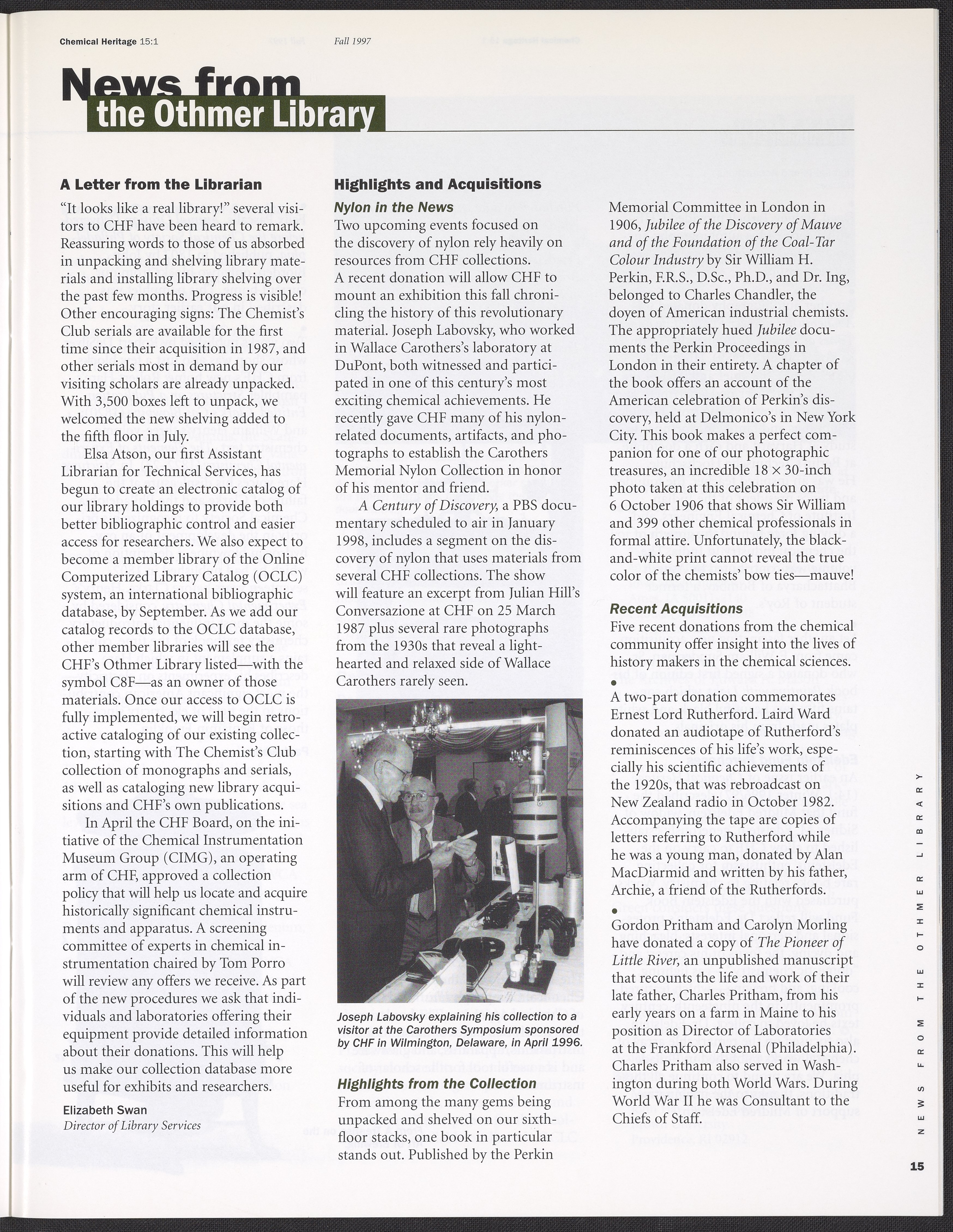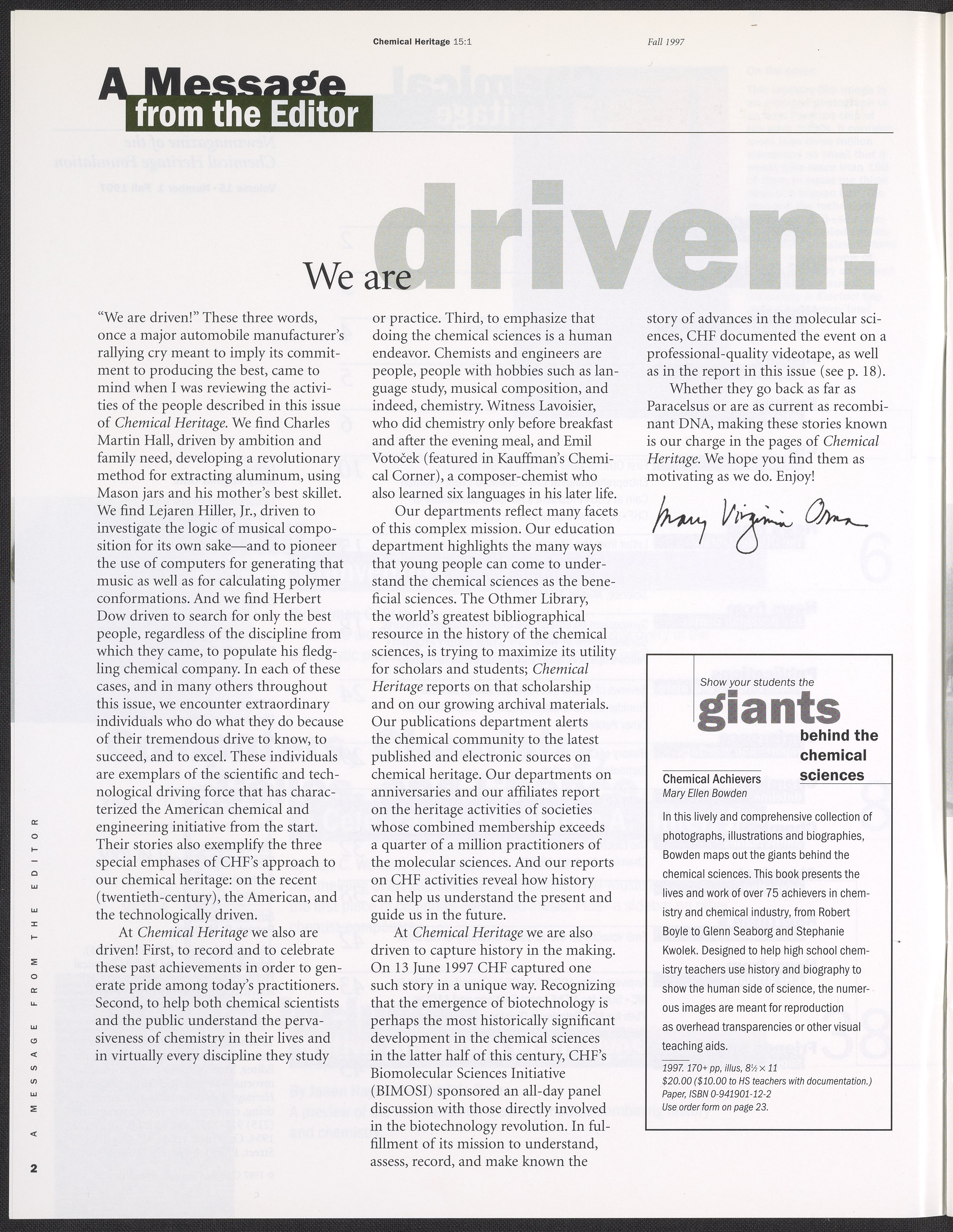 Chemical Heritage, Volume 15 Number 1