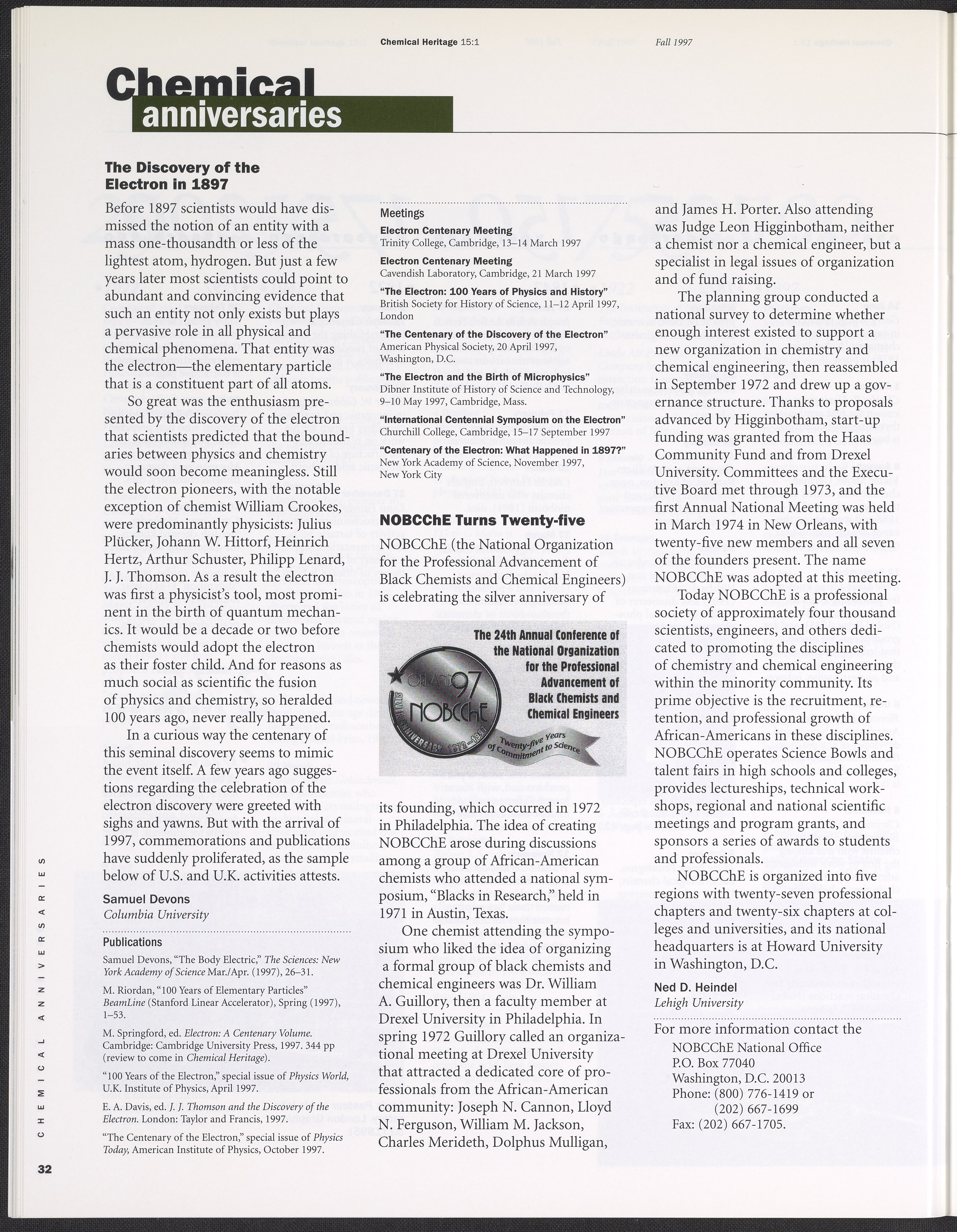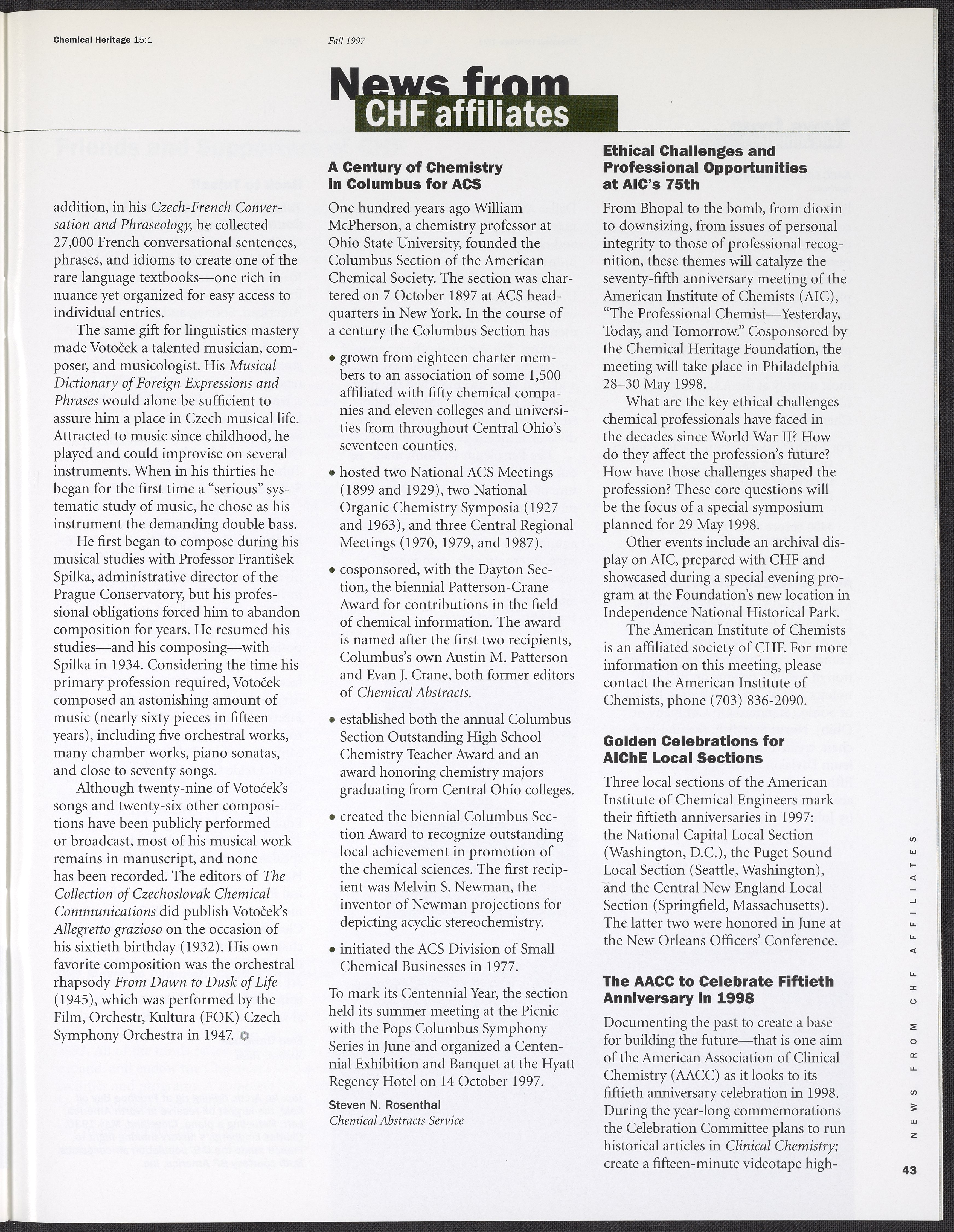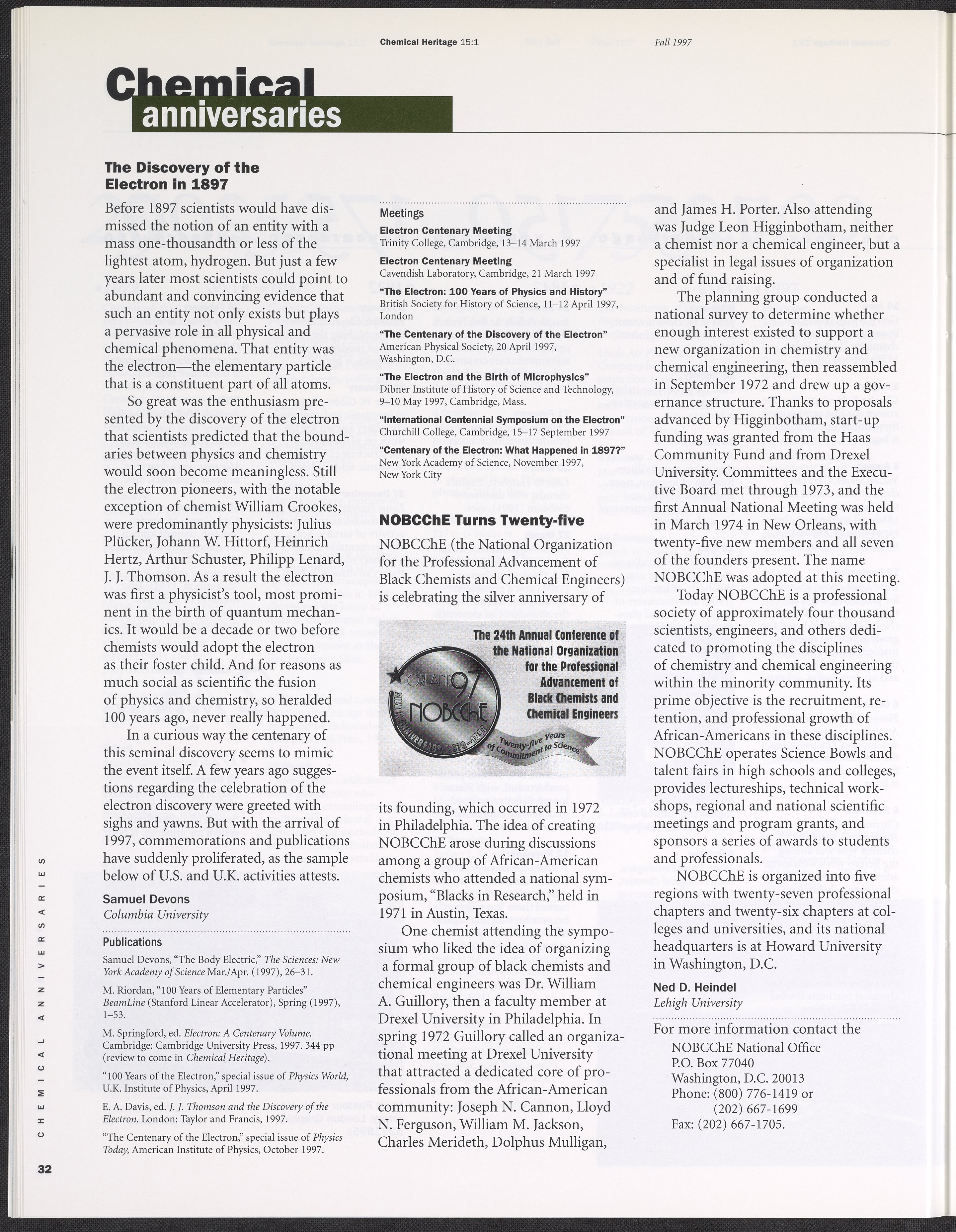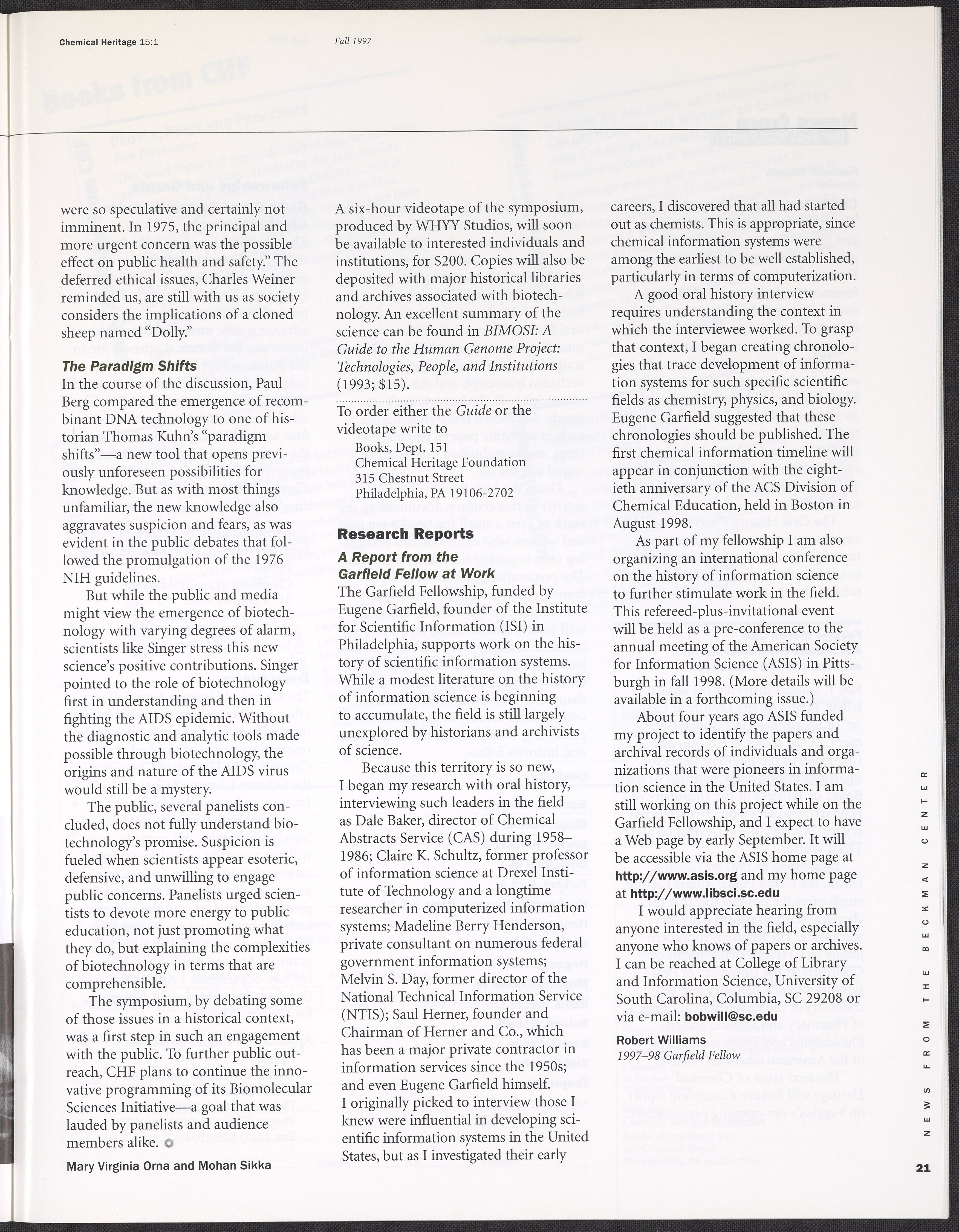 Chemical Heritage, Volume 15 Number 1