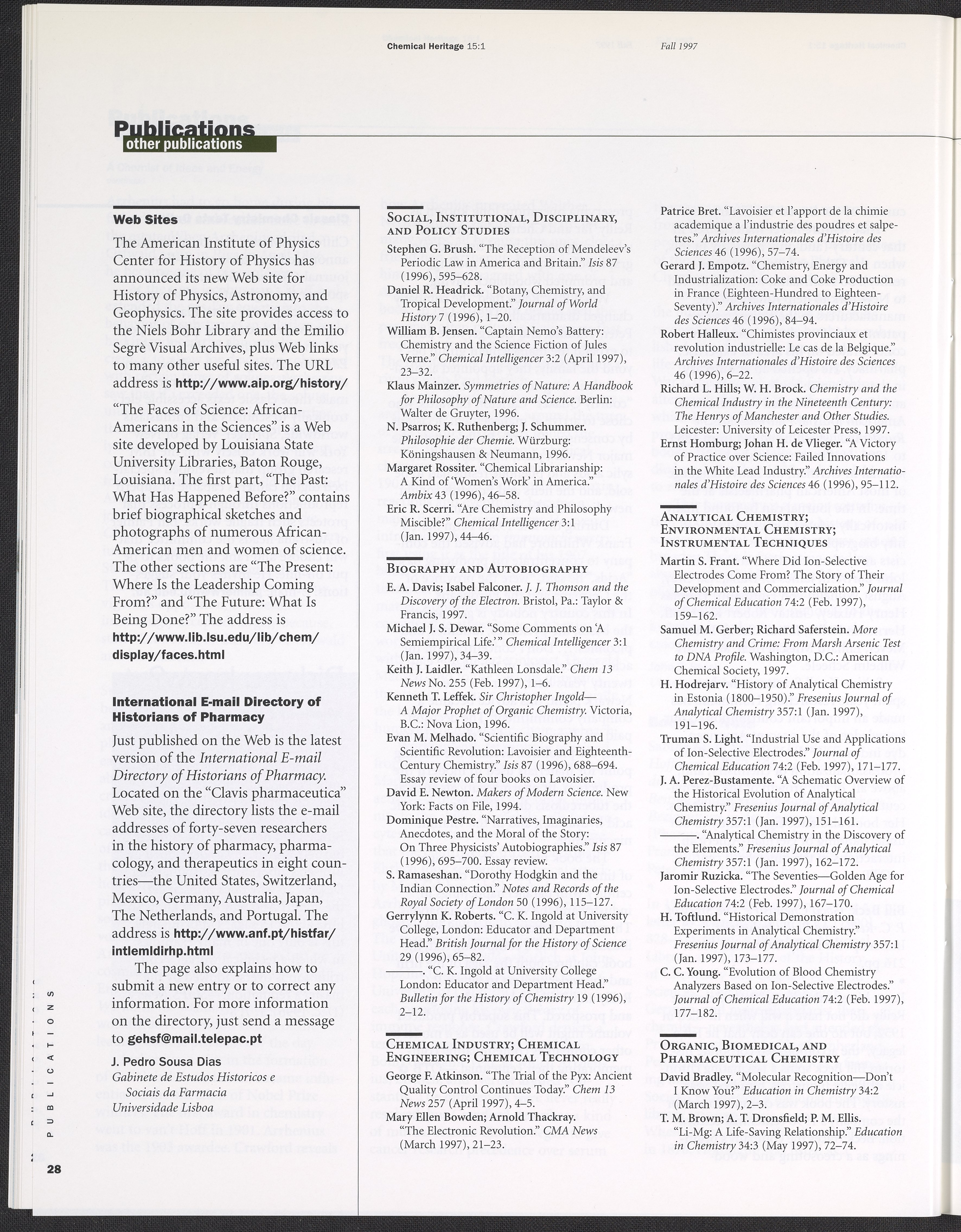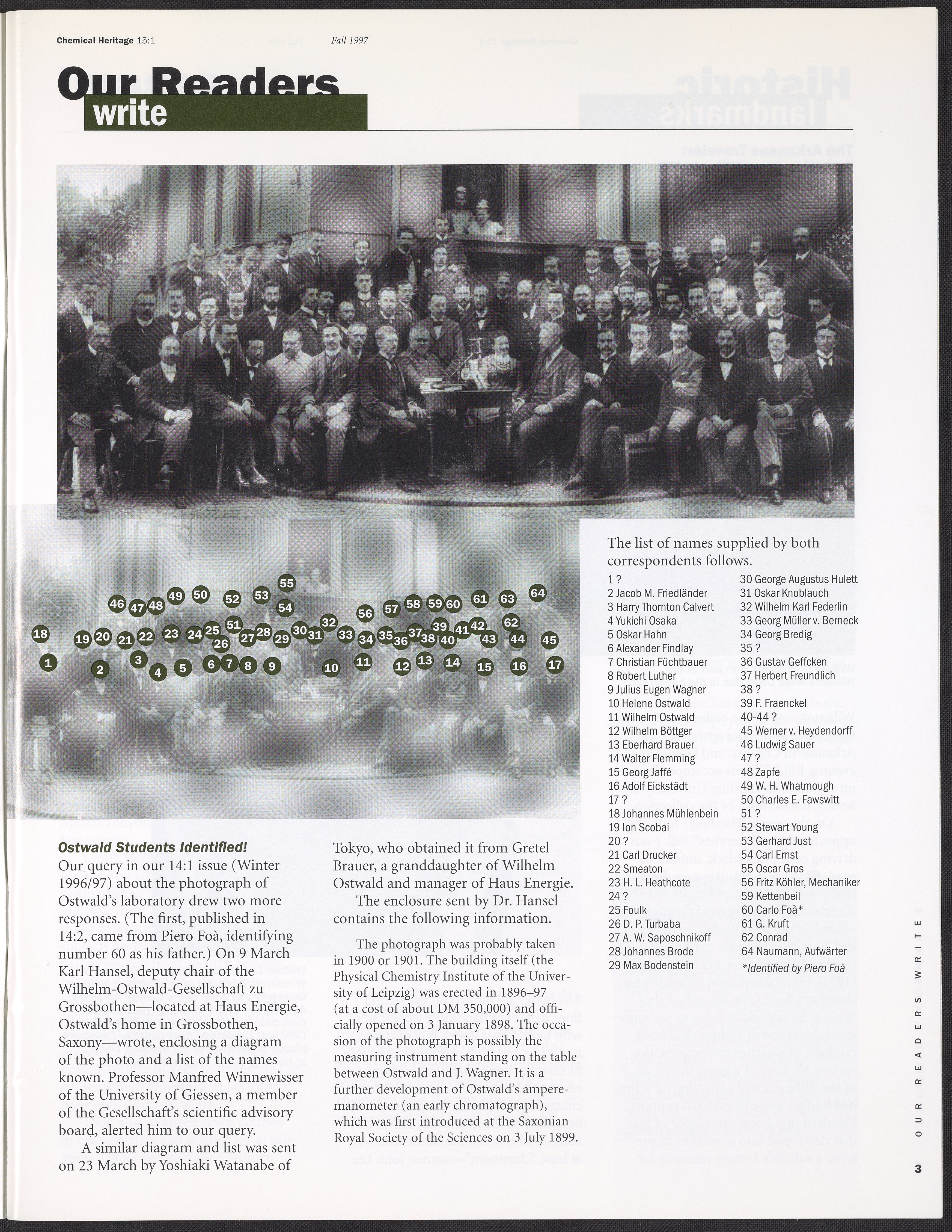 Chemical Heritage, Volume 15 Number 1
