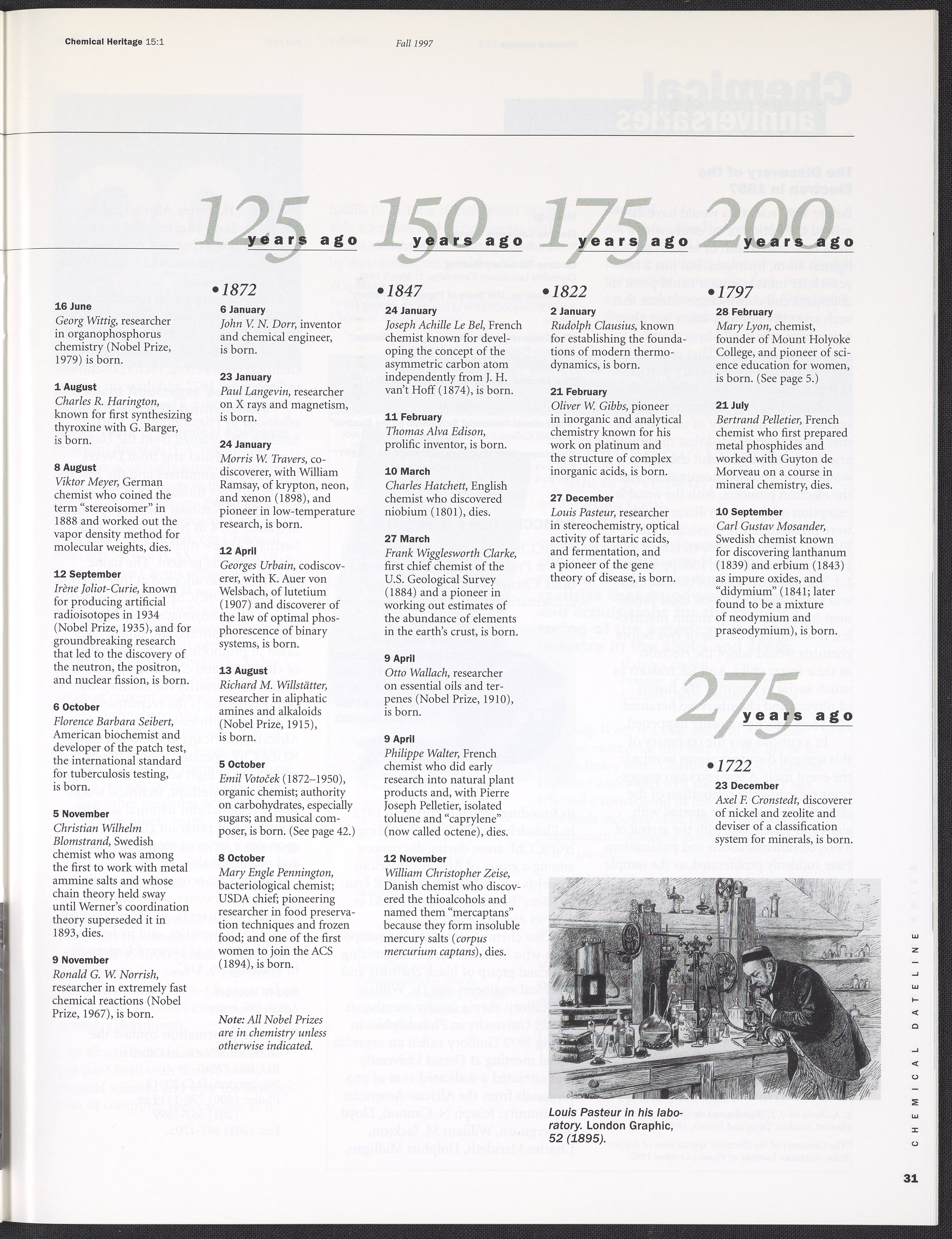 “Chemical Heritage, Volume 15 Number 1.” Philadelphia, Pennsylvania: Chemical Heritage Foundation, 1997. 099C001. Science History Institute. Philadelphia. https://digital.sciencehistory.org/works/row1swz.