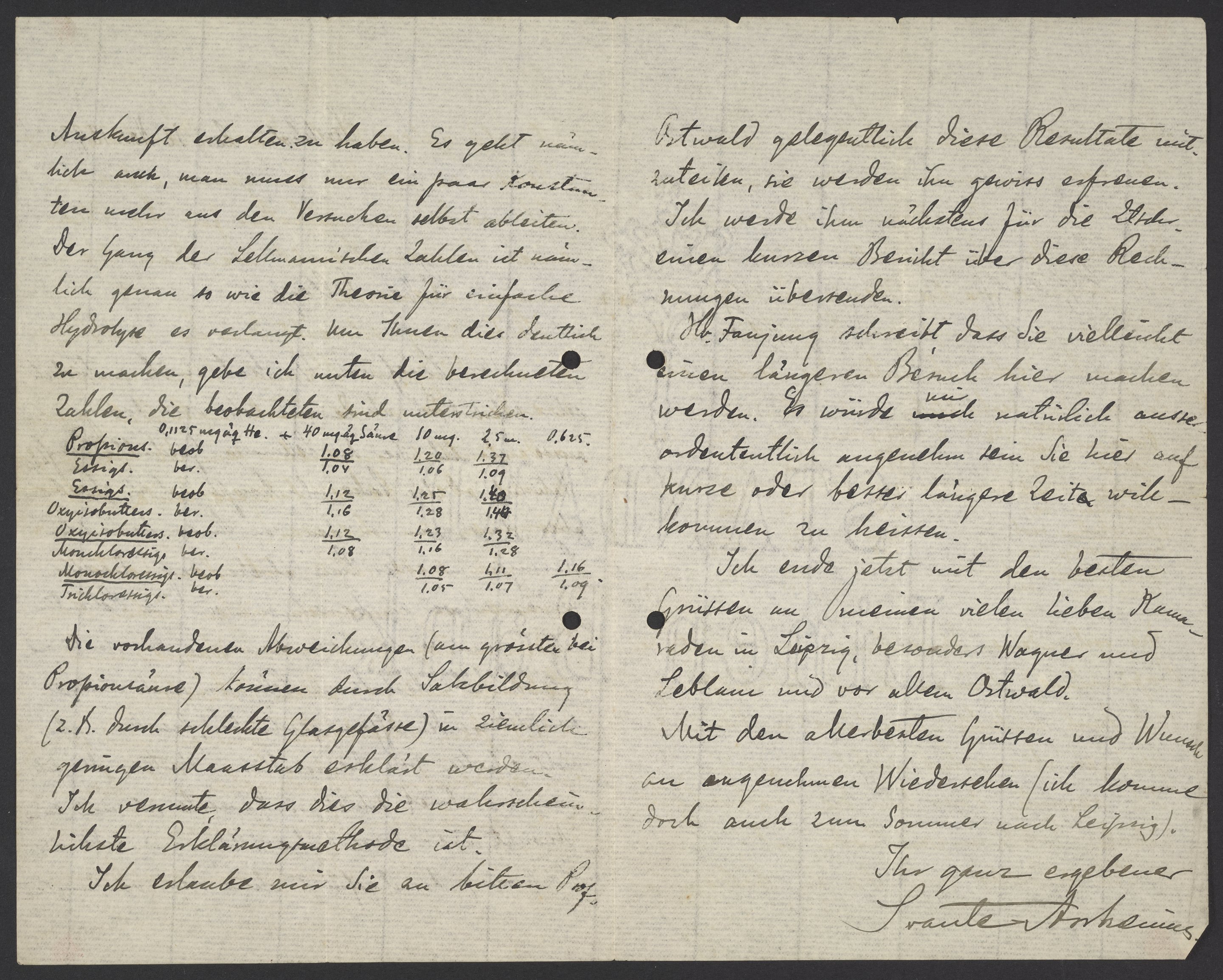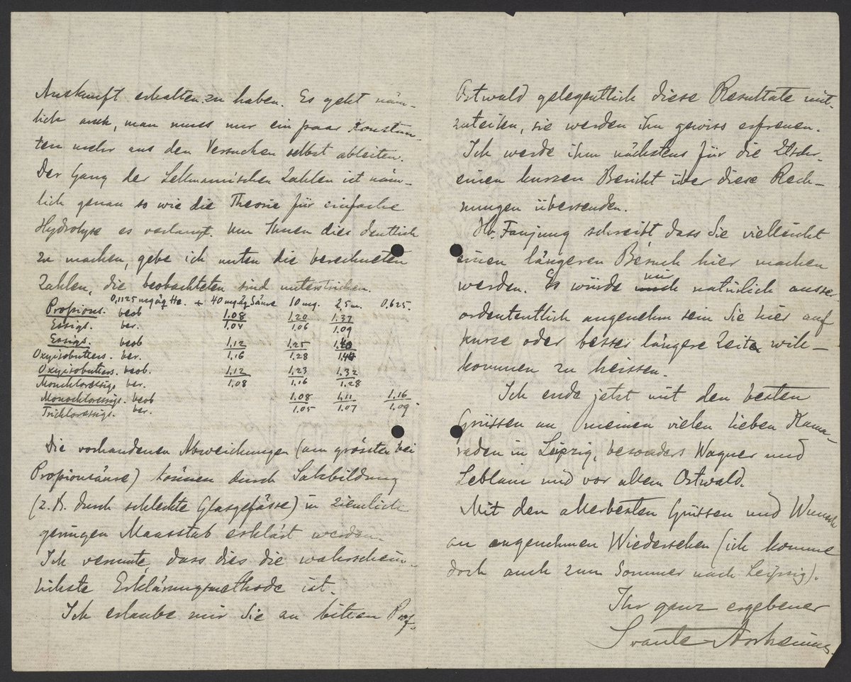 I will end now by conveying my best regards to my many dear friends in Leipzig, especially Wagner and Leblum, and above all Ostwald.