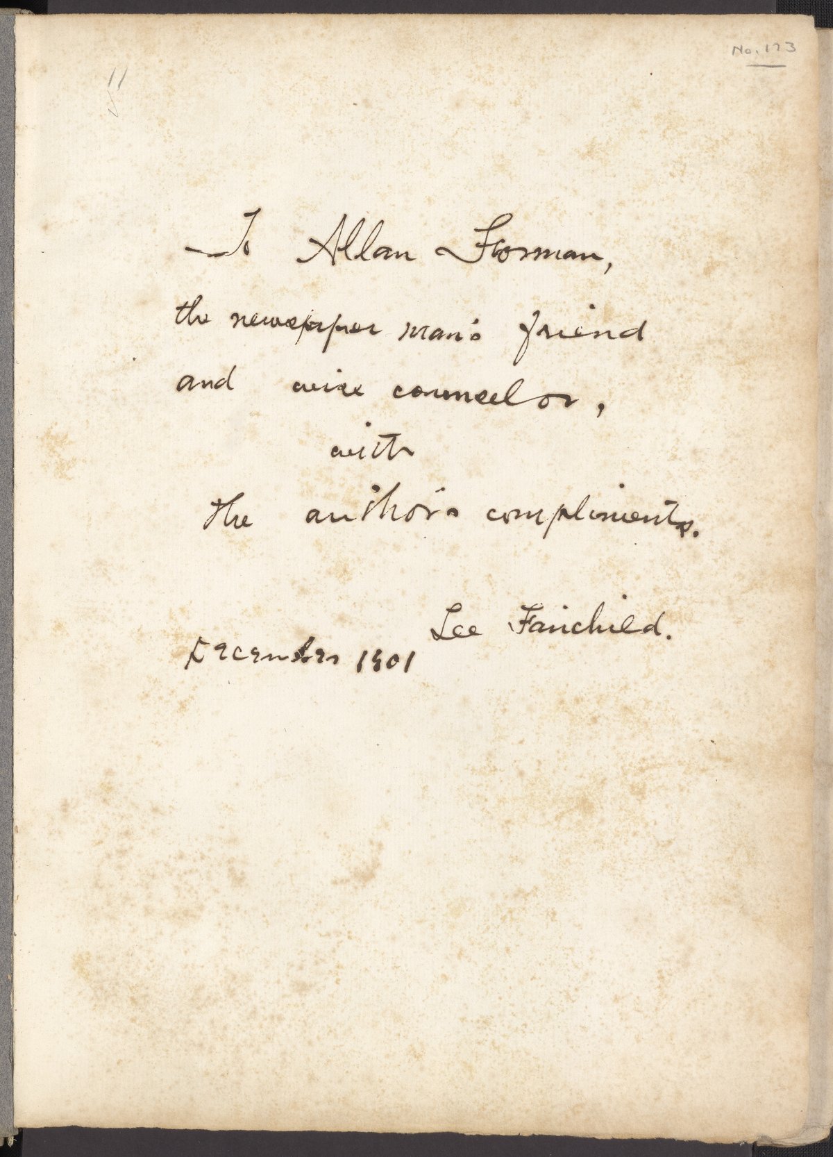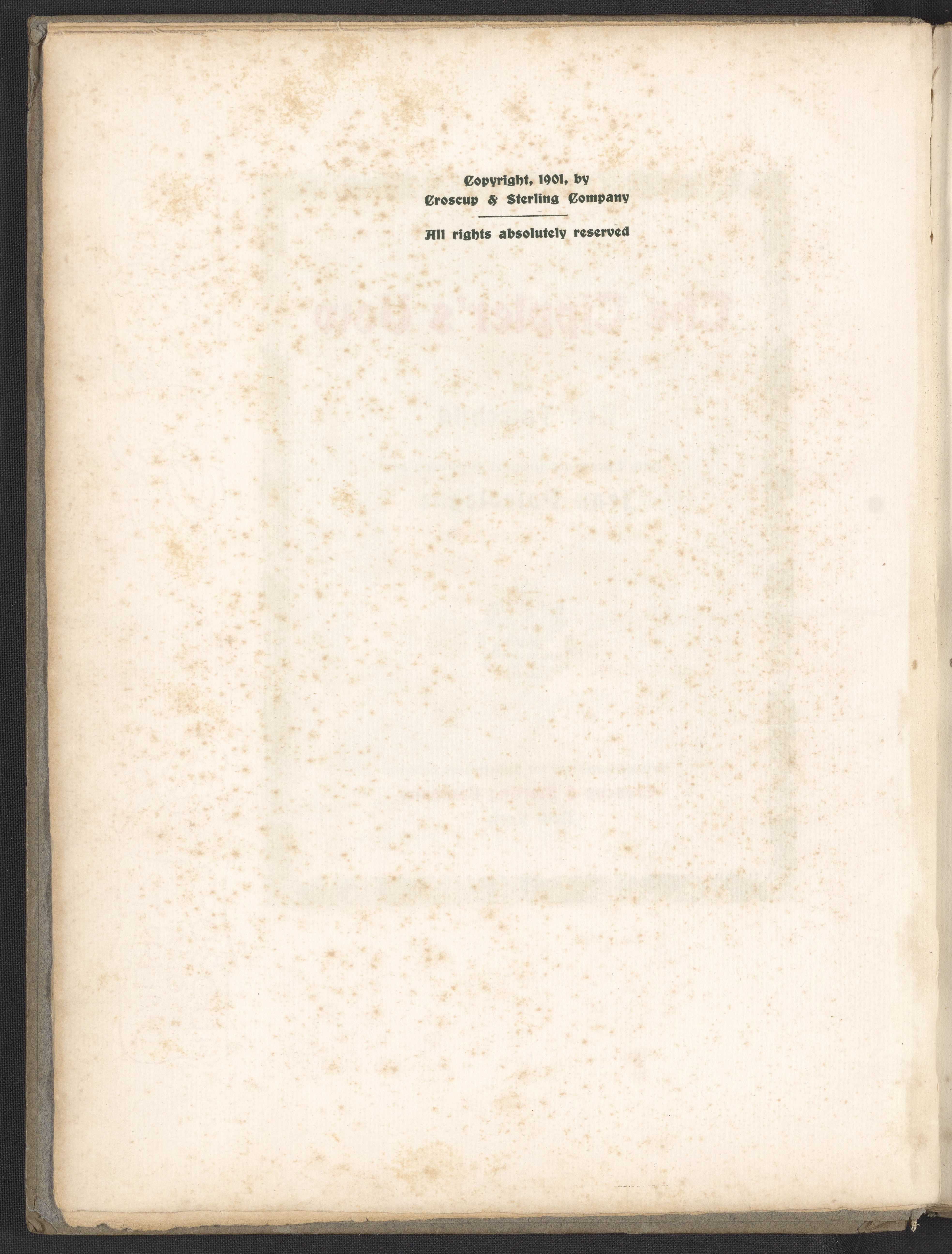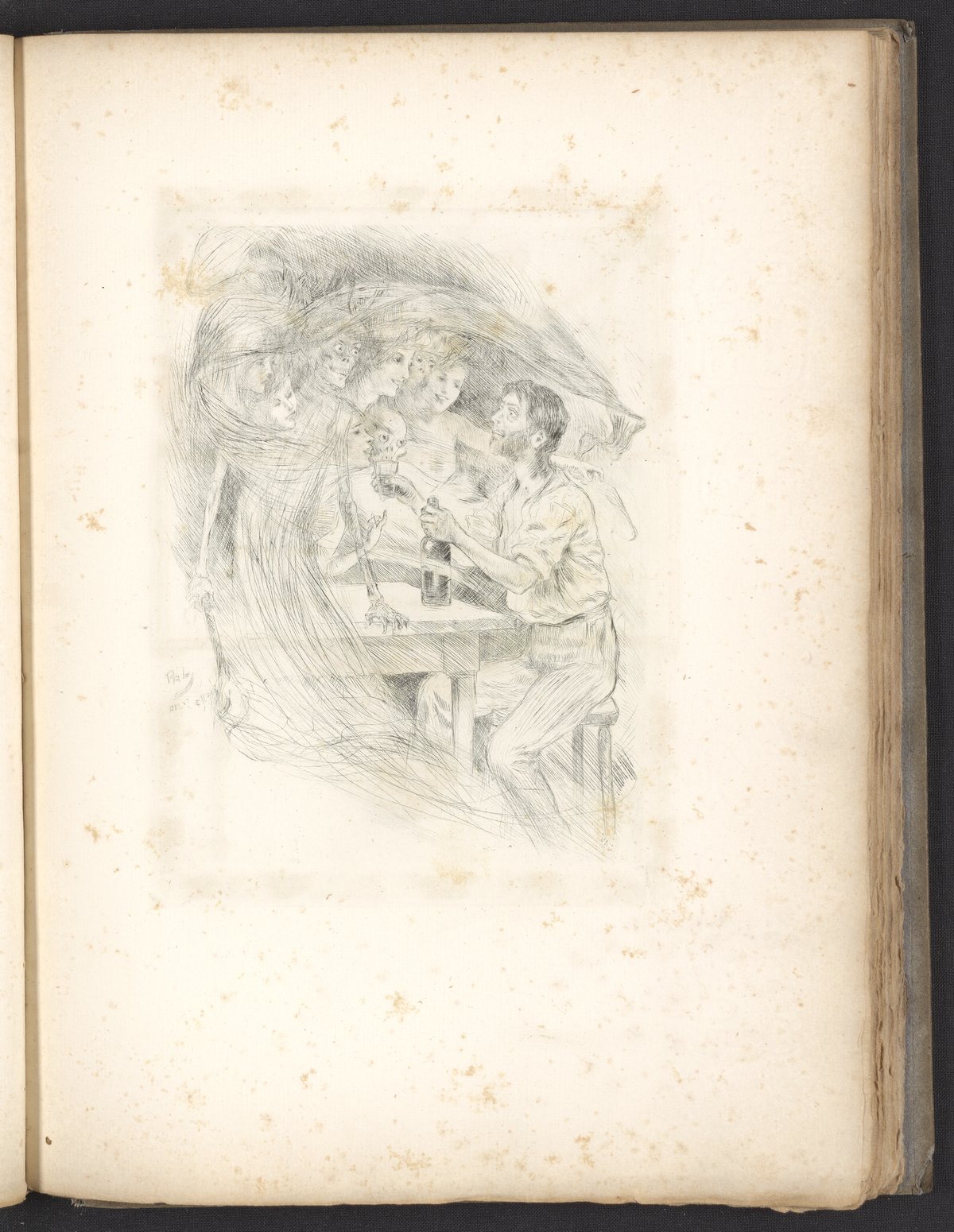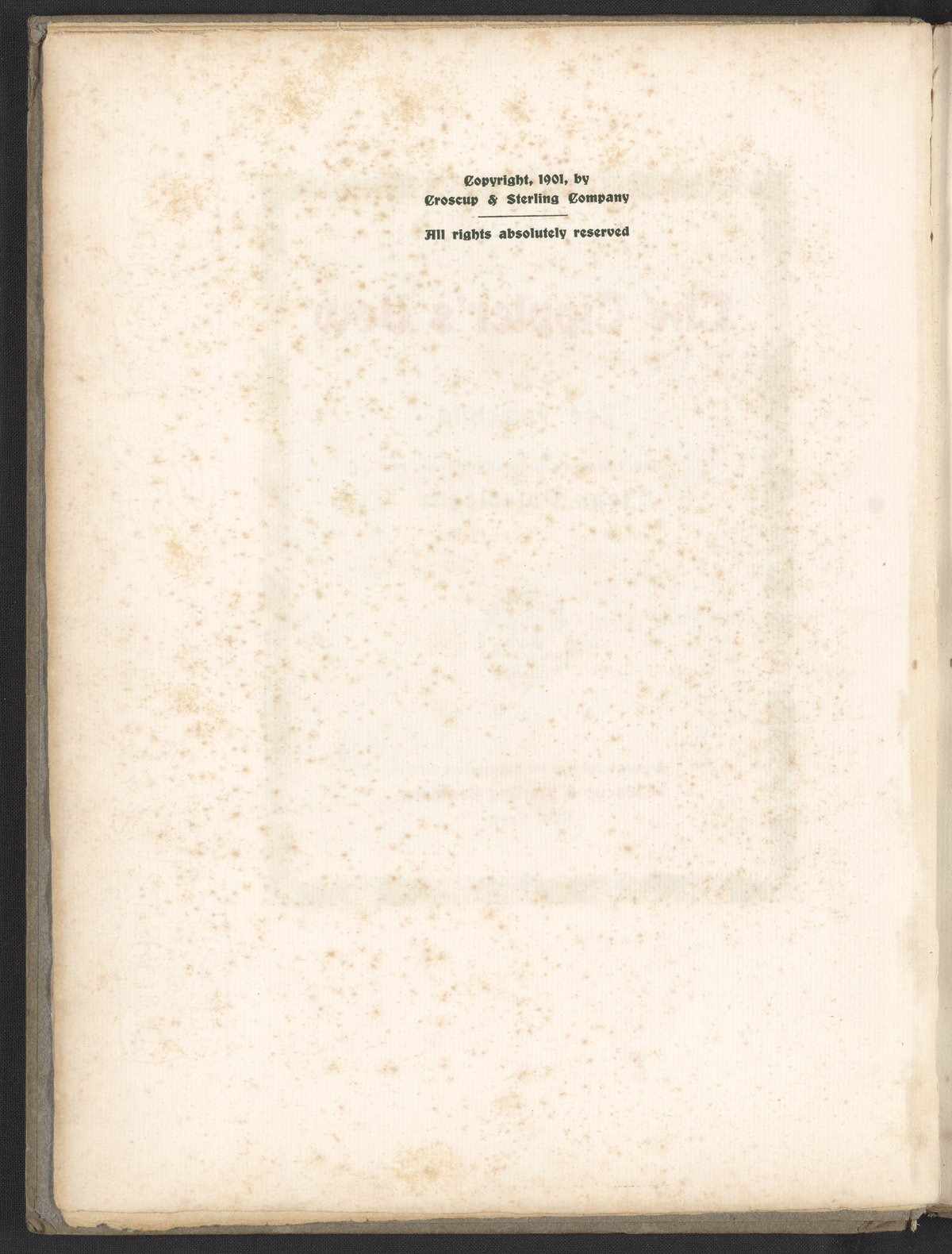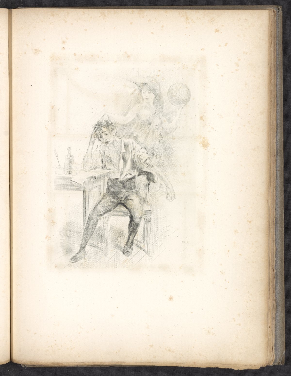Small JPG1200 x 1554px — 347 KBLarge JPG2880 x 3729px — 2.4 MBFull-sized JPG4029 x 5217px — 4.5 MBOriginal fileTIFF — 4029 x 5217px — 60.2 MBVolume containing a poem of 25 strophes by Lee Fairchild (1860-1910). The poem, written in the first-person point of view, is a promise to embrace temperance. It is printed first, continuously, then each verse is printed on a separate leaf with an illustration on the opposite page. Finally, the poem is reprinted as it was first published in February 1901 in 17 strophes. The edition was limited to 750 numbered copies and this particular volume is number 616 of 750. It is printed on Holland paper and includes 26 original drypoint etchings by Romanian artist Jean de Paleologue (1855-1942). Many of the leaves in this copy are unopened and its pages are uncut. The work's flyleaf includes an inscription from the author.