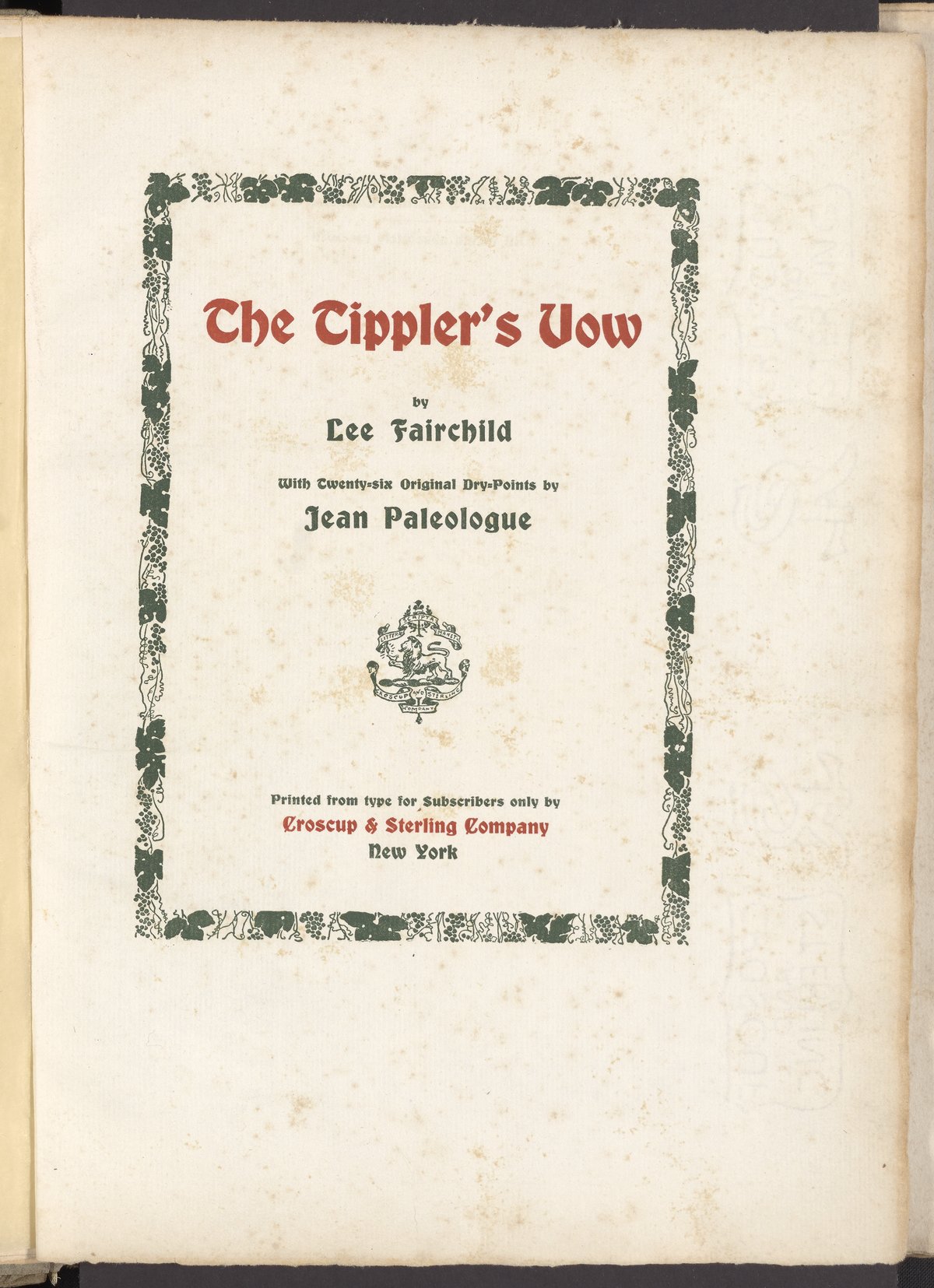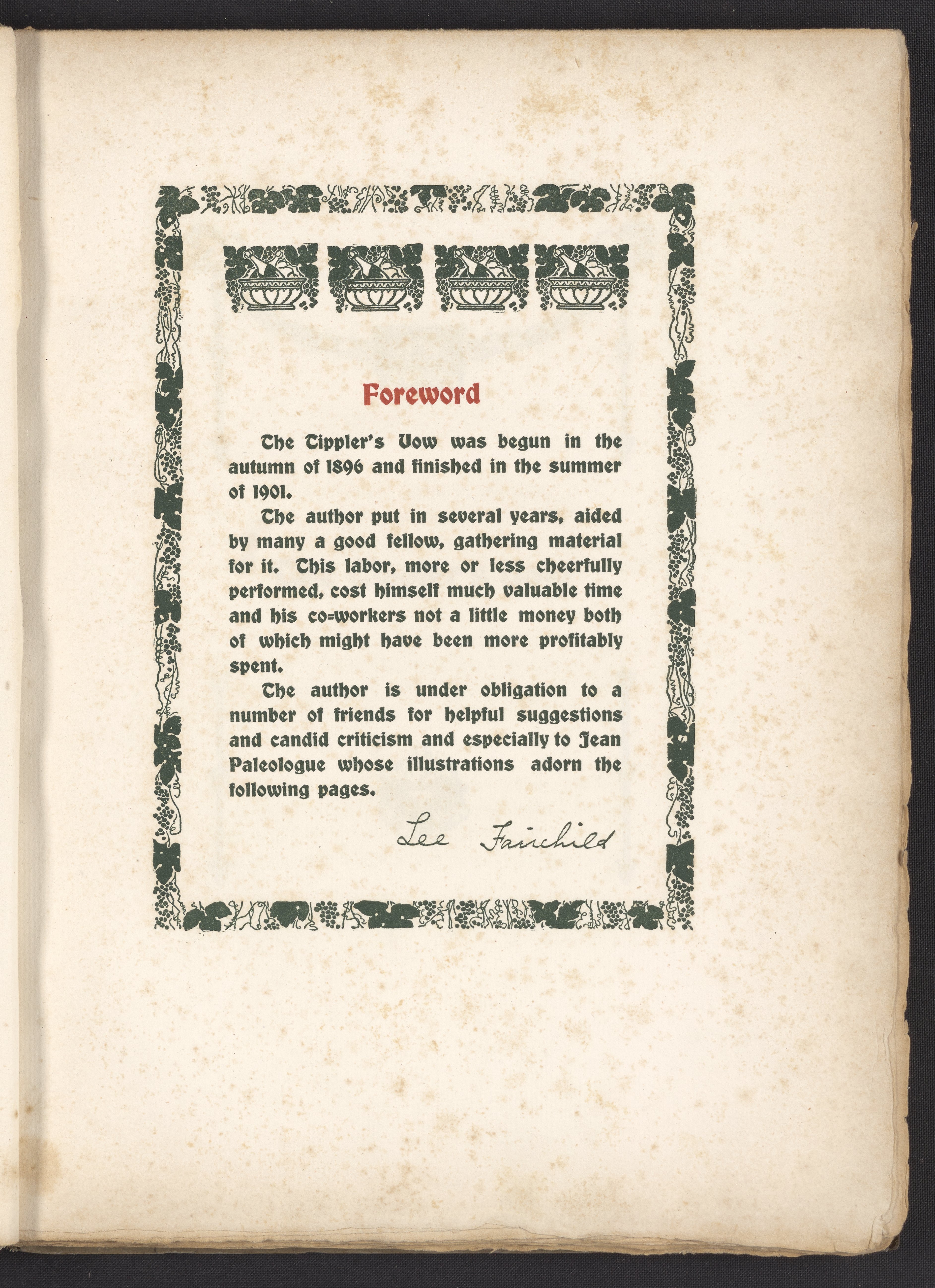 Fairchild, Lee. “The Tippler's Vow.” New York, New York: Croscup & Sterling, 1901. PS3511.A388 F35 1901. Science History Institute. Philadelphia. https://digital.sciencehistory.org/works/rqvs09a.