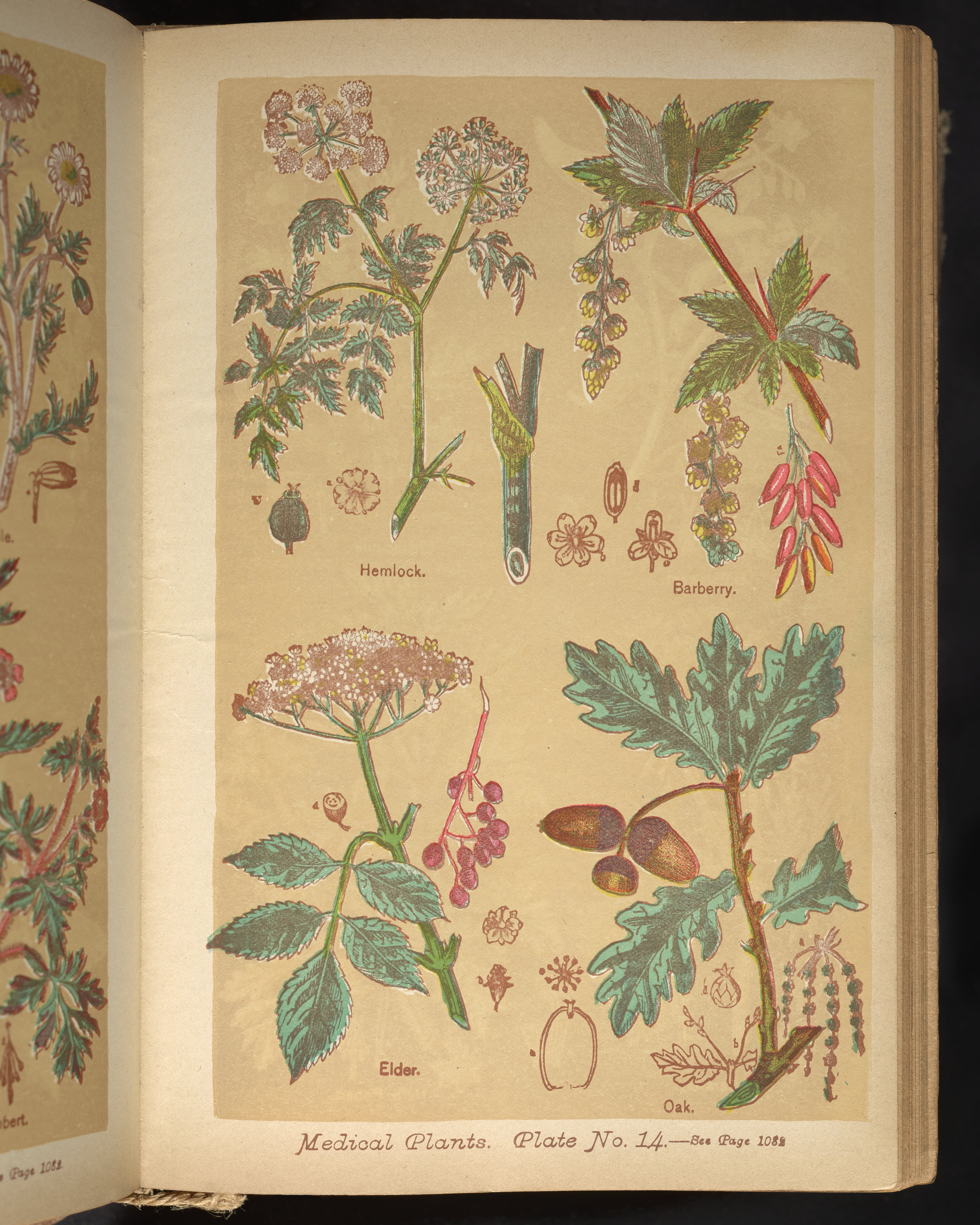 Depicts hemlock, barberry, elder, and oak.