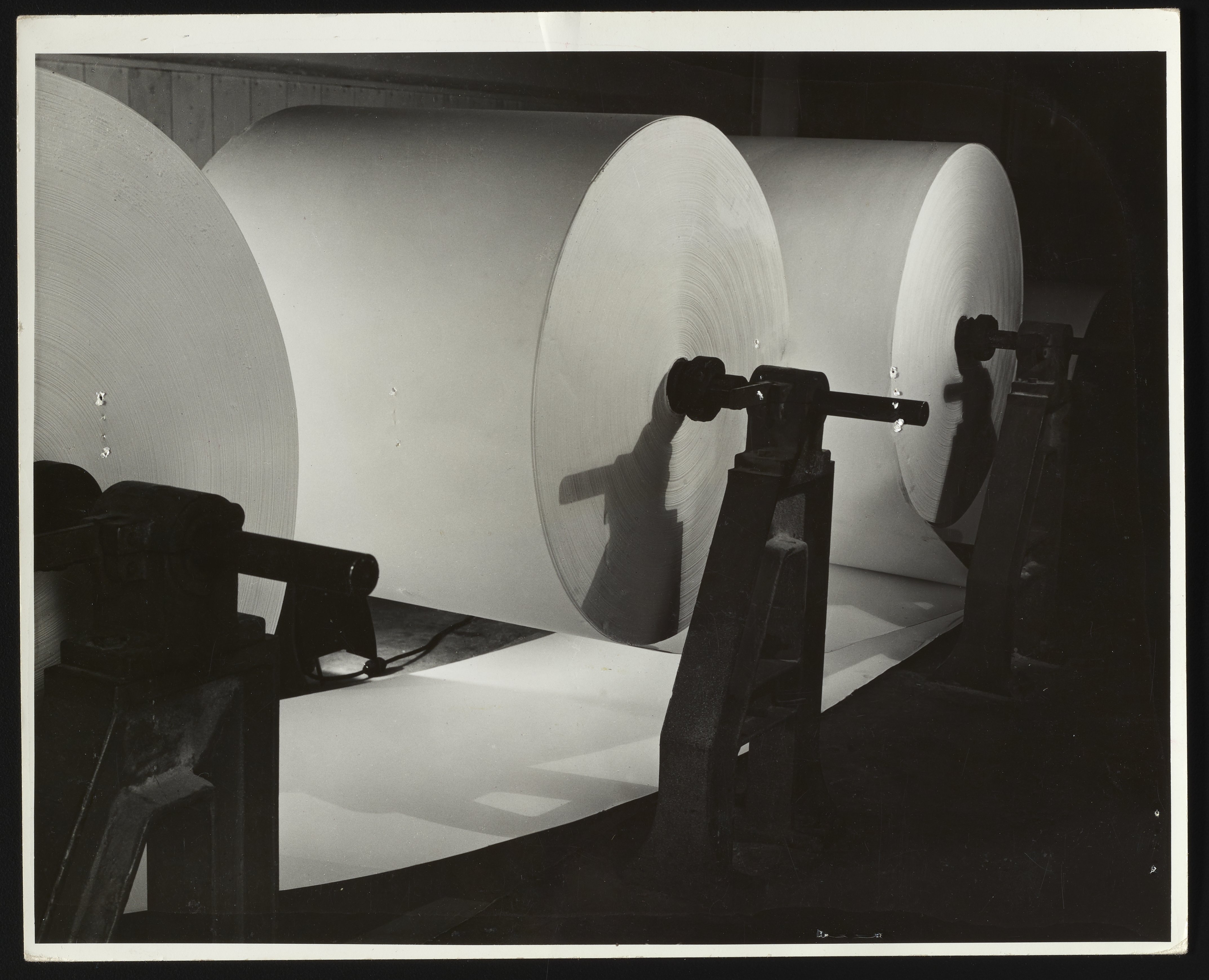 Hercules Incorporated. “Sheeted Cotton Linters at Hercules Hopewell Plant,” June 17, 1940. Photographs from the Records & Ephemera of Hercules Incorporated, Box 1, Folder 35. Science History Institute. Philadelphia. https://digital.sciencehistory.org/works/rr171x96x.