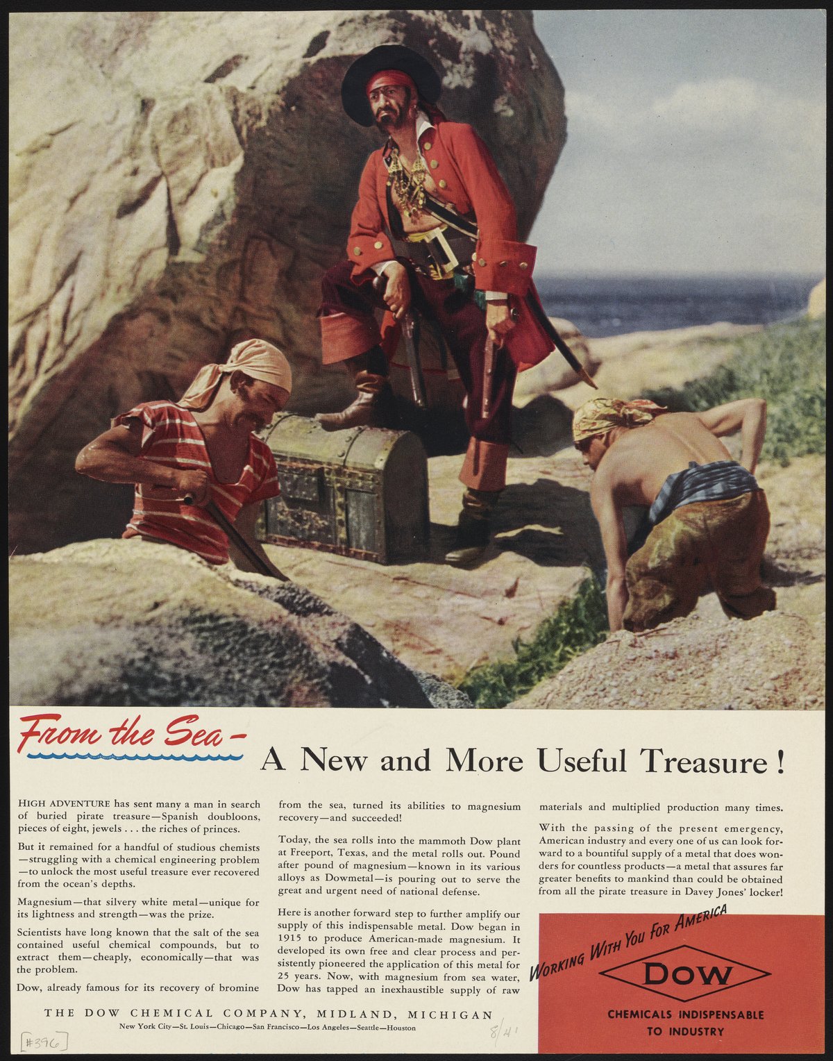 Dow Chemical Company. “From the Sea...A New and More Useful Treasure!,” 1941. Advertisements from the Dow Chemical Historical Collection, Box 8. Science History Institute. Philadelphia. https://digital.sciencehistory.org/works/rsl63t4.