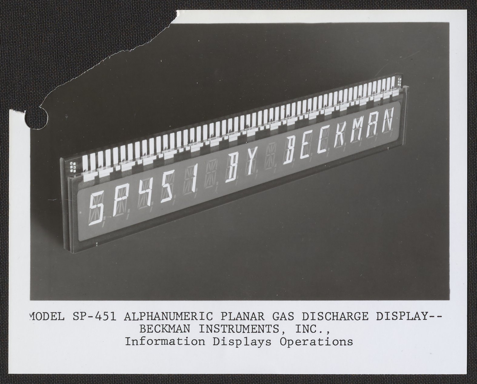 “Beckman Model SP-451 Alphanumeric Planar Gas Discharge Display,” n.d. Beckman Historical Collection, Box 84. Science History Institute. Philadelphia. https://digital.sciencehistory.org/works/rv042t299.