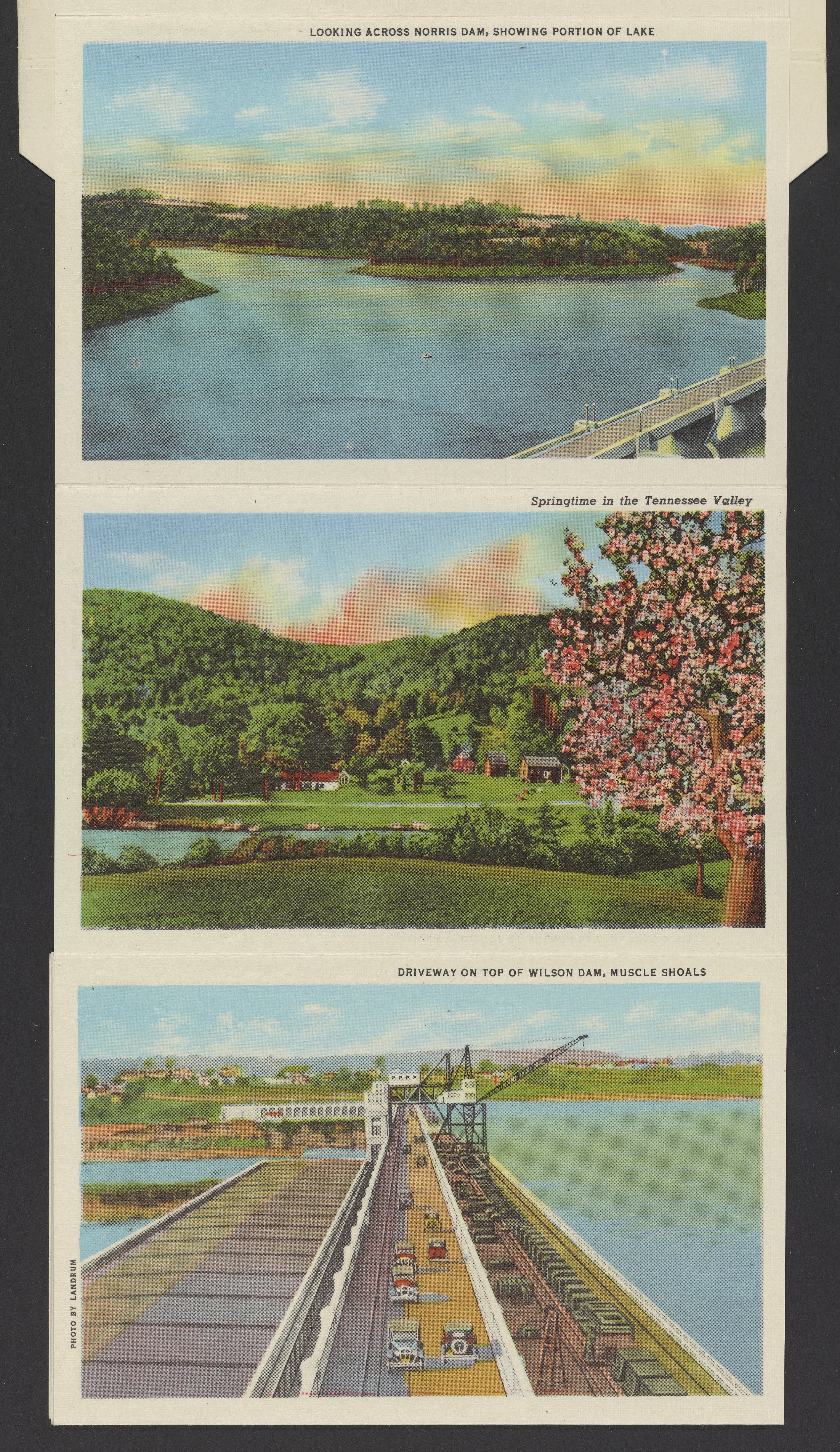 Small JPG1200 x 846px — 243 KBLarge JPG2880 x 2030px — 2.0 MBFull-sized JPG3974 x 2801px — 3.5 MBOriginal fileTIFF — 3974 x 2801px — 31.9 MBLetterpress halftone postcard collection published by Curt Teich & Co. Depicts views of Tennessee and projects by the Tennessee Valley Authority (TVA) including sights such as dams, the TVA Freeway, and model homes in Norris, Tennessee.