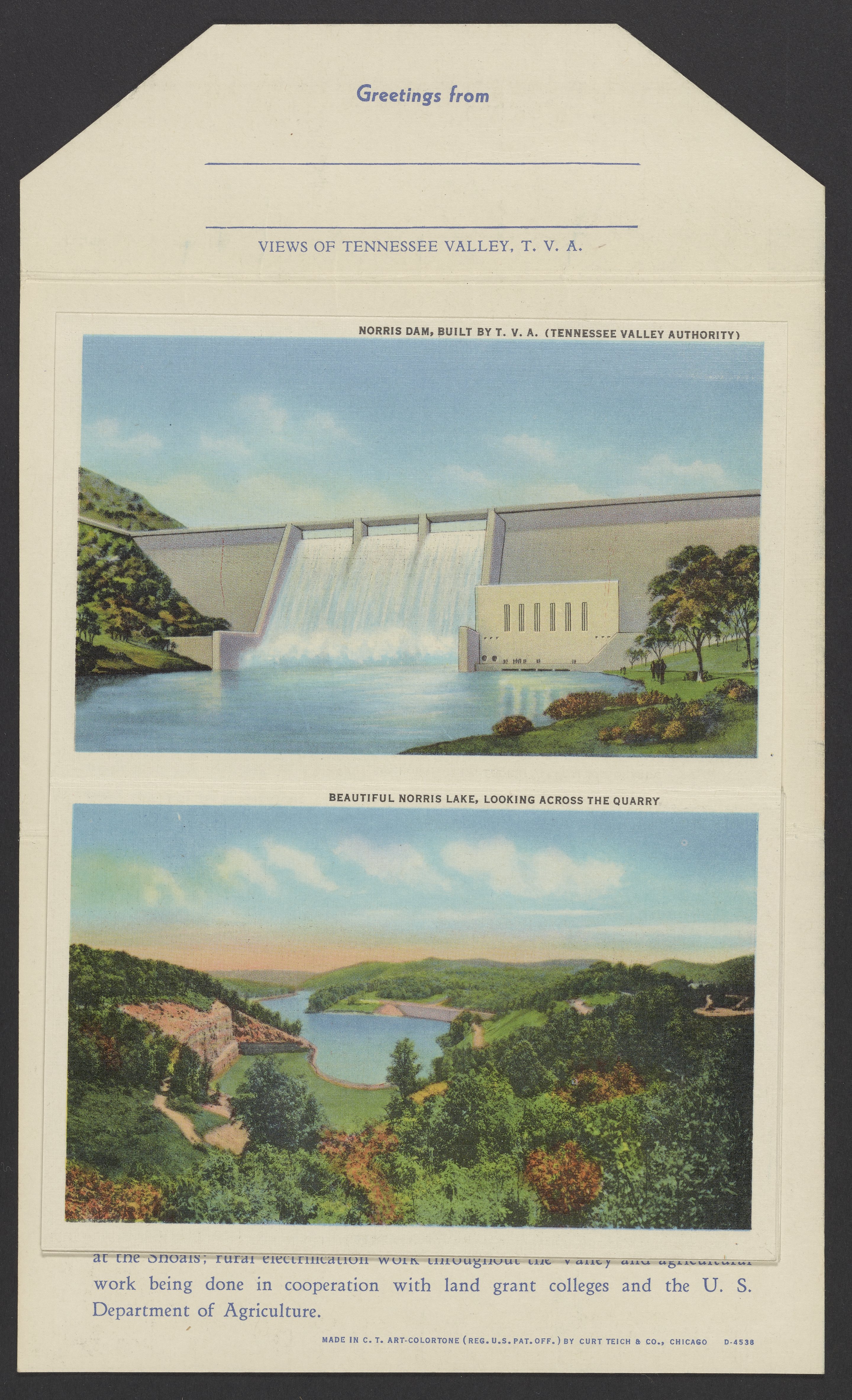 Curt Teich & Co. “Tennessee Valley Authority Postcard Pack.” Chicago, Illinois, n.d. Papers of Georg and Max Bredig, Box 10, Folder 34. Science History Institute. Philadelphia. https://digital.sciencehistory.org/works/rw9pflk.