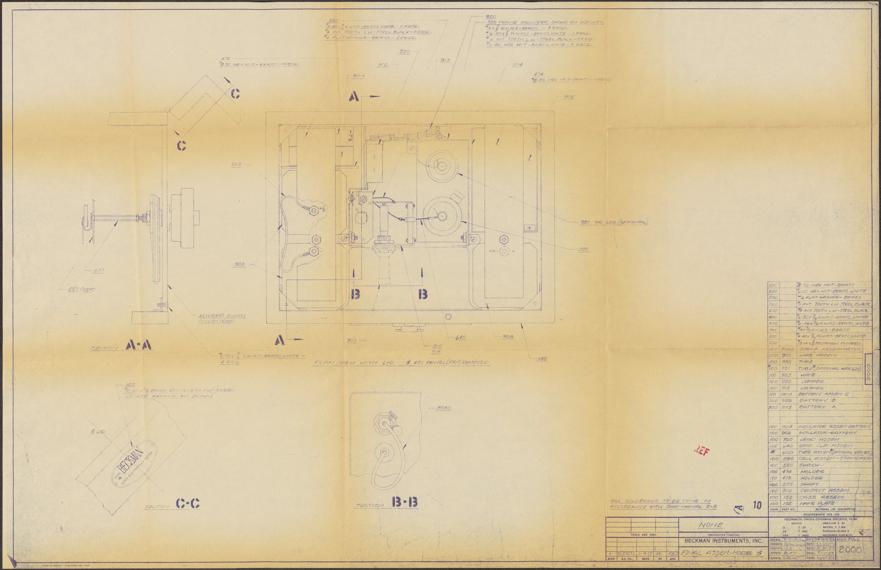 Beckman Instruments, Inc. “Final Assembly Diagram for Beckman Model G PH Meter,” 1955. Beckman Historical Collection, Box 19, Folder 27. Science History Institute. Philadelphia. https://digital.sciencehistory.org/works/rx913p91s.