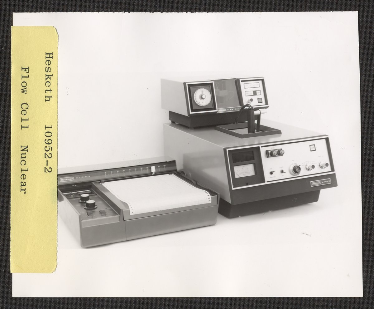 Hesketh, Dean D. “Beckman Flow Cell, Beta-Mate II, and Recorder,” 1970–1979. Beckman Historical Collection, Box 84. Science History Institute. Philadelphia. https://digital.sciencehistory.org/works/rx913q16f.