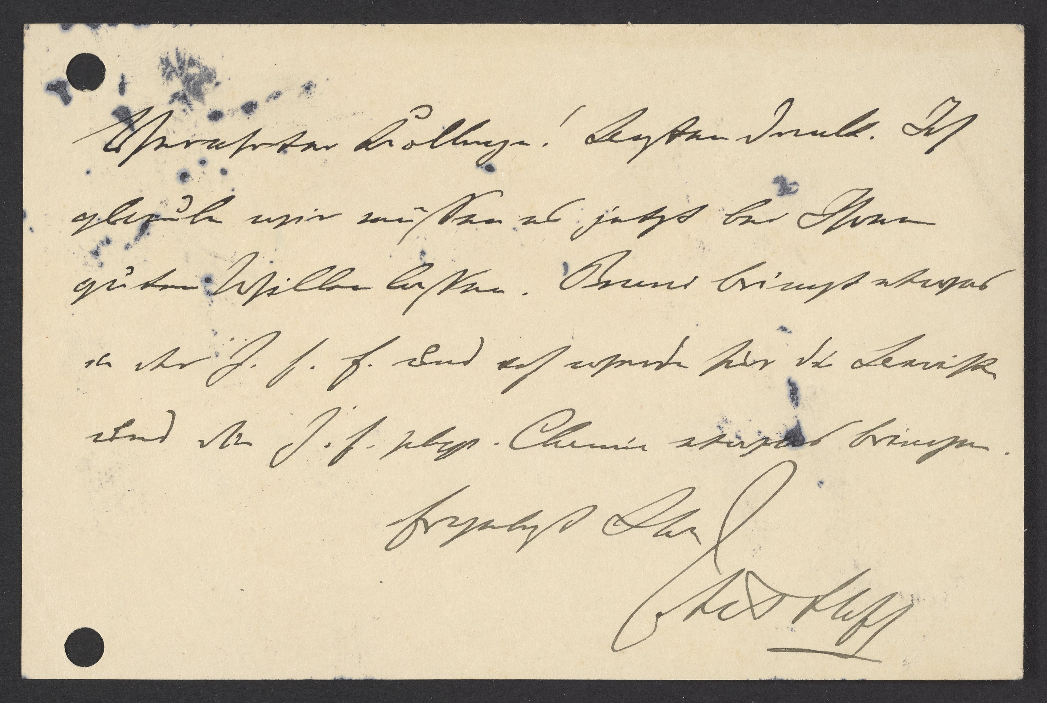 Verehrter Kollege! Besten Dank. Ich glaube wir müssen es jetzt bei Ihrem guten Willen lassen. Bruni bringt etwas in der Z. f. E. (Zeitschrift für Elektrochemie) und ich werde für die Bernische und die Z. f. phys. Chemie (Zeitschrift für physikalische Chemie) etwas bringen.