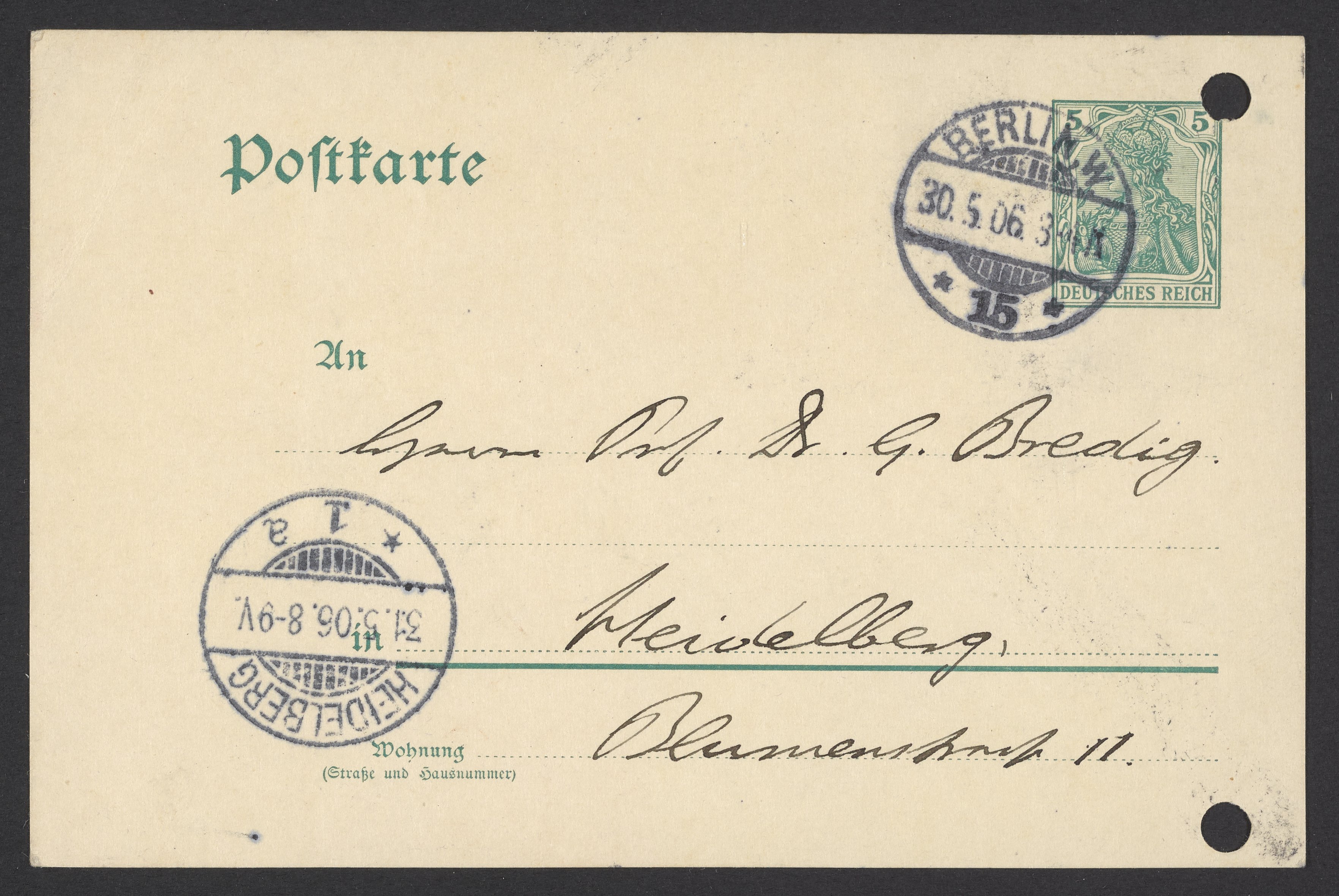 Postcard from Jacobus H. van 't Hoff to Georg Bredig, May 1906