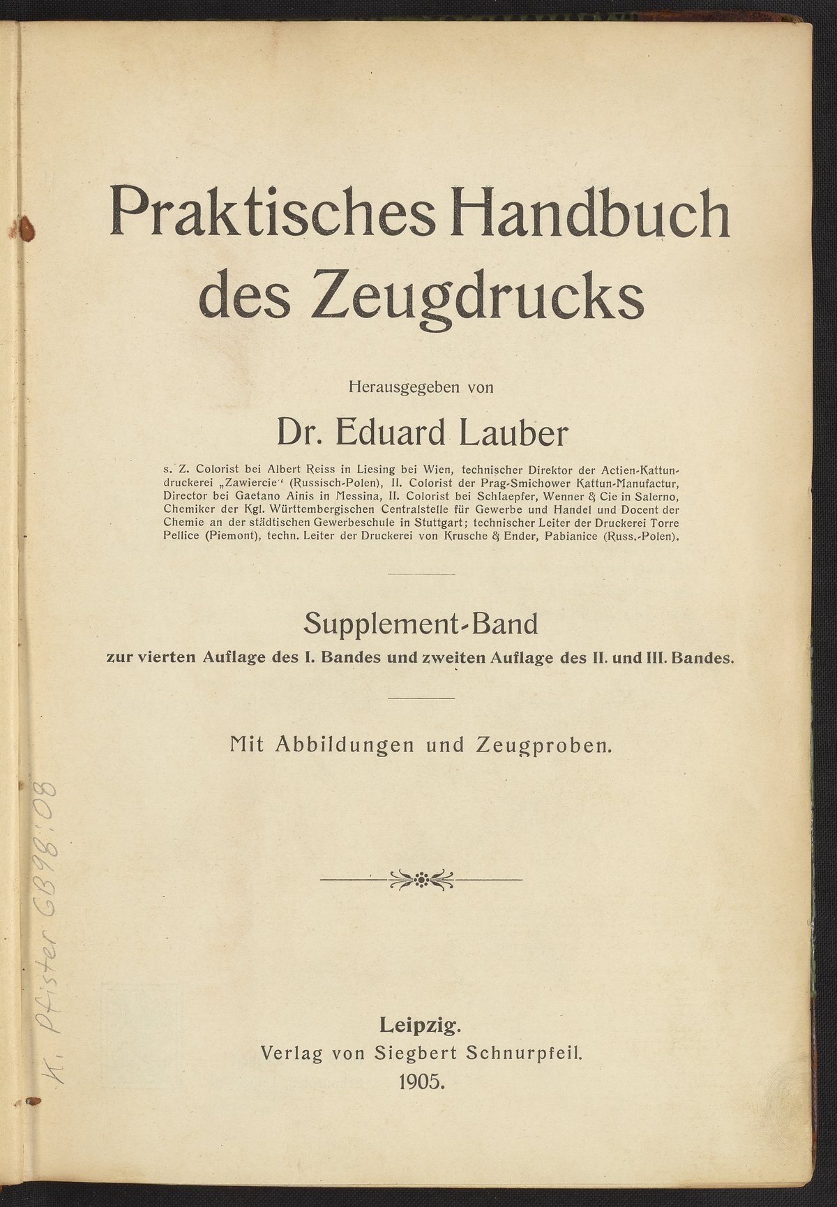 Lauber, Eduard. Praktisches Handbuch Des Zeugdrucks. Leipzig, Germany, 1905. https://digital.sciencehistory.org/works/rywseyc.