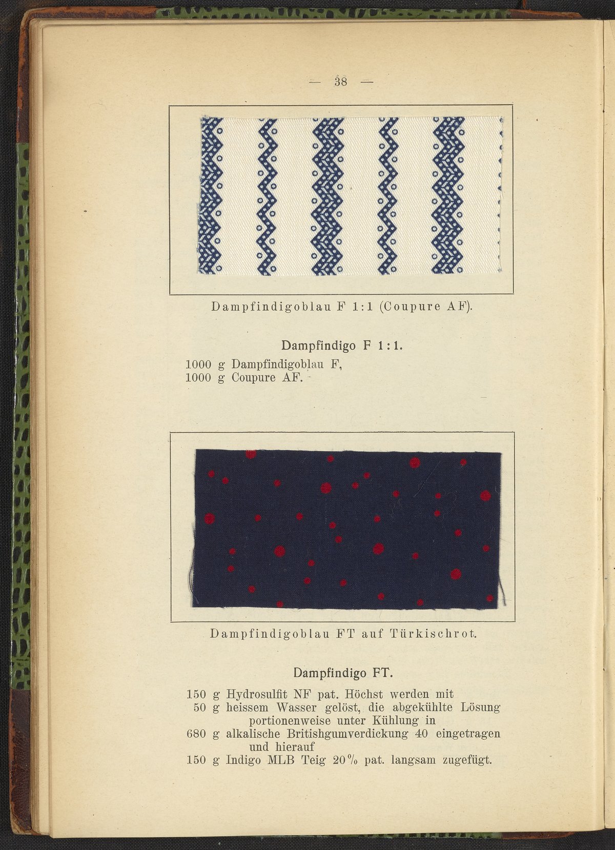 Small JPG1200 x 1662px — 527 KBFull-sized JPG2813 x 3896px — 2.4 MBOriginal fileTIFF — 2813 x 3896px — 31.4 MBSample book containing 158 fabric samples with displaying a wide variety of printed patterns with recipes and methods. The final pages of the book include a series of advertisements for several dyestuff companies.
