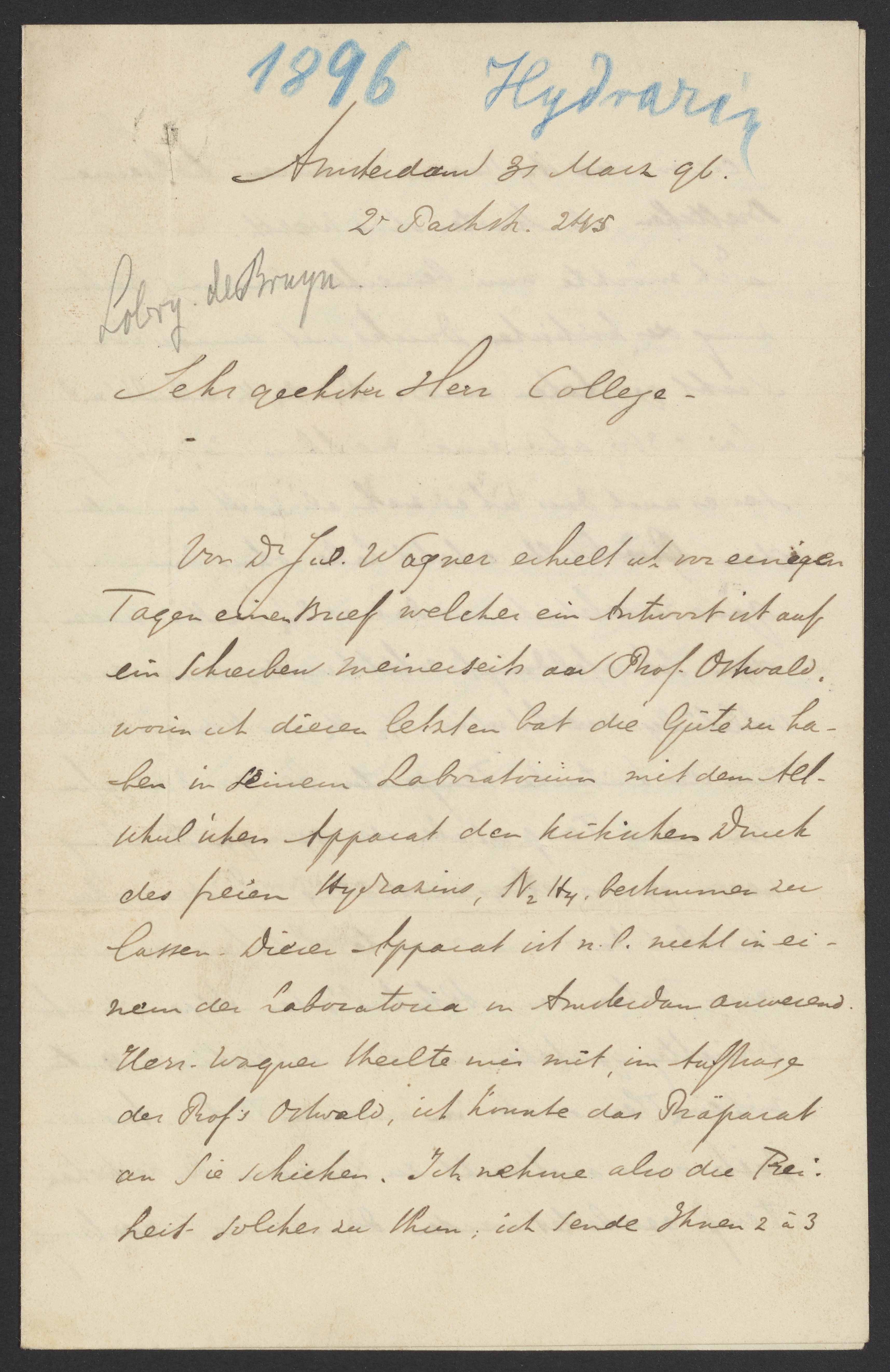 Letter from Cornelis Lobry van Troostenburg de Bruyn to a Colleague, March 1896