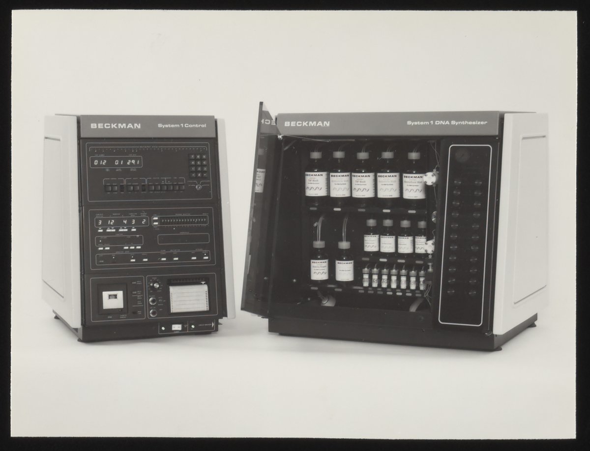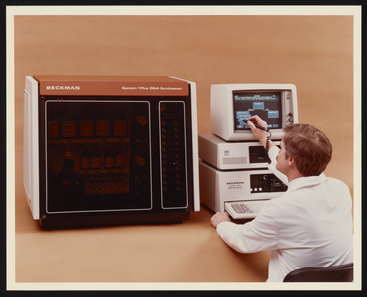 Illig, Russell. “Beckman System 1 Plus DNA Synthesizer,” circa 1985. Beckman Historical Collection, Box 59, Folder 121. Science History Institute. Philadelphia. https://digital.sciencehistory.org/works/s1784m313.