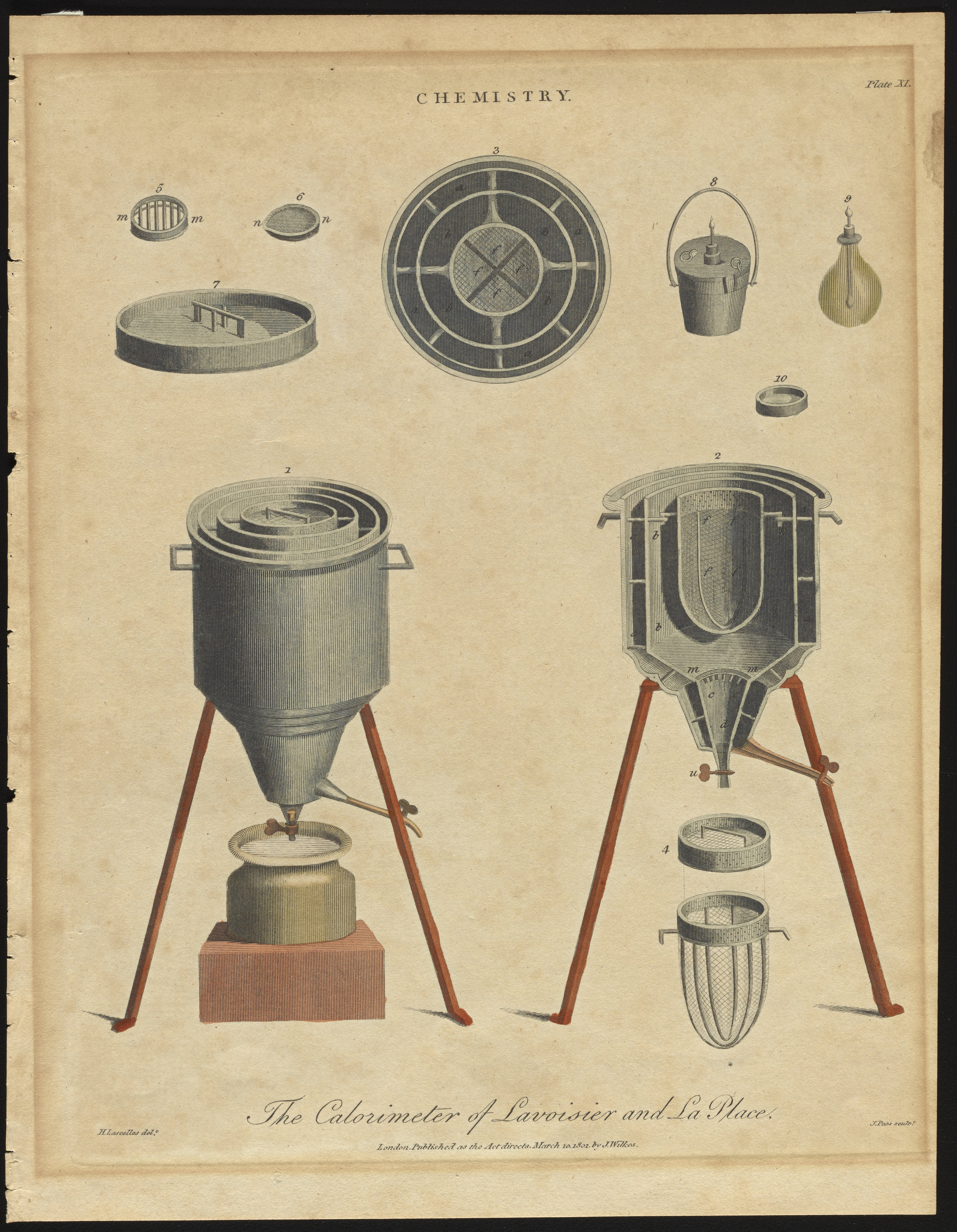 Lascelles, Henry. “Plate XI: The Calorimeter of Lavoisier and La Place.” Wove paper, paper (fiber product). London, England: Wilkes, John, of Milland House, Sussex, March 10, 1801. Science History Institute. Philadelphia. https://digital.sciencehistory.org/works/s1784m49j.