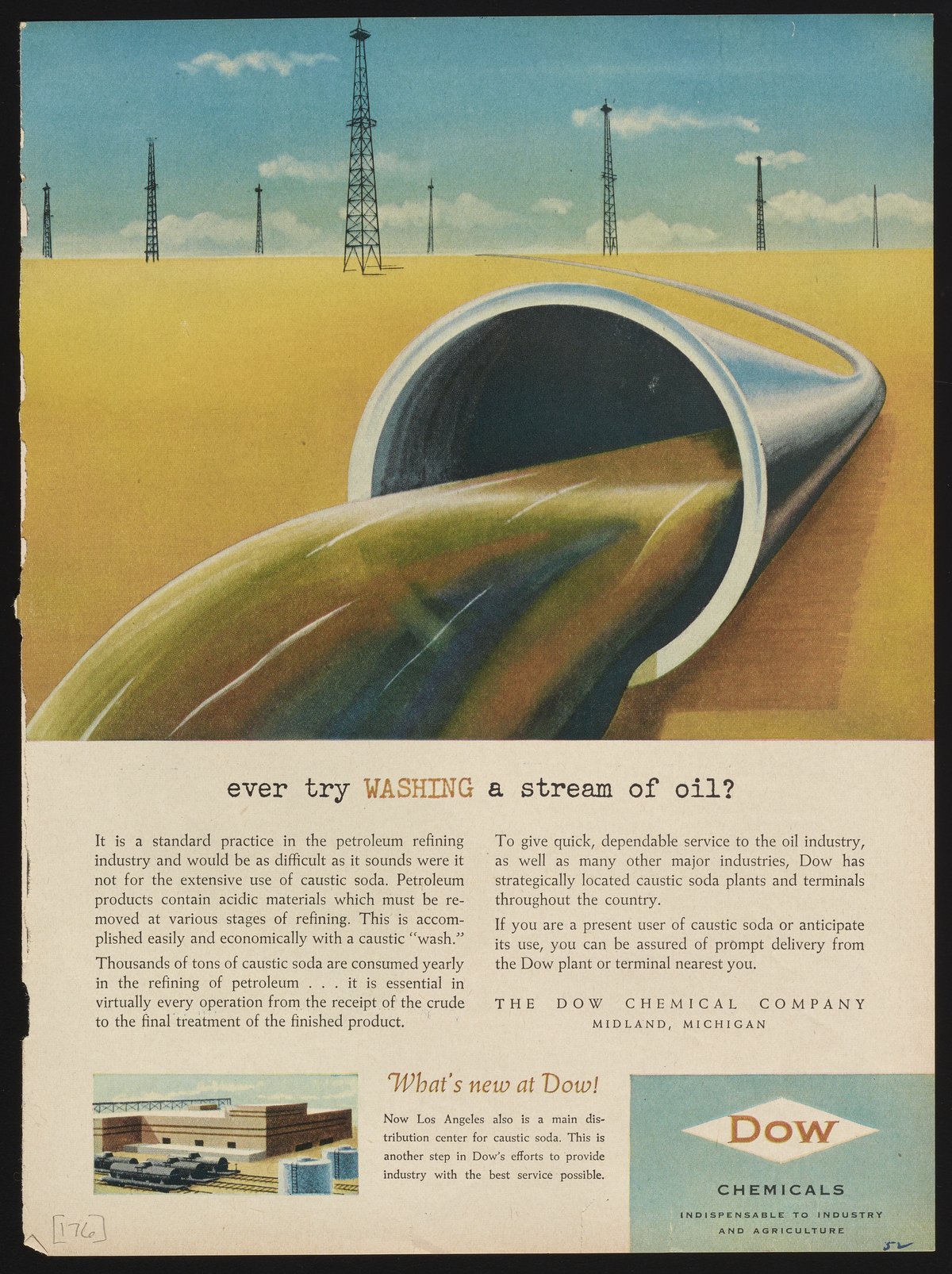 Dow Chemical Company. “Ever Try Washing a Stream of Oil?,” 1952. Advertisements from the Dow Chemical Historical Collection, Box 7. Science History Institute. Philadelphia. https://digital.sciencehistory.org/works/s1784m577.