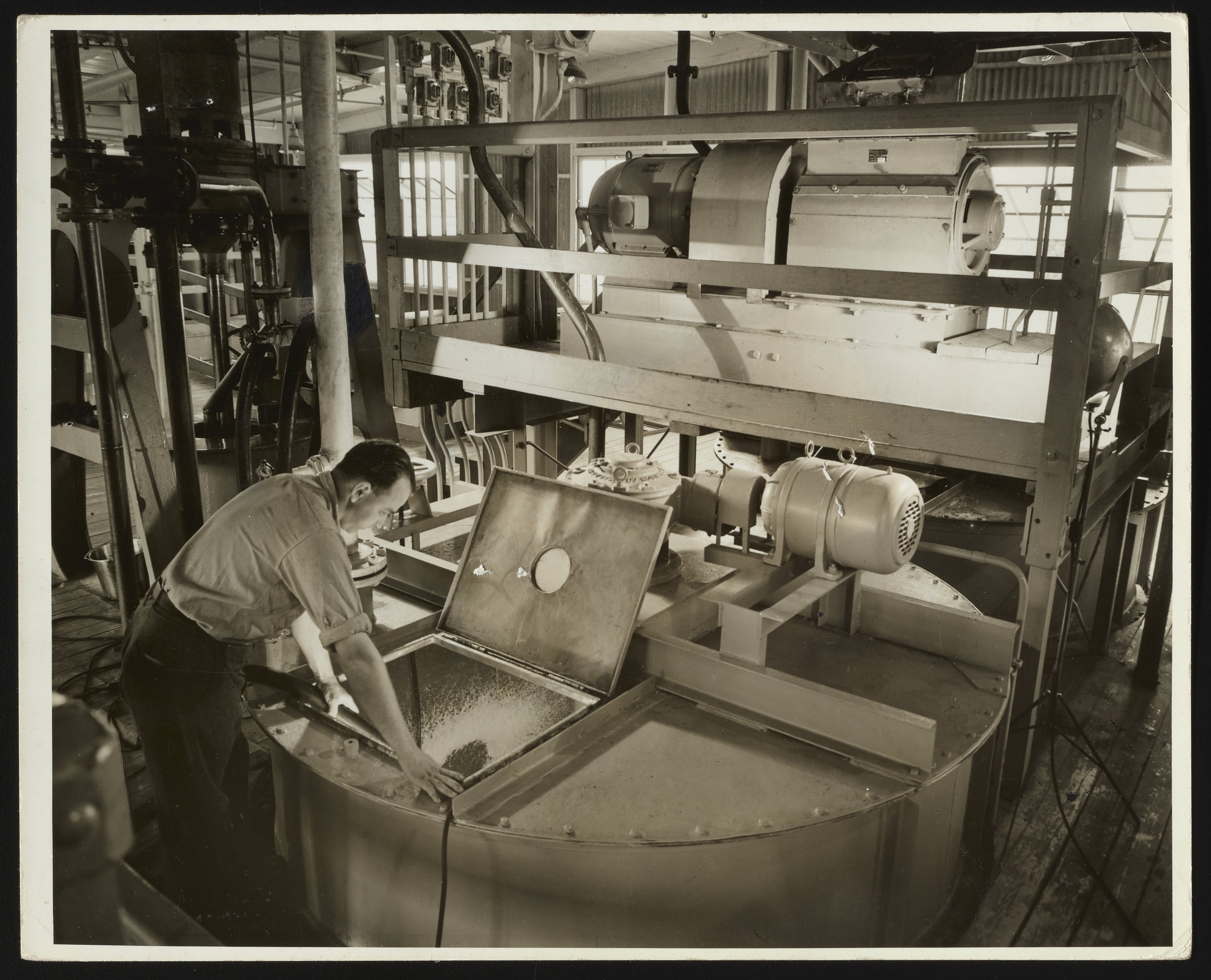 Hercules Incorporated. “Employee Working at Washing Tub at Hercules Hopewell Plant,” June 17, 1940. Photographs from the Records & Ephemera of Hercules Incorporated, Box 1, Folder 35. Science History Institute. Philadelphia. https://digital.sciencehistory.org/works/s1784m61t.