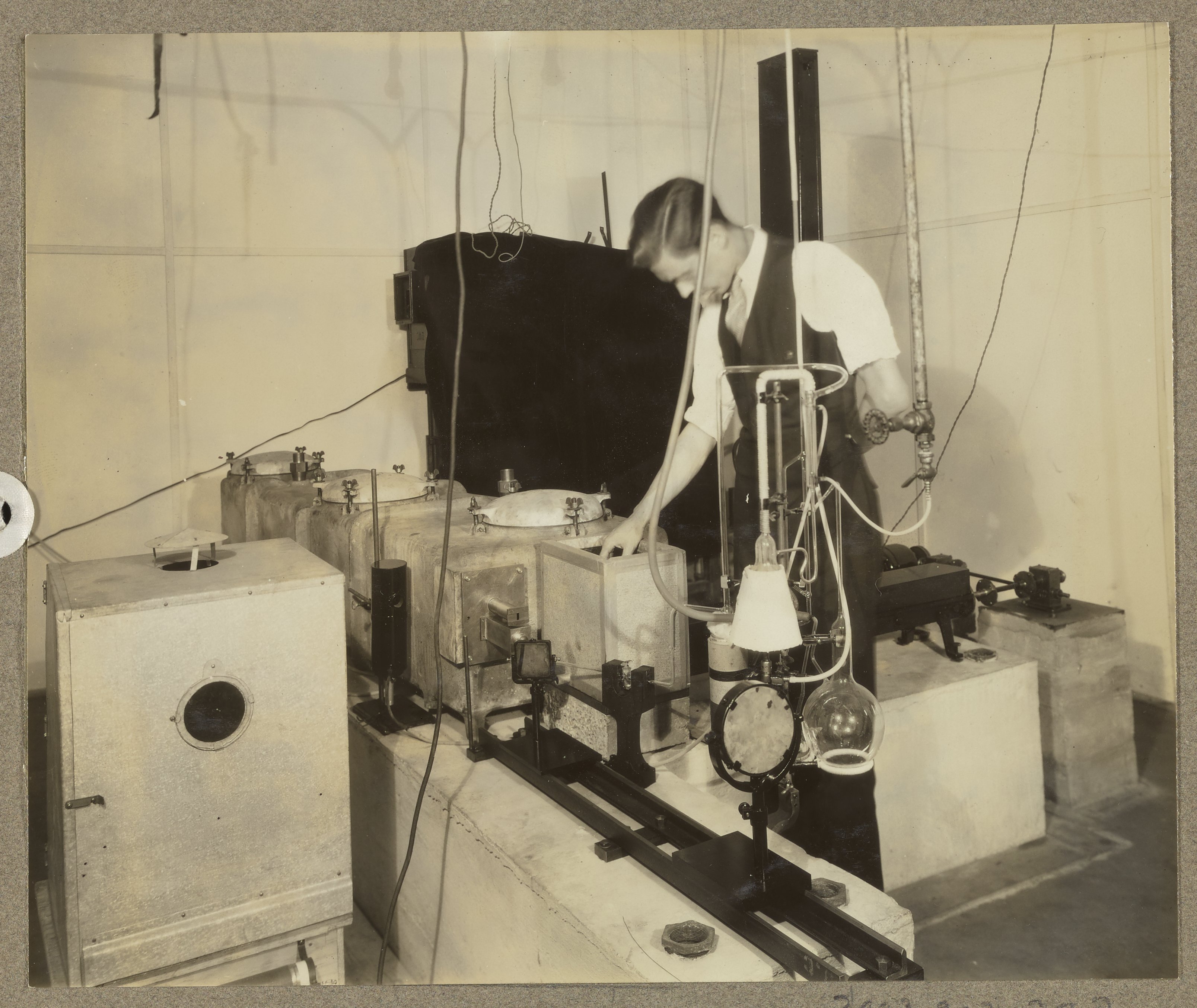 “Mr. Liddel with Infrared Spectrograph at Fixed Nitrogen Research Laboratory,” January 8, 1930. Travis P. Hignett Collection of Fixed Nitrogen Research Laboratory Photographs, Box 2. Science History Institute. Philadelphia. https://digital.sciencehistory.org/works/s4655g667.