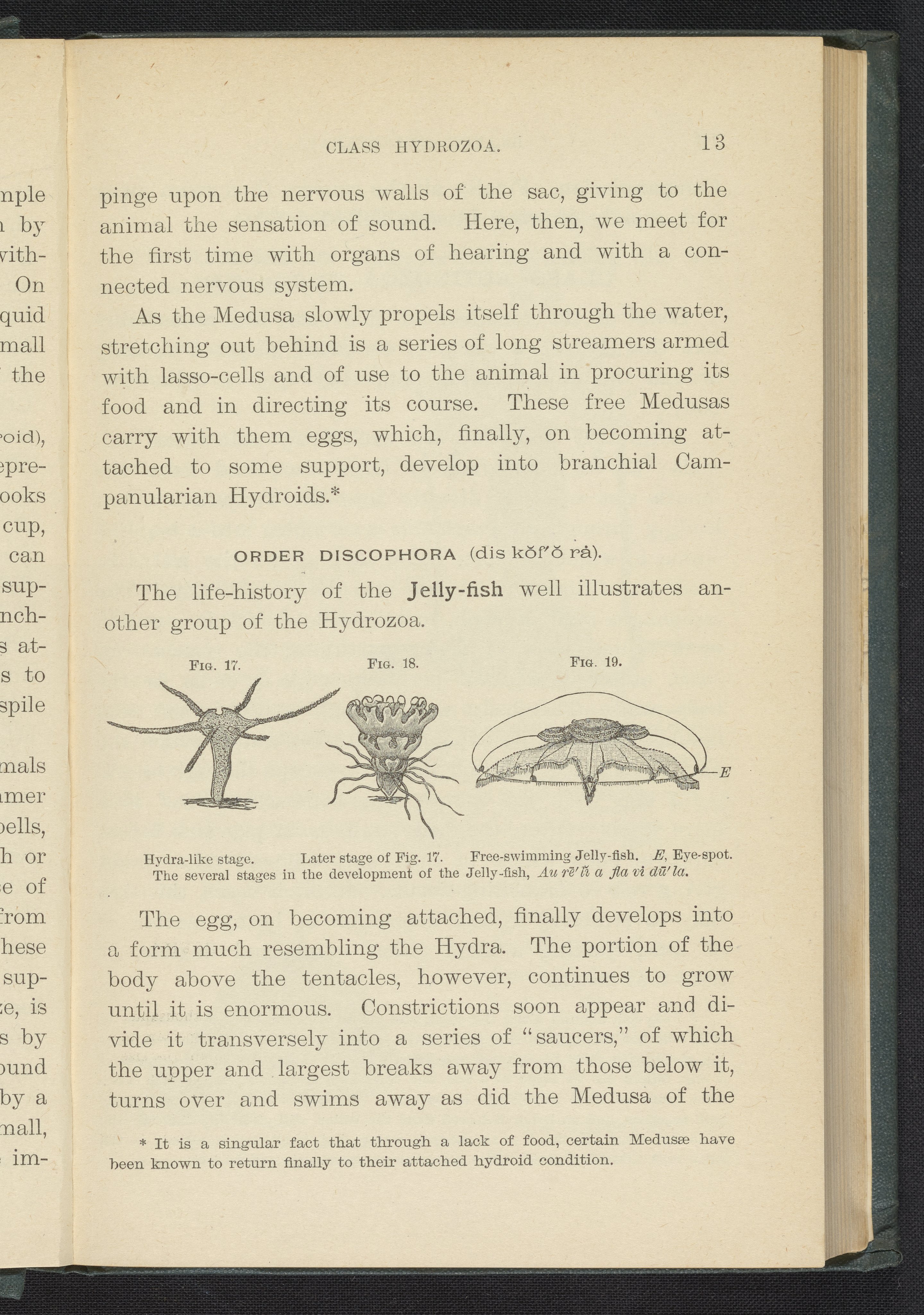 Steele, Joel Dorman, and Jenks, J. W. P. (John Whipple Potter). “Figures 17-19. The Several Stages in the Development of the Jelly-Fish.” Popular Zoology. New York, New York: Chautauqua Press, 1887. https://digital.sciencehistory.org/works/s5q6cfn.