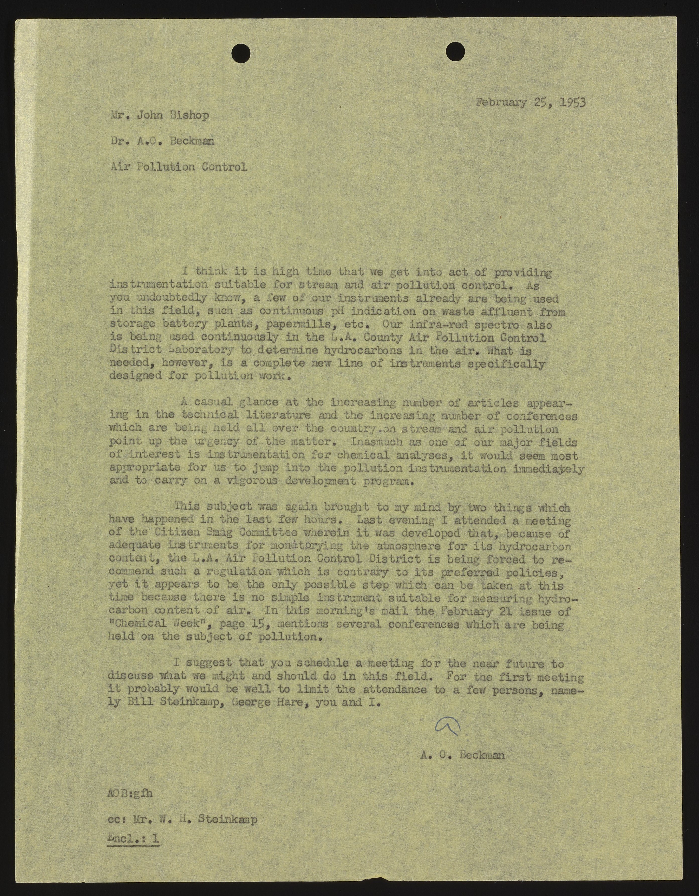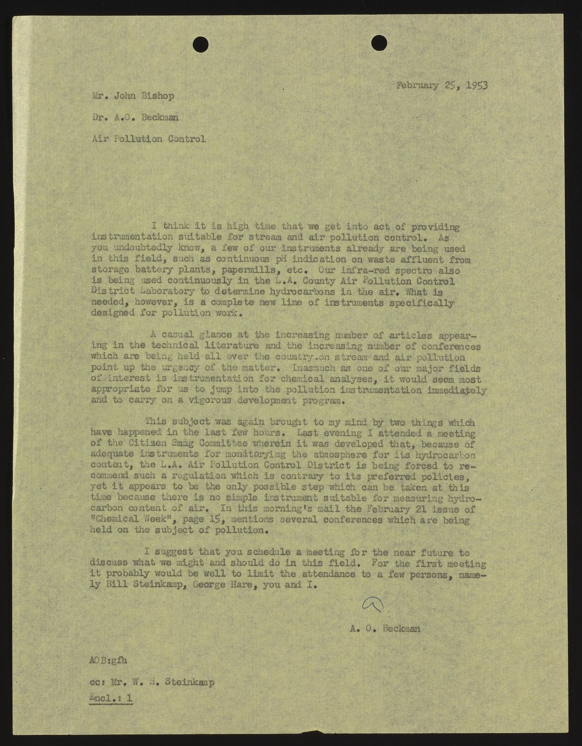 Letter from Arnold O. Beckman to John F. Bishop