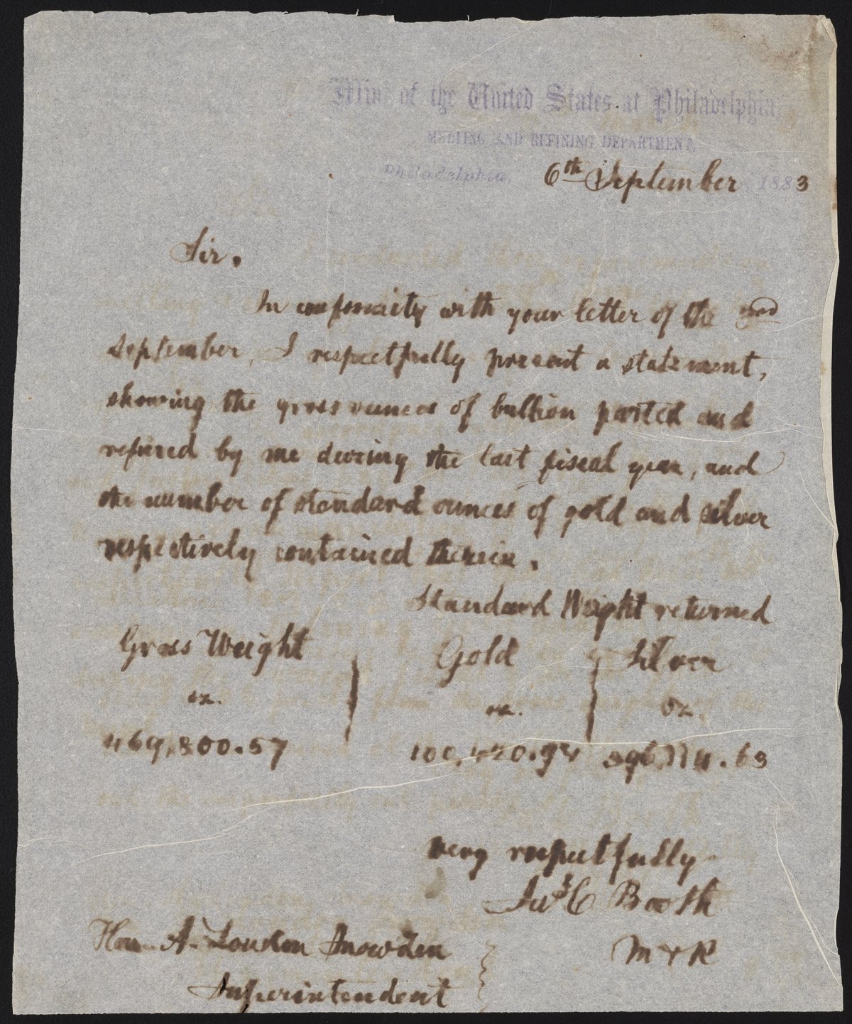 Letter from James Curtis Booth to A. L. Snowden, September 6, 1883