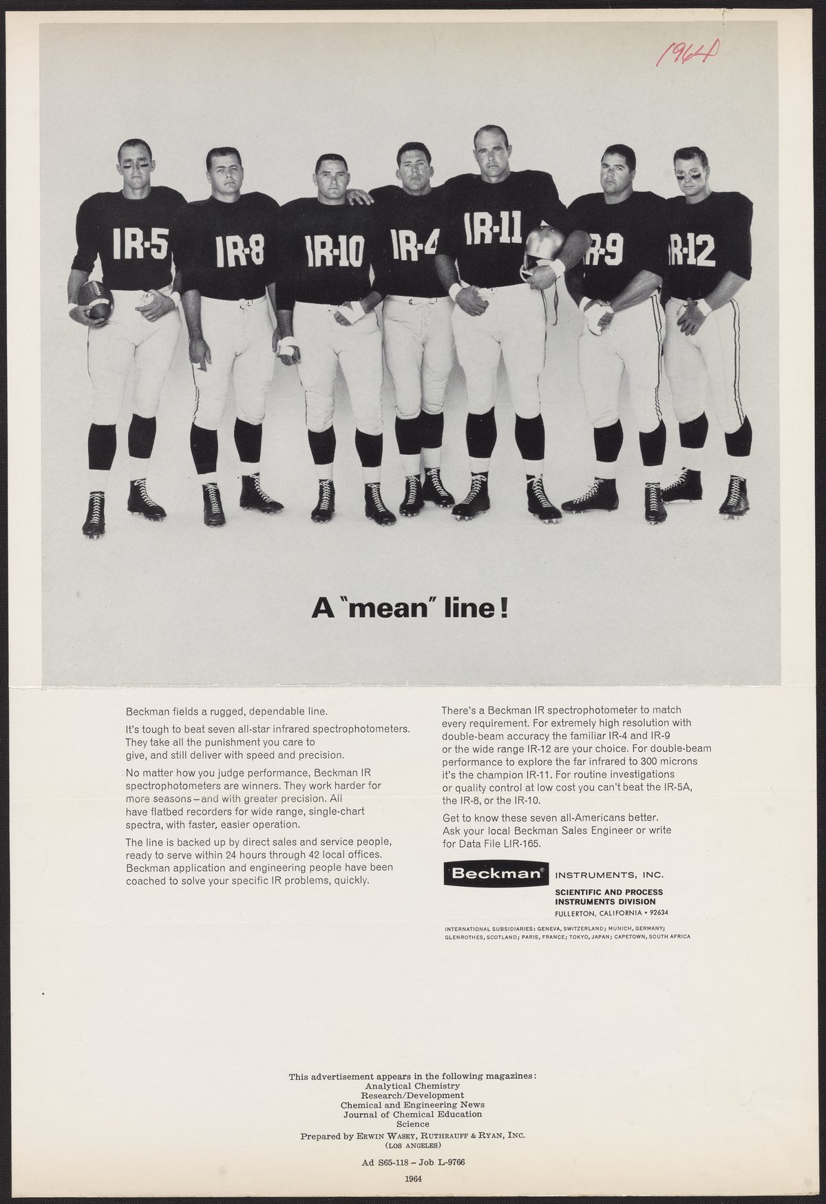 Erwin Wasey, Ruthrauff, and Inc. Beckman Instruments. “A ‘Mean’ Line!,” 1964. Beckman Historical Collection, Box 49, Folder 22. Science History Institute. Philadelphia. https://digital.sciencehistory.org/works/sb397825r.