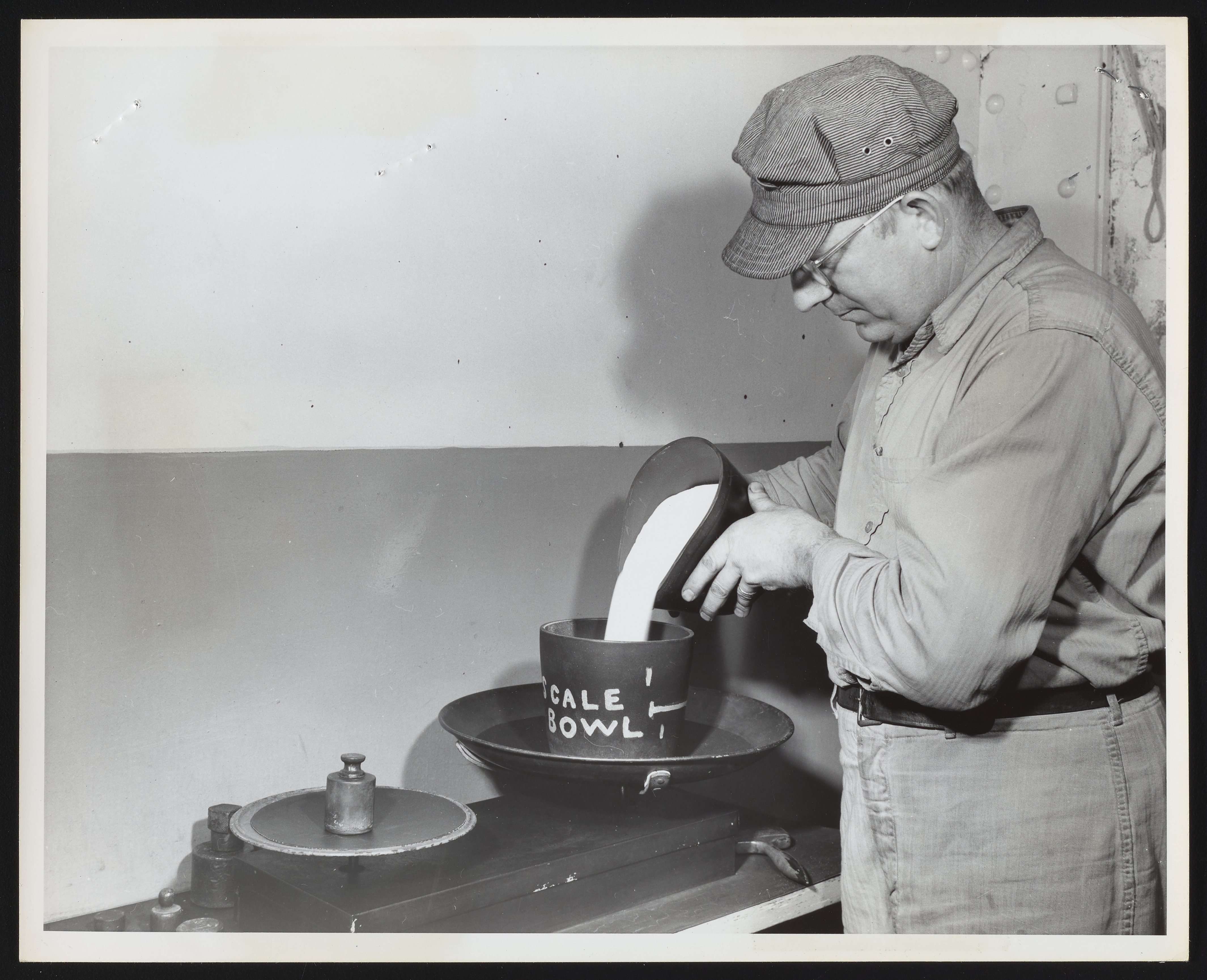 Sylvester Demskie weighing diazo and potassium chlorate at Hercules Port Ewen plant