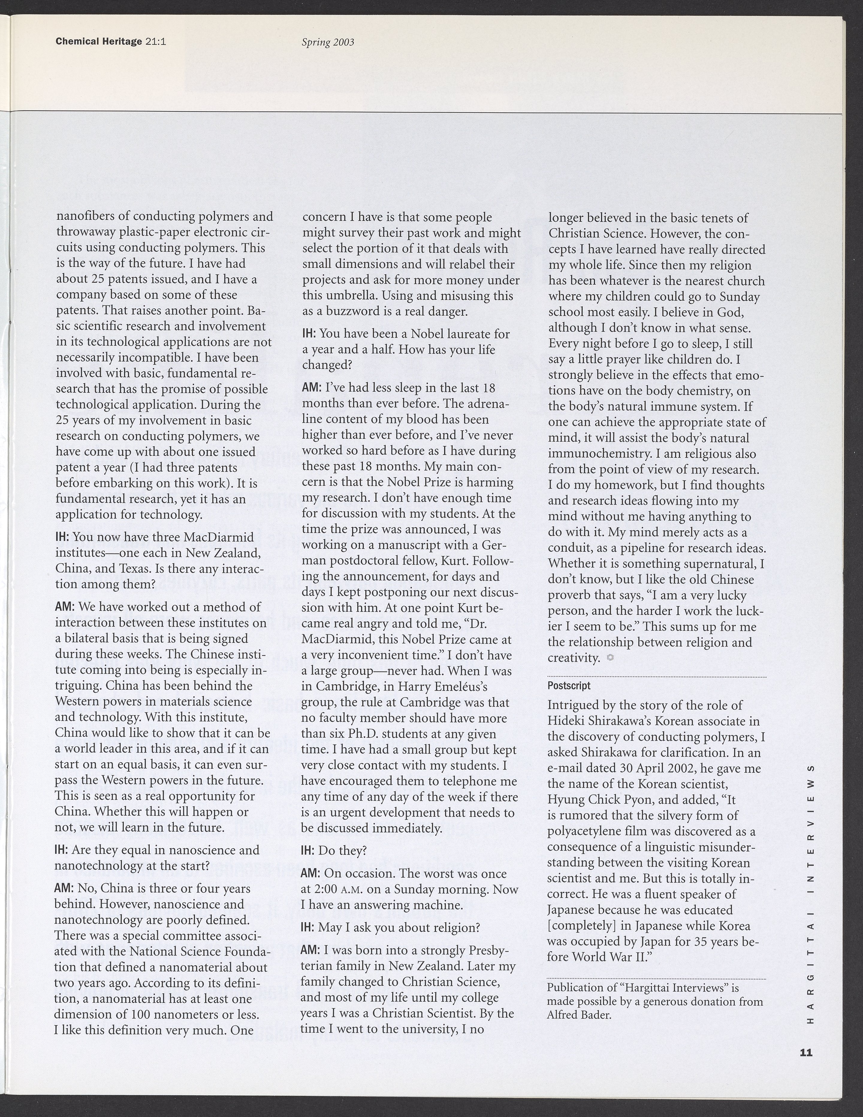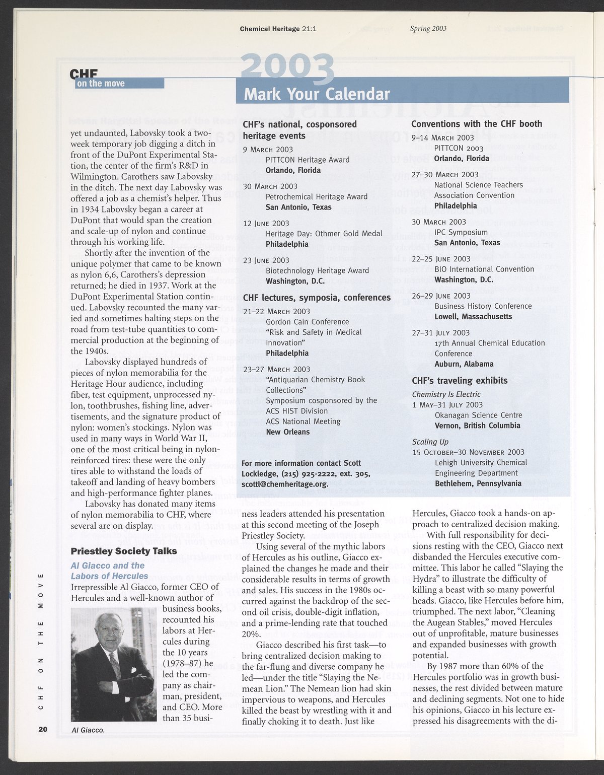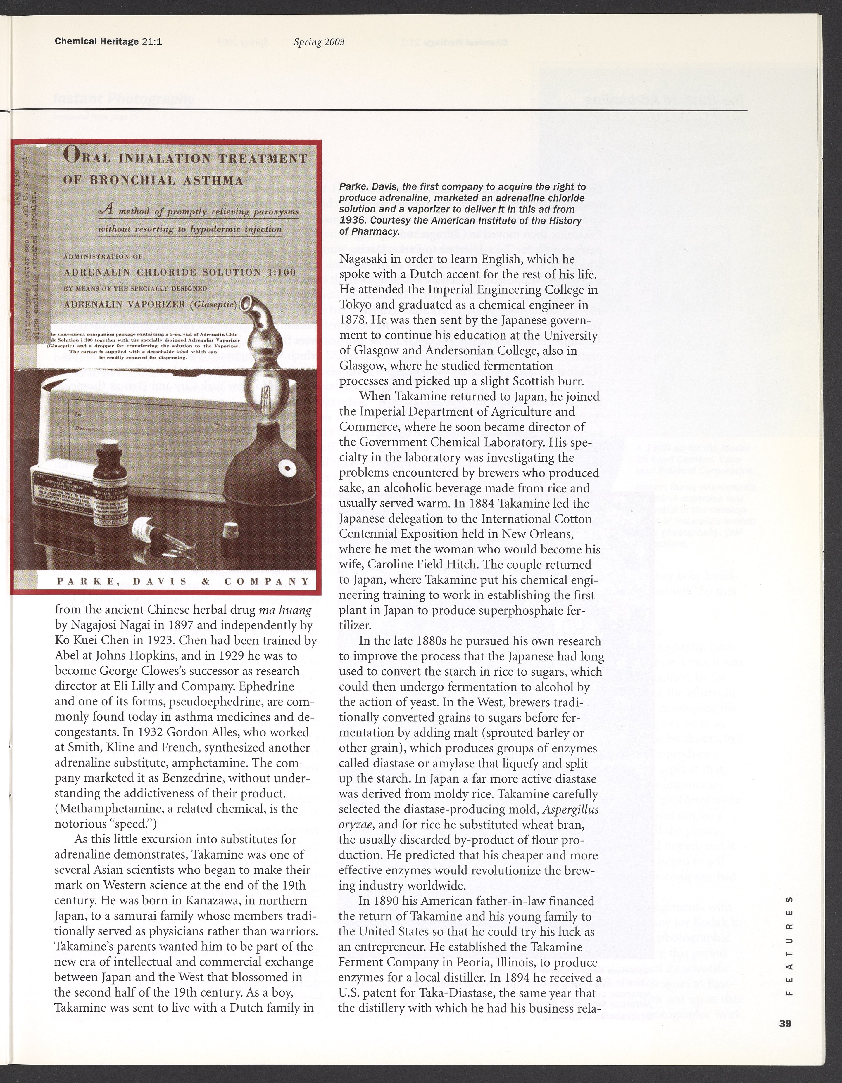 Chemical Heritage, Volume 21 Number 1
