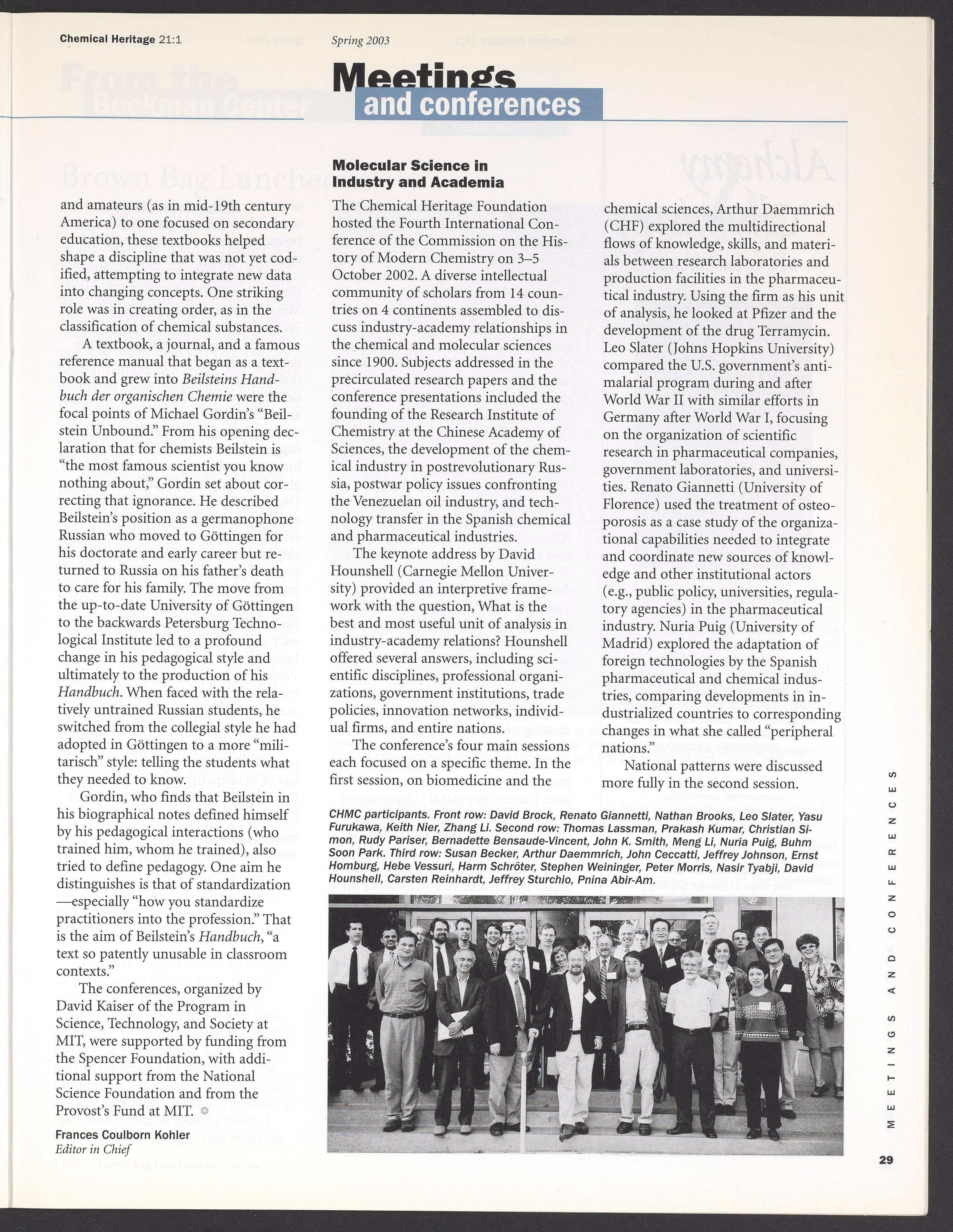 “Chemical Heritage, Volume 21 Number 1.” Philadelphia, Pennsylvania: Chemical Heritage Foundation, 2003. 099C001. Science History Institute. Philadelphia. https://digital.sciencehistory.org/works/se9c7vl.