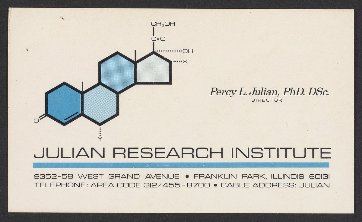Julian, Percy Lavon. “Business Card of Percy L. Julian,” n.d. Papers of Bernhard Witkop, Box 15. Science History Institute. Philadelphia. https://digital.sciencehistory.org/works/sieyazl.