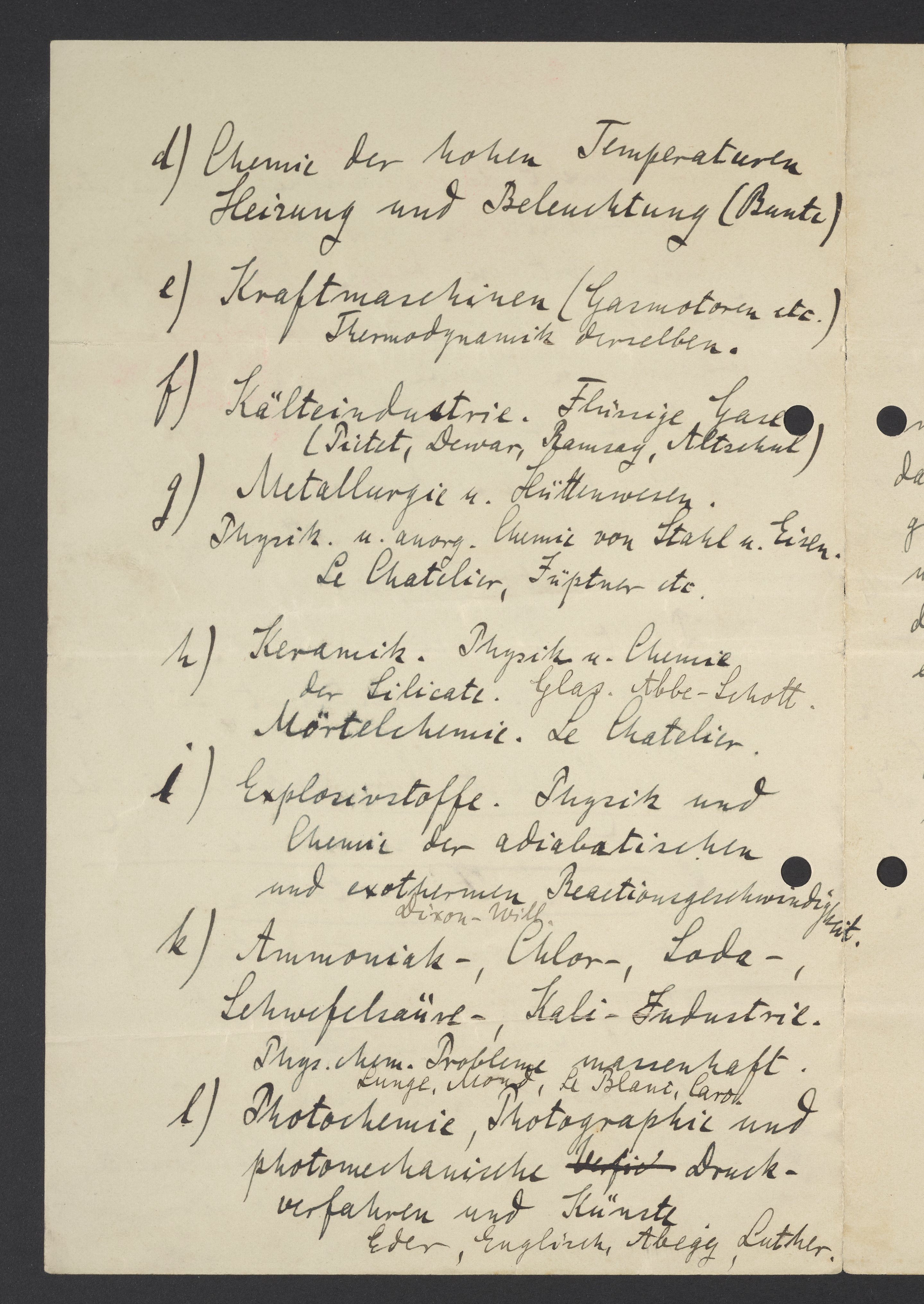e) Kraftmaschinen (Gasmotoren etc.) Thermodynamik derselben.