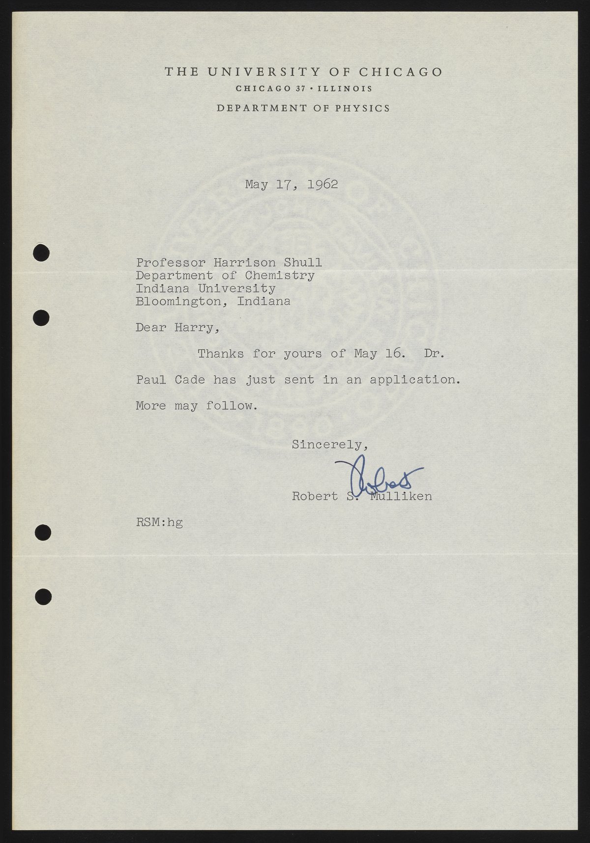 Mulliken, Robert Sanderson. “Letter from Robert S. Mulliken to Harrison Shull, 1962,” May 17, 1962. Robert S. Mulliken & Harrison Shull Correspondence, Box 1. Science History Institute. Philadelphia. https://digital.sciencehistory.org/works/sn009x90d.