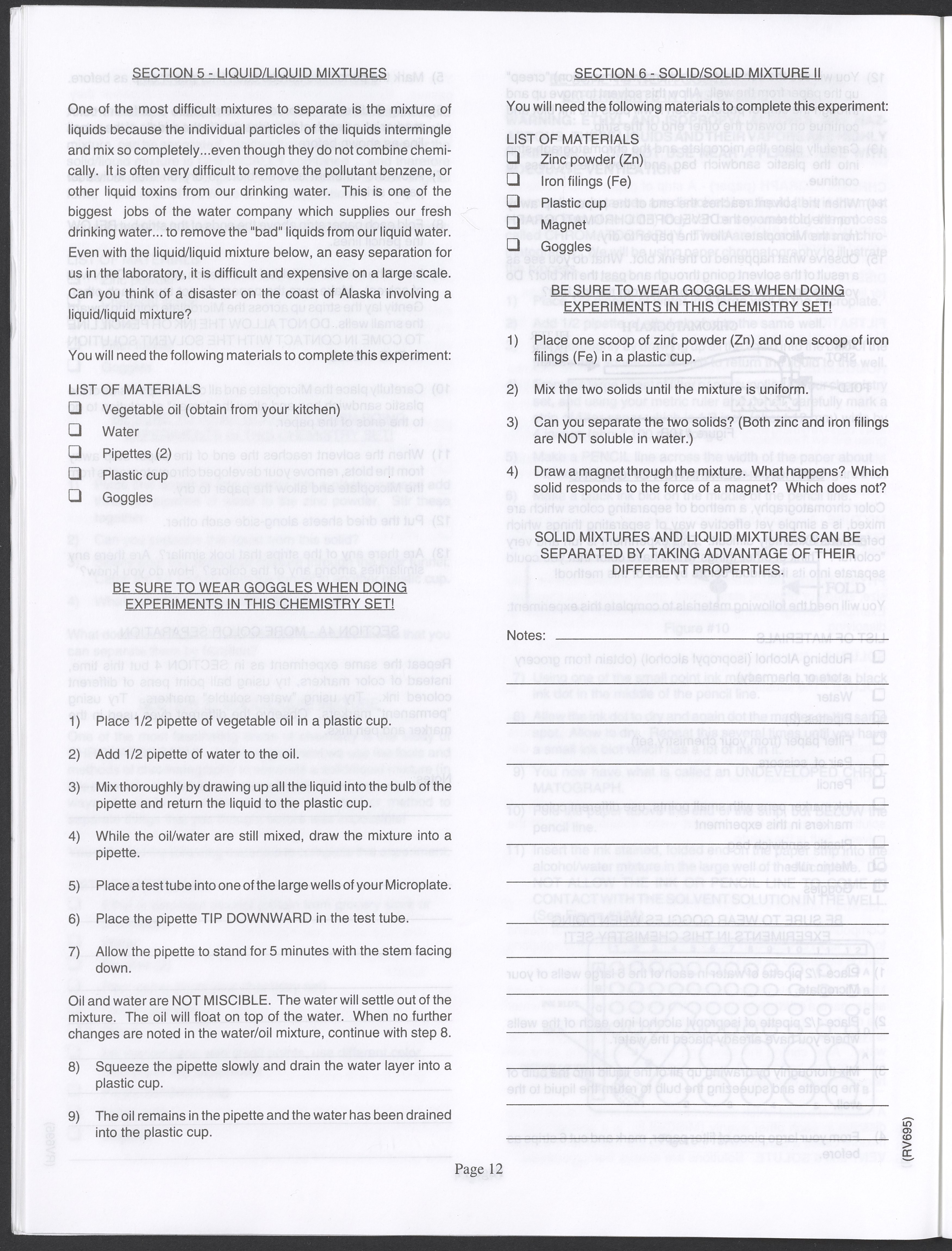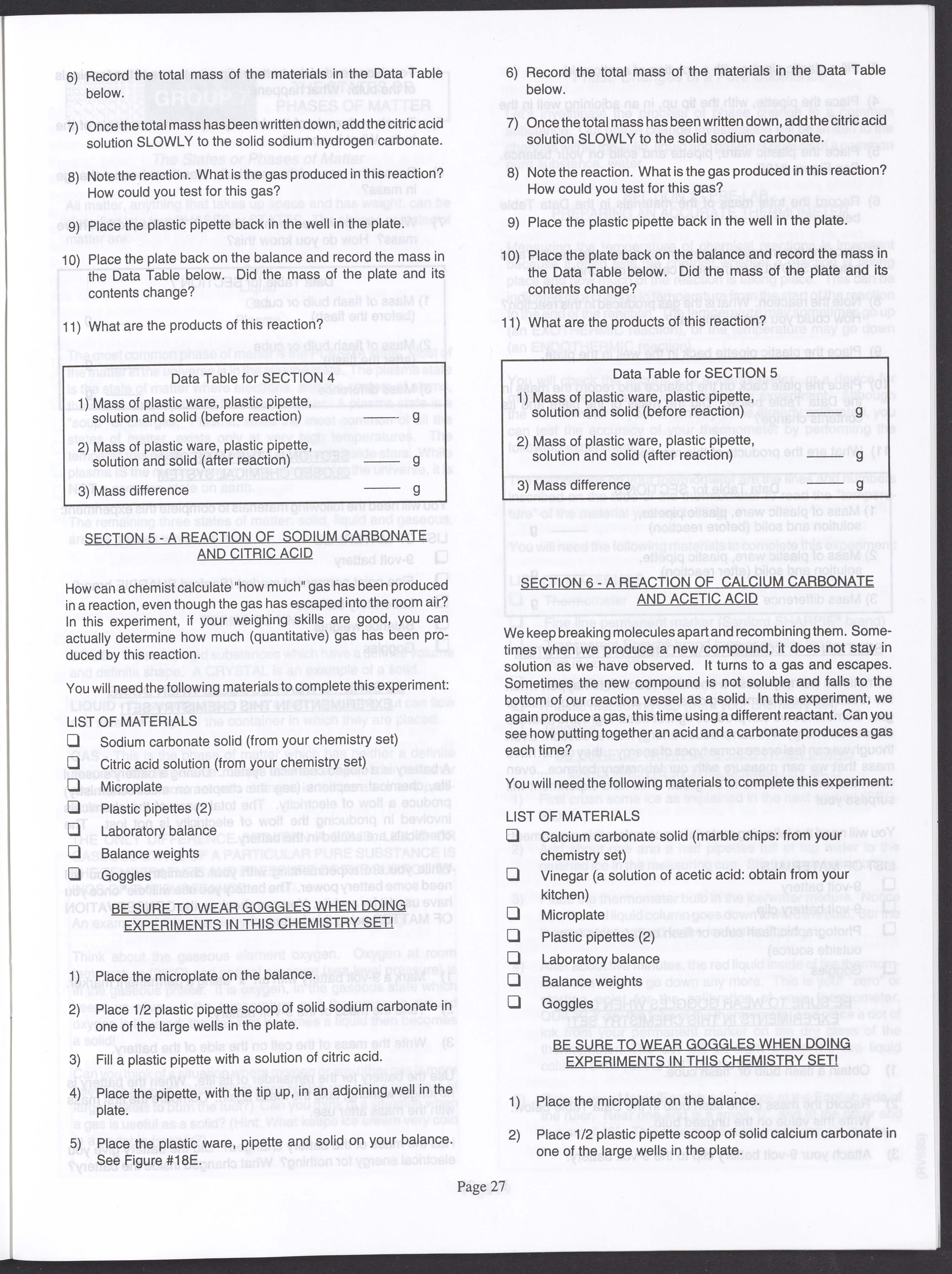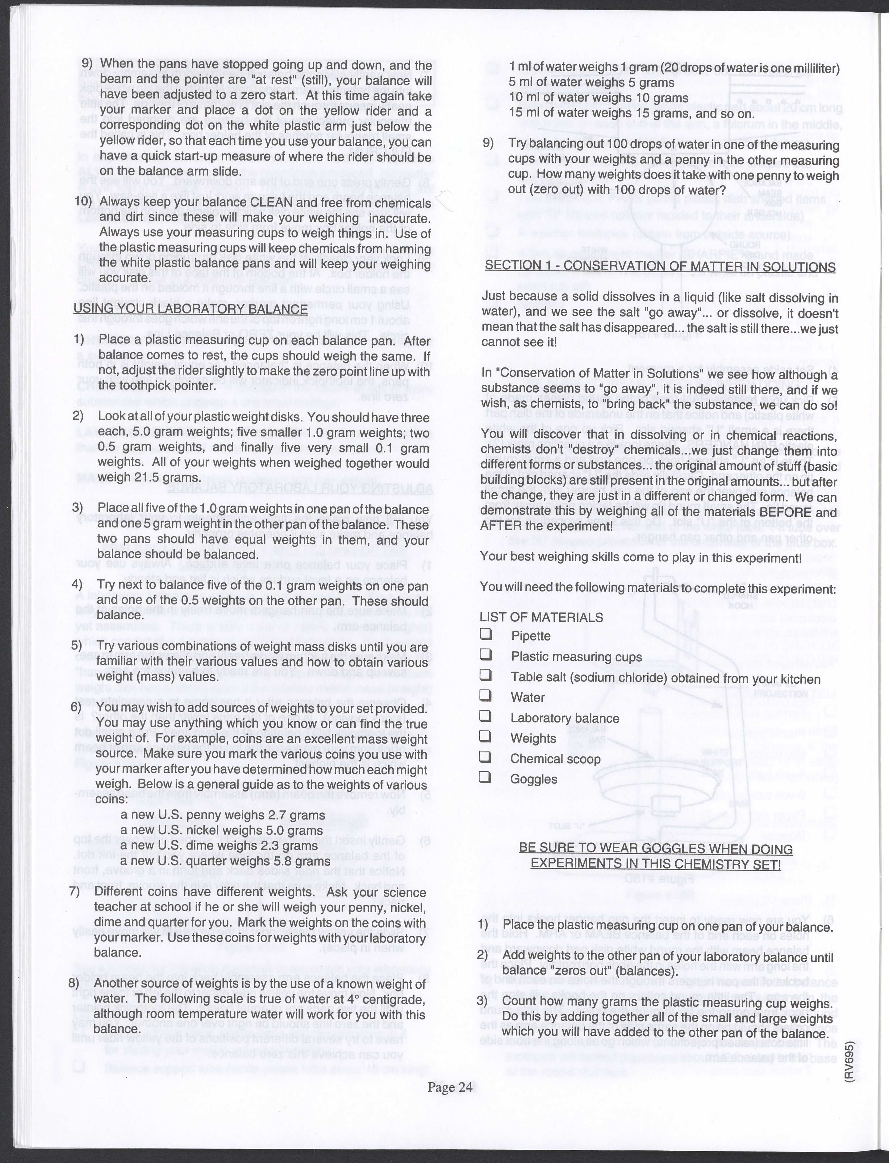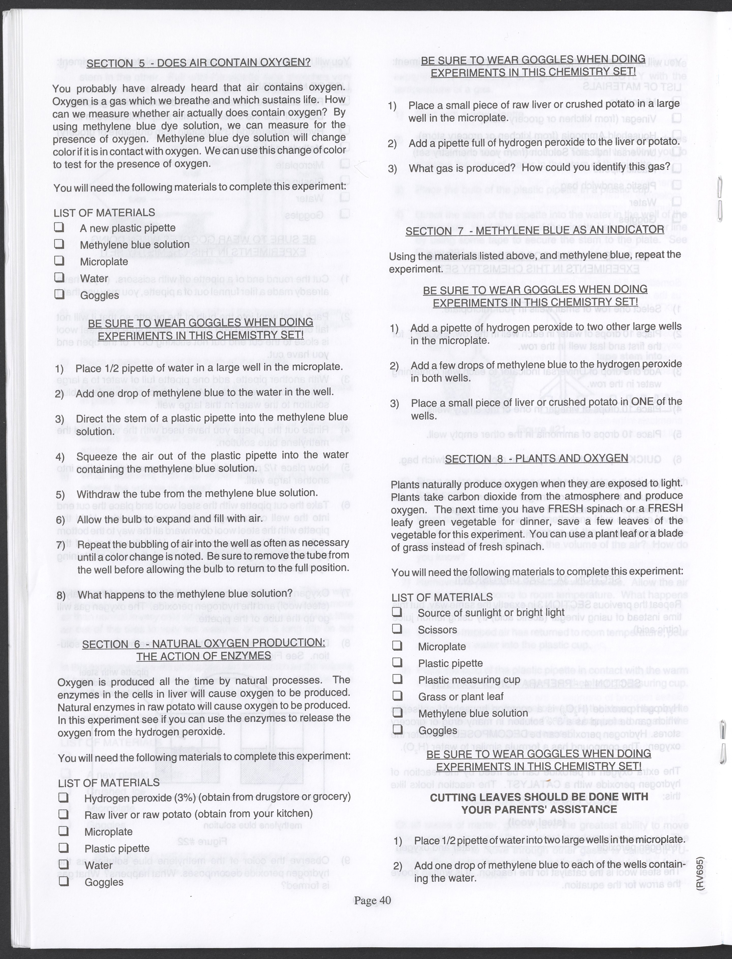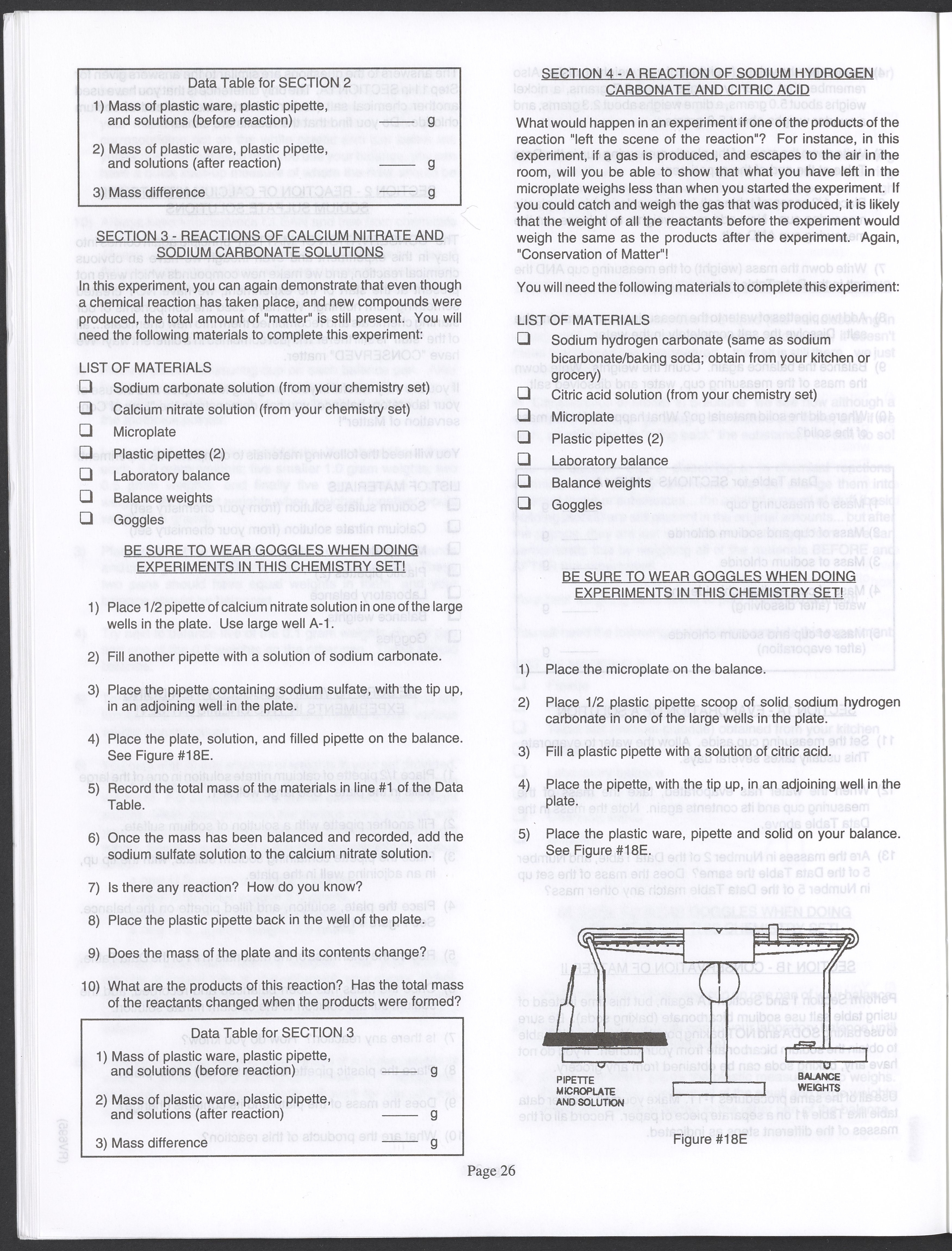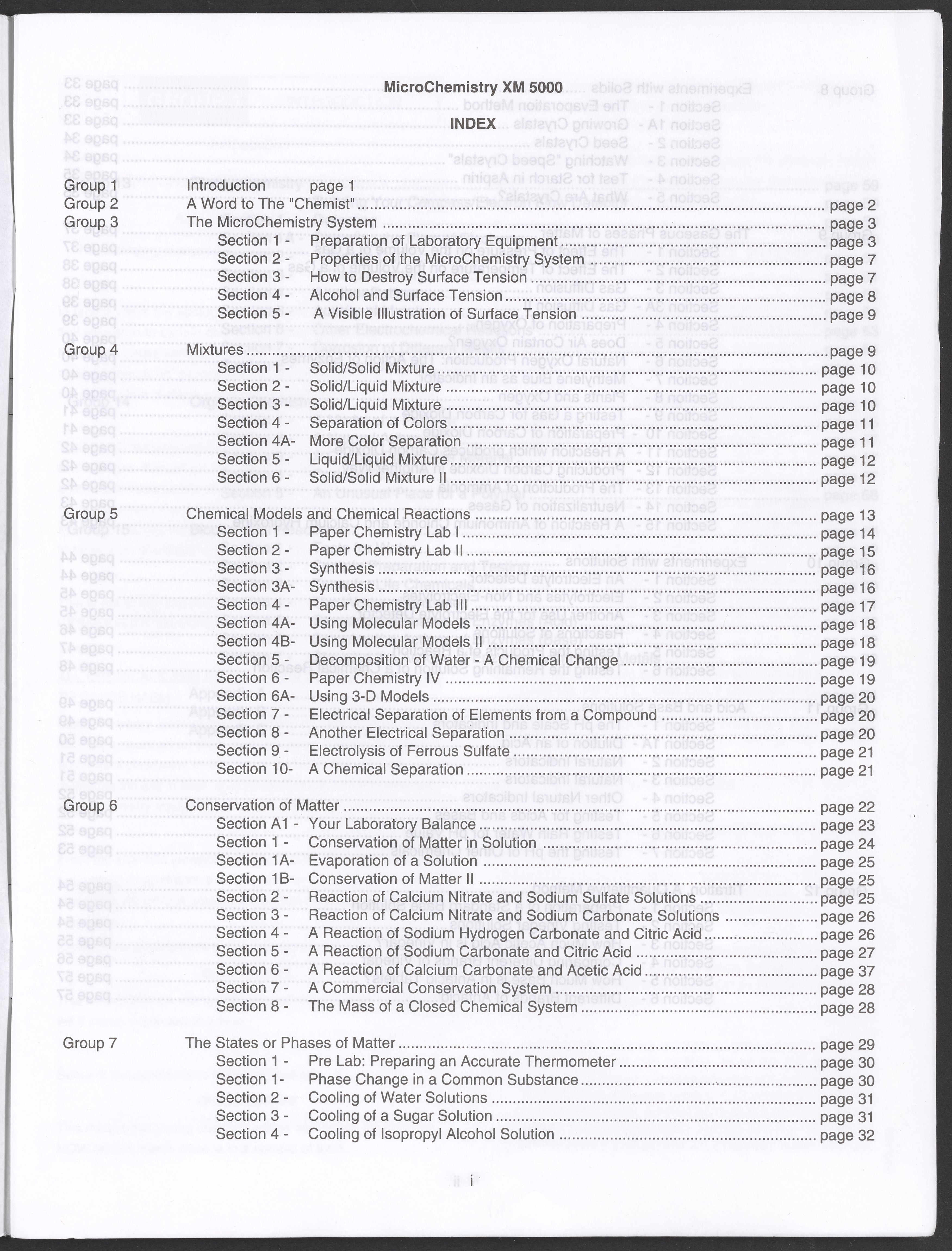 Small JPG1200 x 1571px — 264 KBLarge JPG2880 x 3771px — 1.1 MBFull-sized JPG3520 x 4609px — 1.5 MBOriginal fileTIFF — 3520 x 4609px — 46.5 MBAn instruction manual written to accompany the Smithsonian MicroChemistry XM 5000 chemistry set. Intended for use by children ages 10 and older, the manual describes how to use the set's tools, then outlines a series of experiments designed to convey the key concepts of chemical reactions, conservation of matter, phases of matter, acid-base chemistry, electrochemistry, organic chemistry, and biochemical reactions.