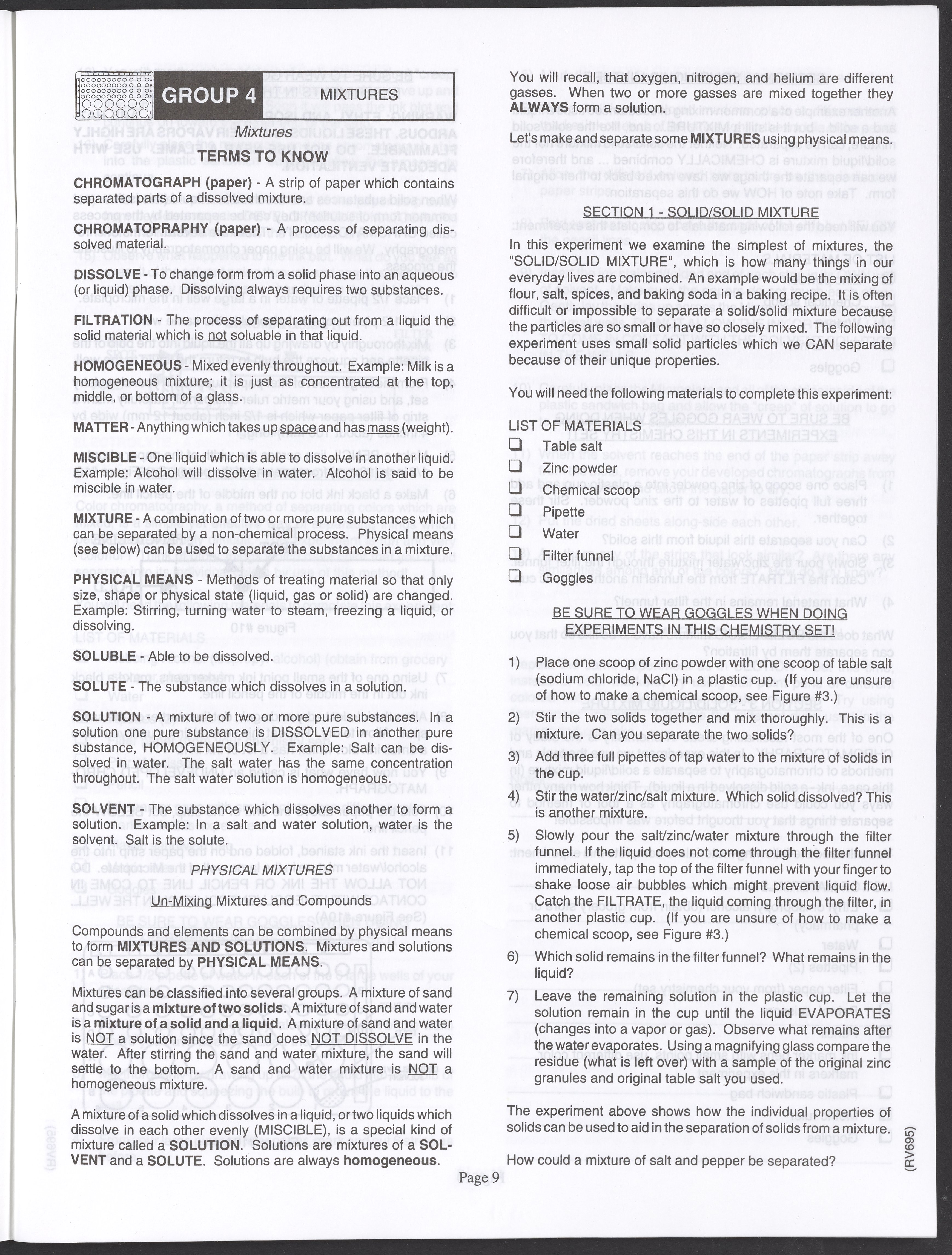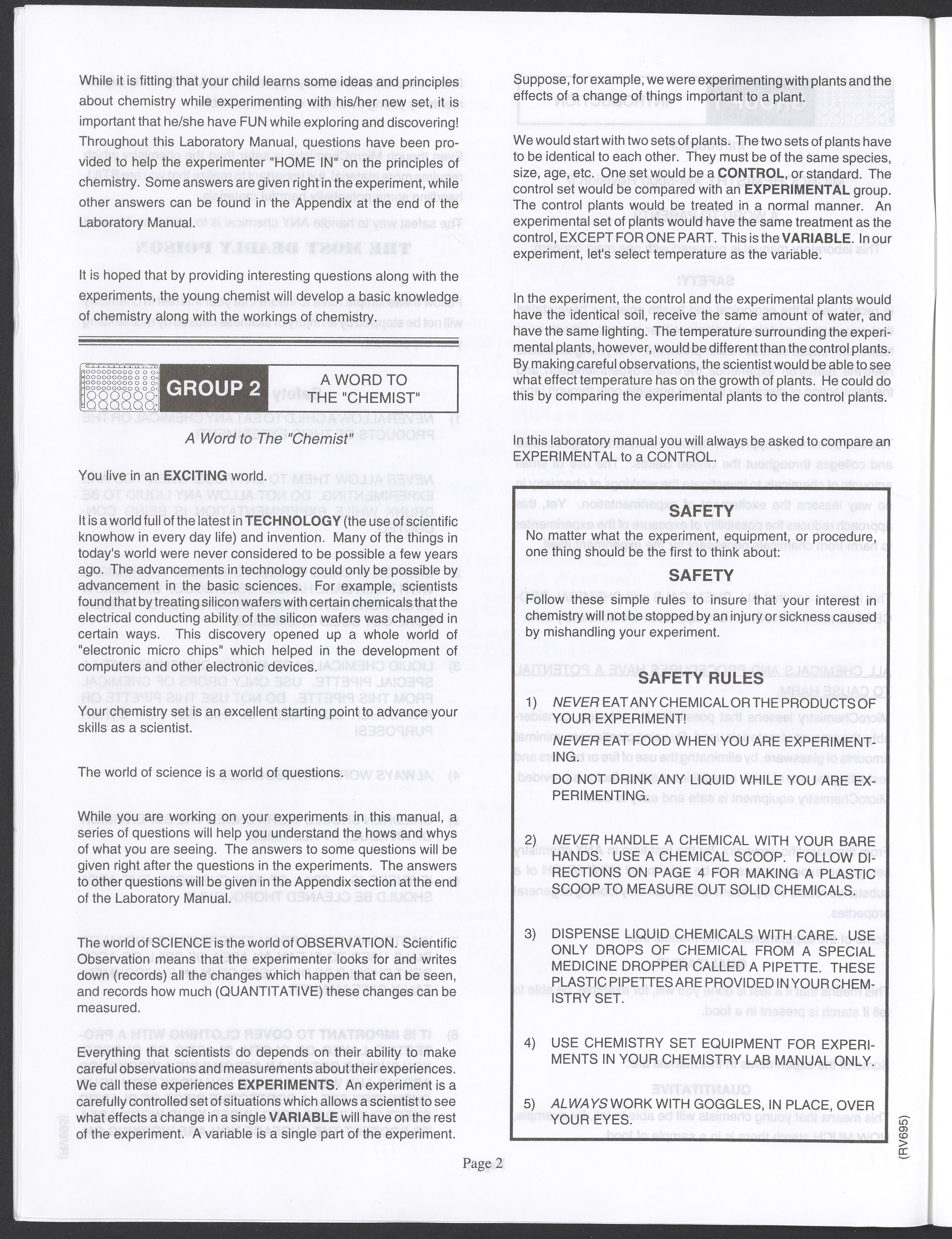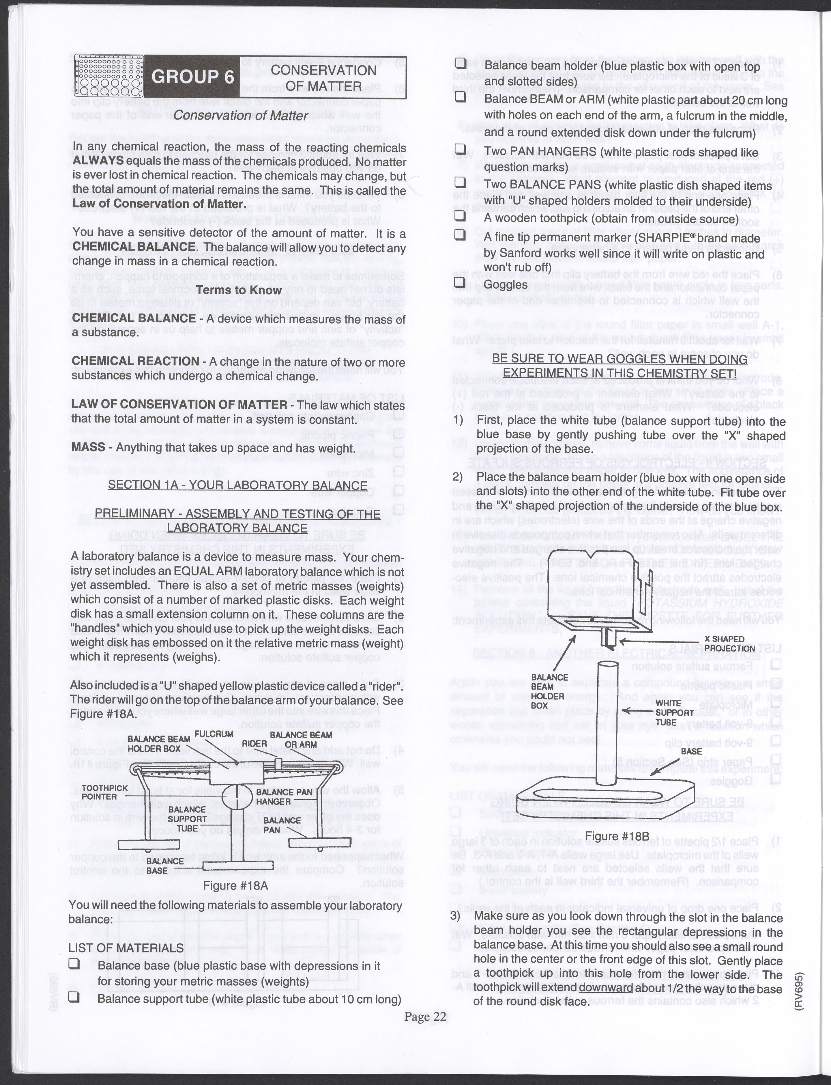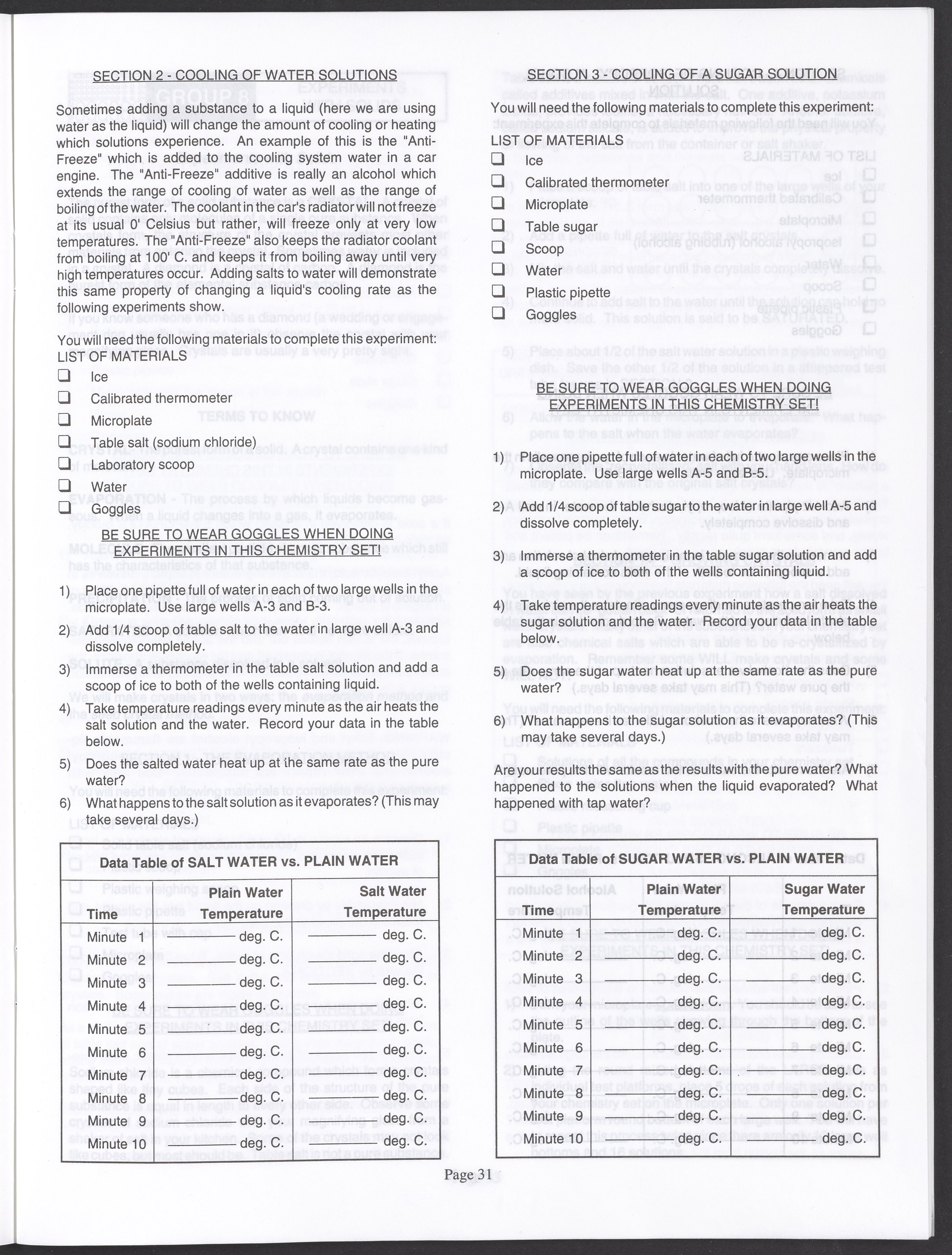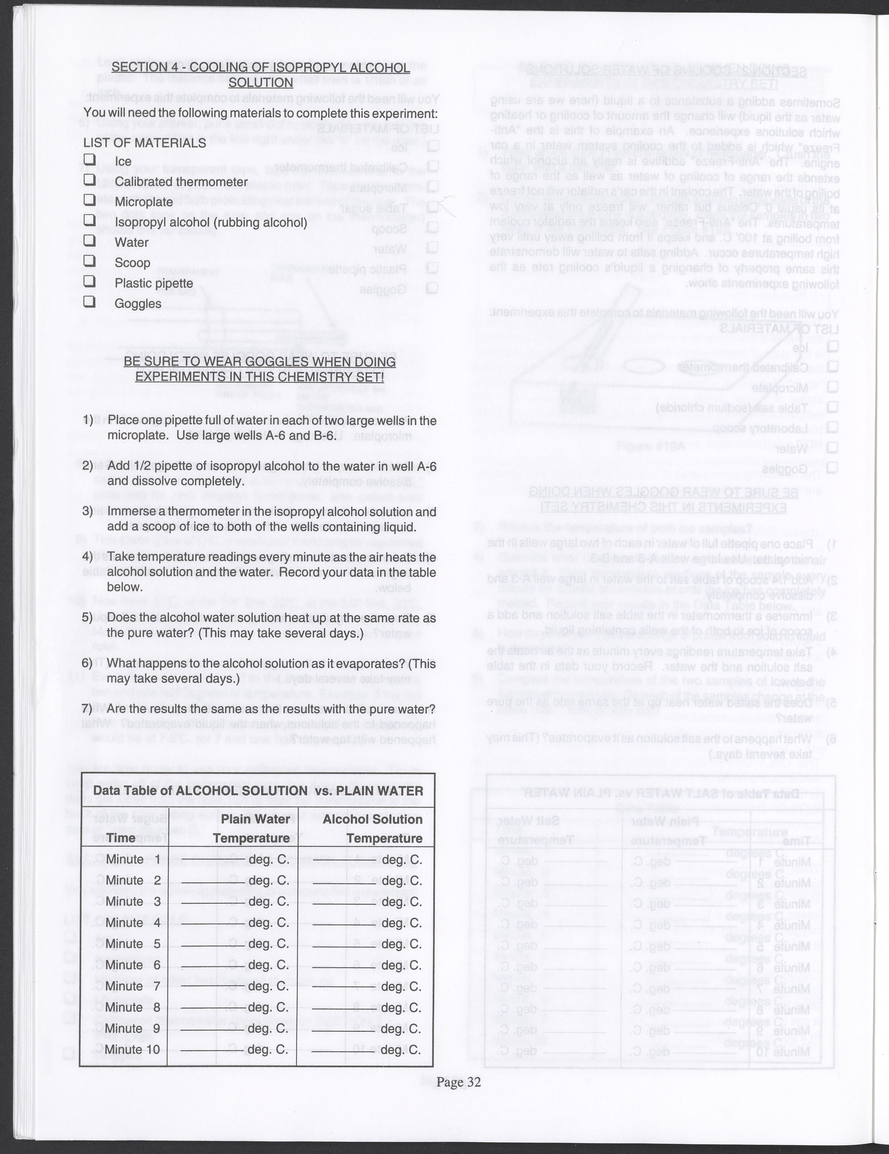 Small JPG1200 x 1571px — 264 KBLarge JPG2880 x 3771px — 1.1 MBFull-sized JPG3520 x 4609px — 1.5 MBOriginal fileTIFF — 3520 x 4609px — 46.5 MBAn instruction manual written to accompany the Smithsonian MicroChemistry XM 5000 chemistry set. Intended for use by children ages 10 and older, the manual describes how to use the set's tools, then outlines a series of experiments designed to convey the key concepts of chemical reactions, conservation of matter, phases of matter, acid-base chemistry, electrochemistry, organic chemistry, and biochemical reactions.