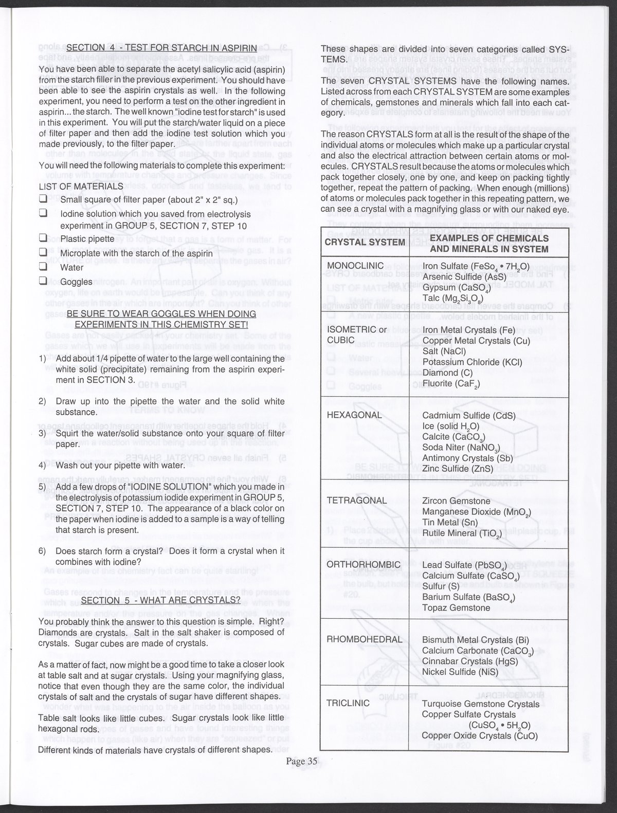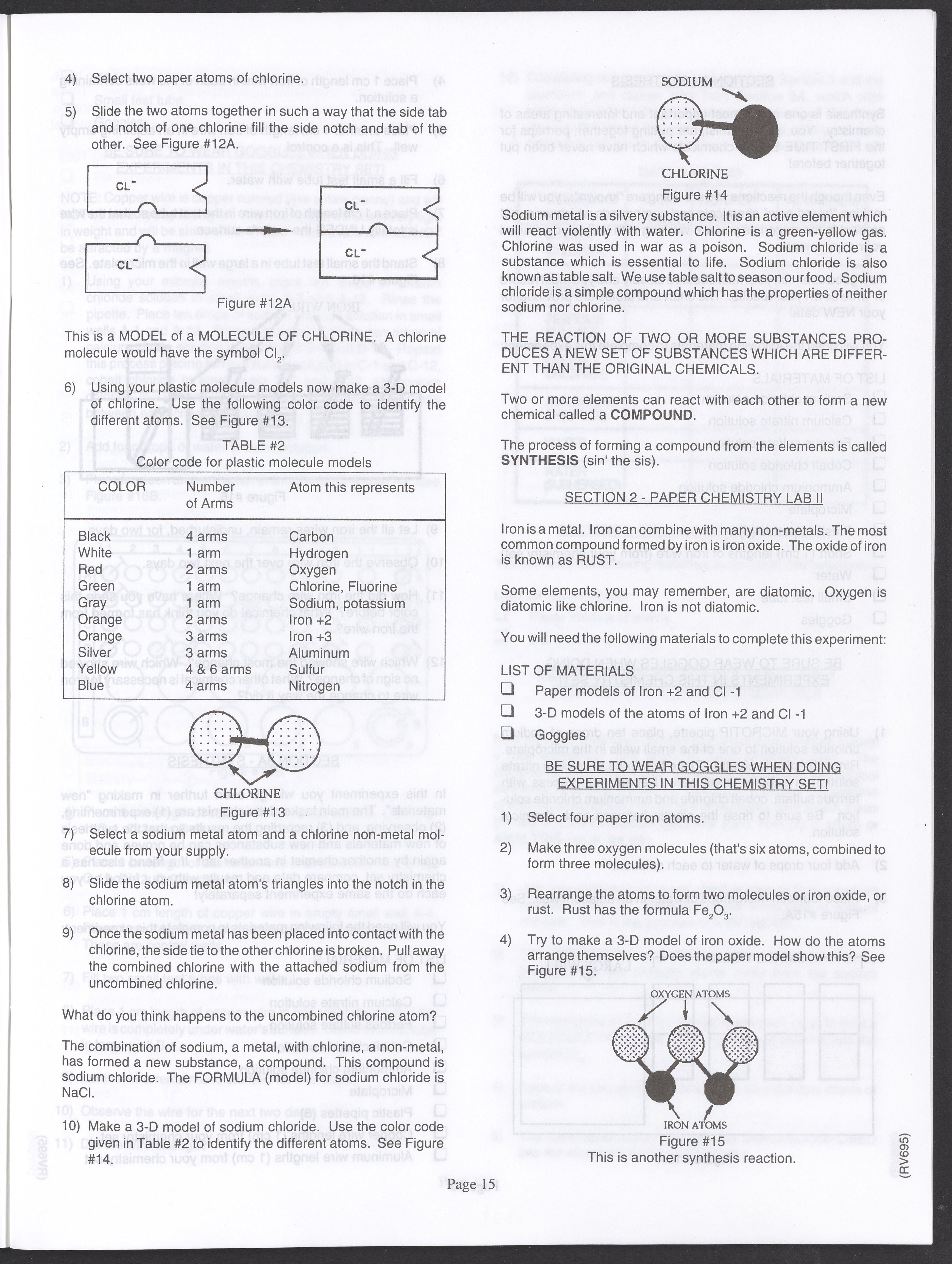 Small JPG1200 x 1571px — 264 KBLarge JPG2880 x 3771px — 1.1 MBFull-sized JPG3520 x 4609px — 1.5 MBOriginal fileTIFF — 3520 x 4609px — 46.5 MBAn instruction manual written to accompany the Smithsonian MicroChemistry XM 5000 chemistry set. Intended for use by children ages 10 and older, the manual describes how to use the set's tools, then outlines a series of experiments designed to convey the key concepts of chemical reactions, conservation of matter, phases of matter, acid-base chemistry, electrochemistry, organic chemistry, and biochemical reactions.