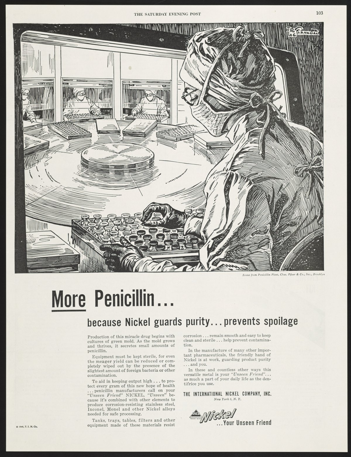 International Nickel Company. “More Penicillin...because Nickel Guards Purity...prevents Spoilage,” April 27, 1946. Science History Institute. Philadelphia. https://digital.sciencehistory.org/works/sq87bt74h.