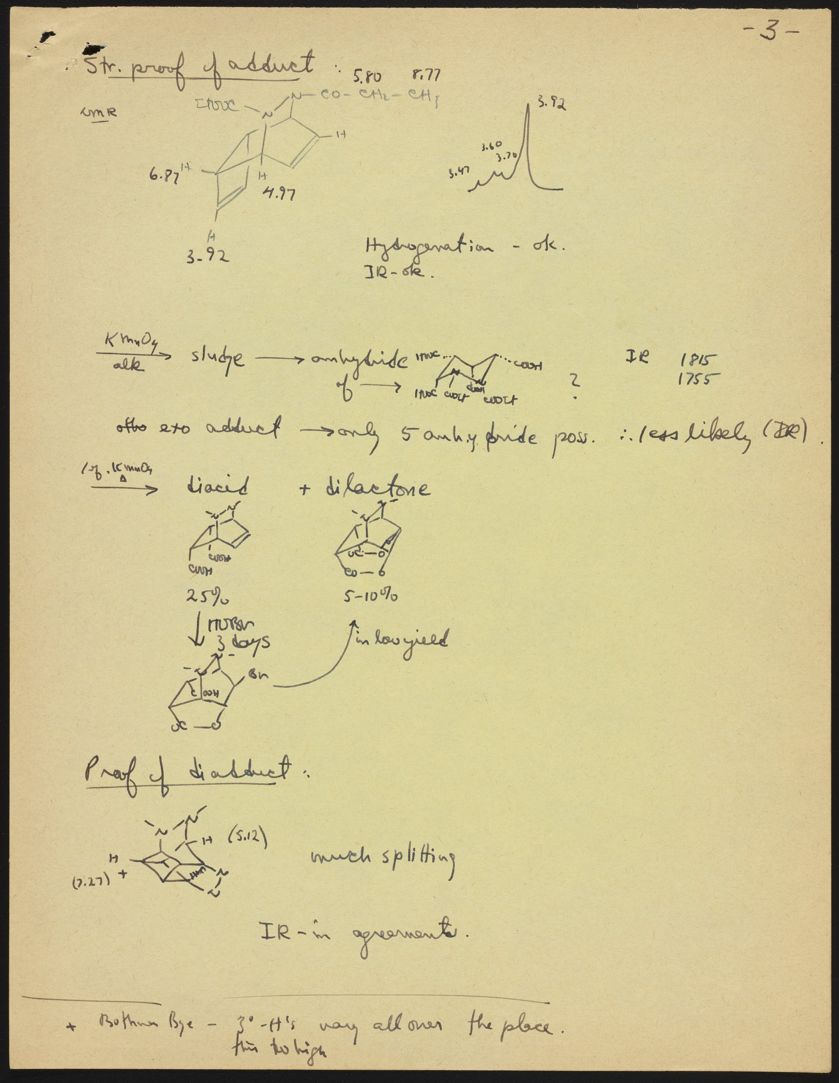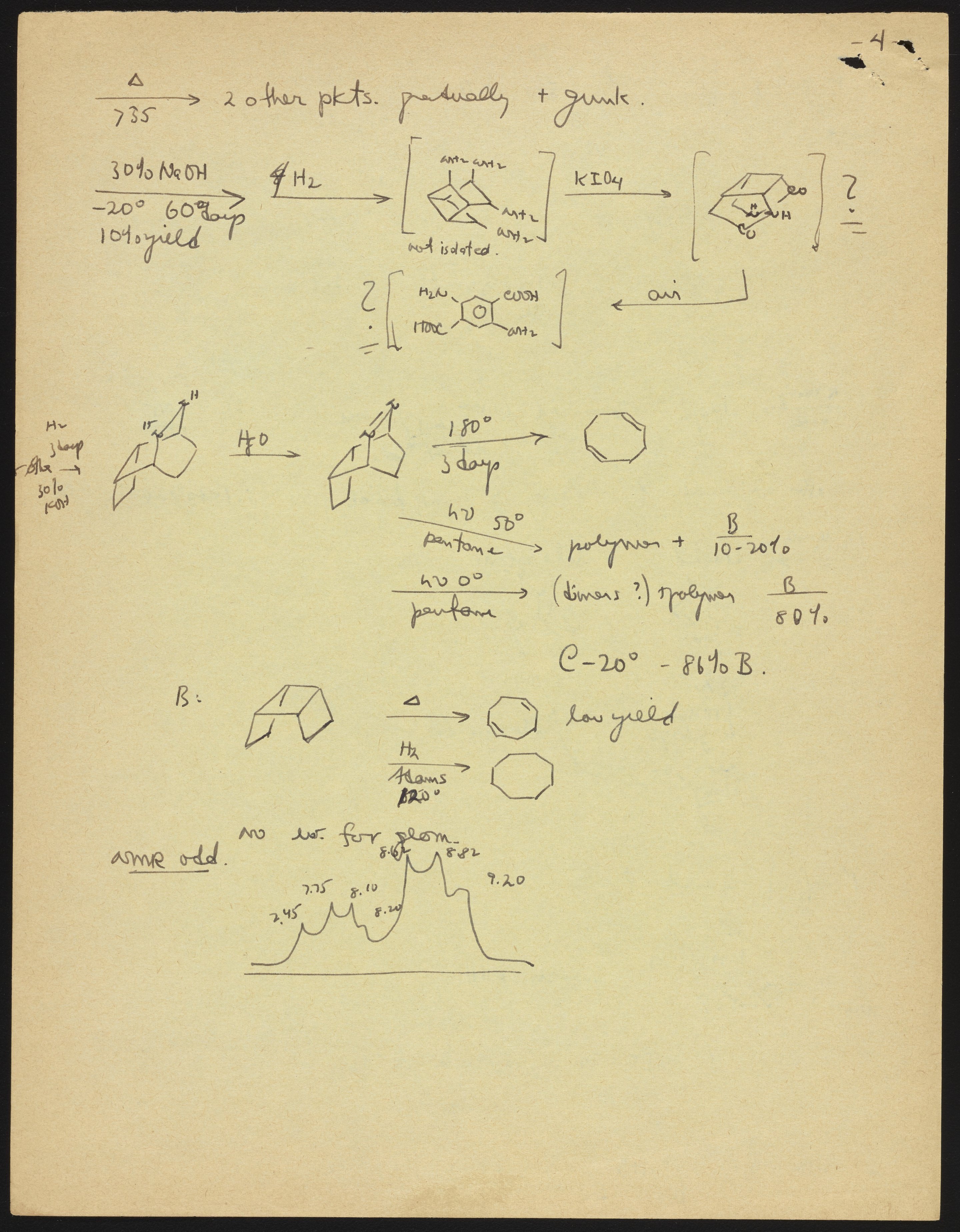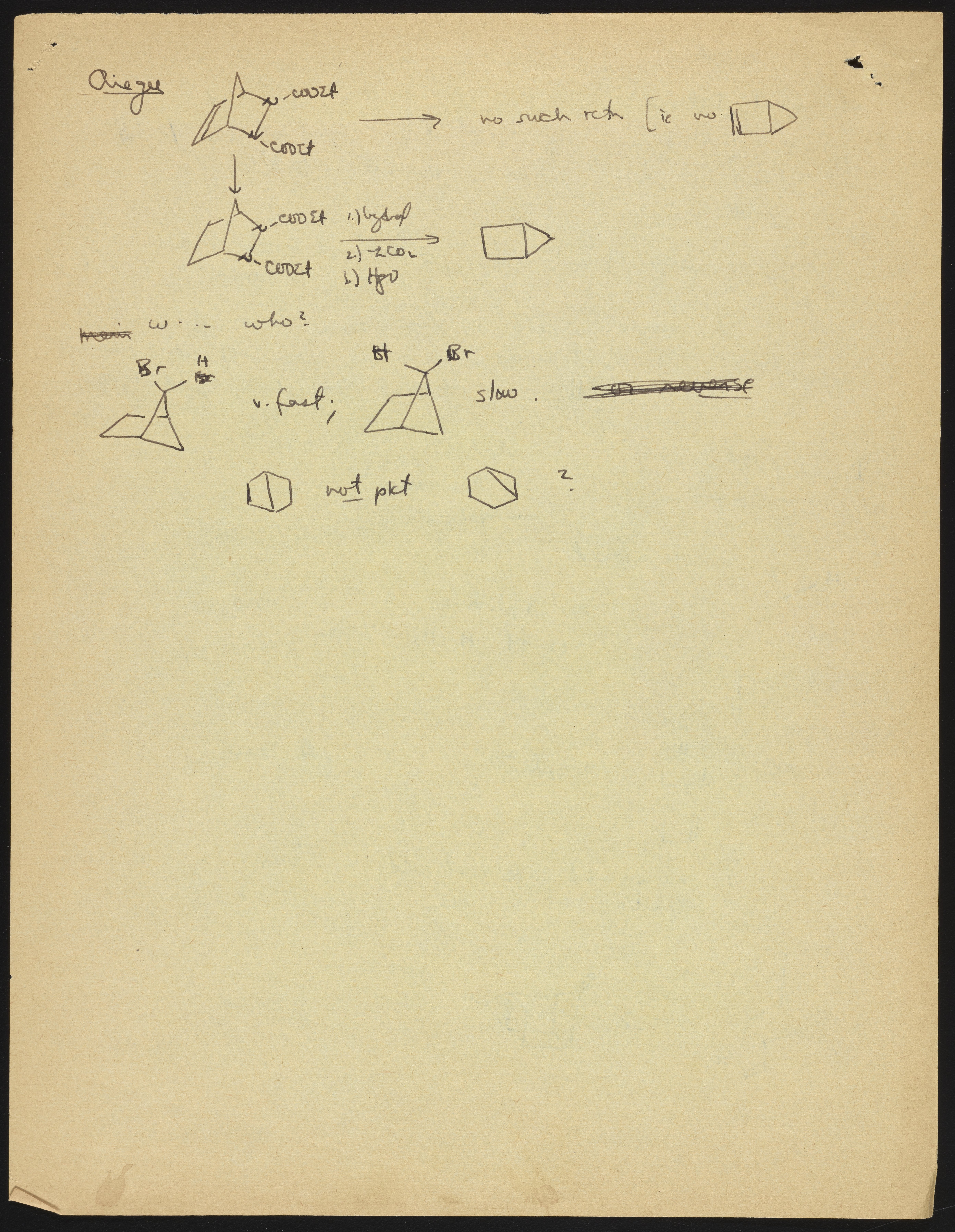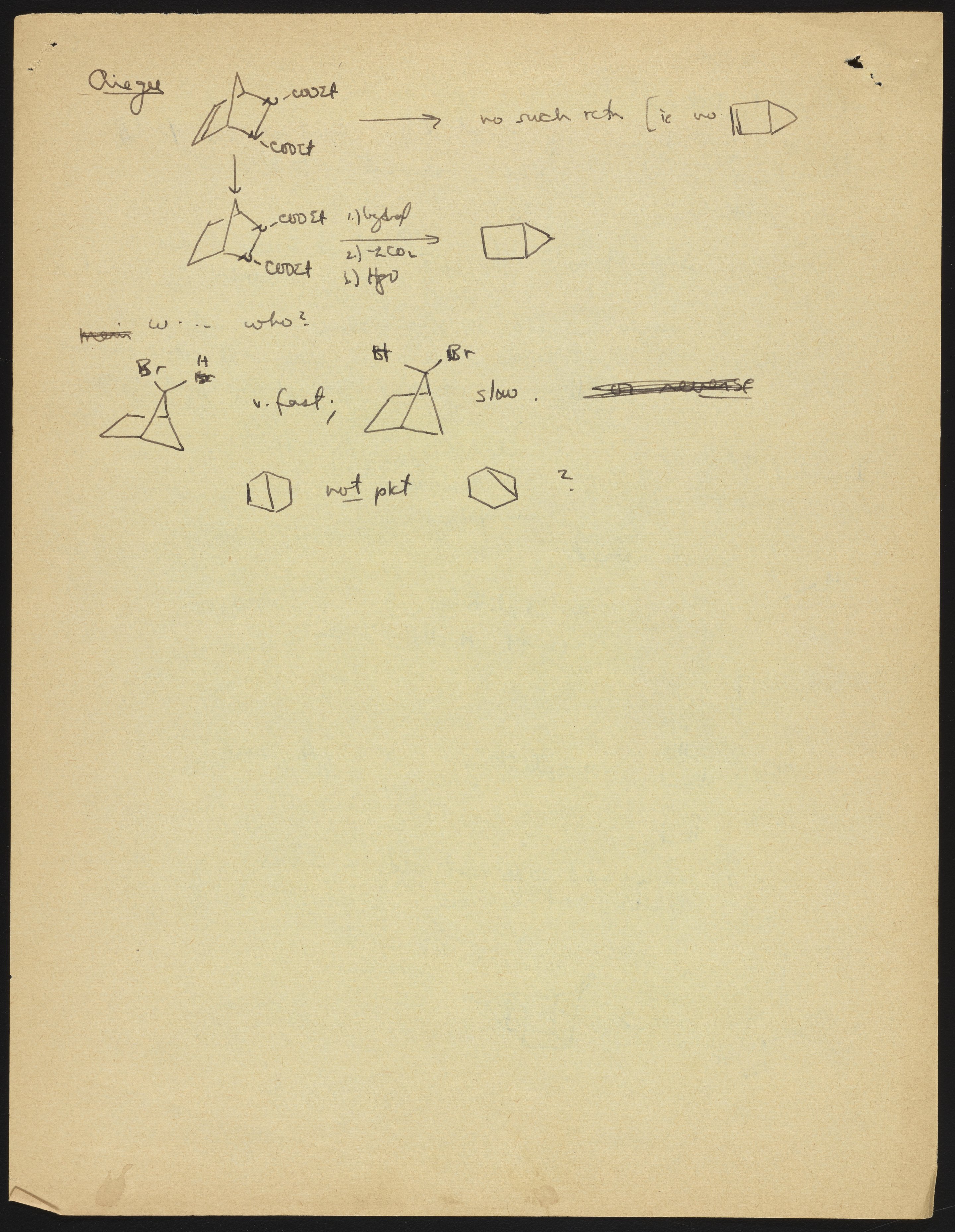 Kohler, Robert E. “R. B. (Robert Burns) Woodward Seminar Entitled ‘Strain Energies.’” Notes from R. B. (Robert Burns) Woodward's Seminars, circa 1959–1966. Folder 2. Science History Institute. Philadelphia. https://digital.sciencehistory.org/works/sq87bv68k.