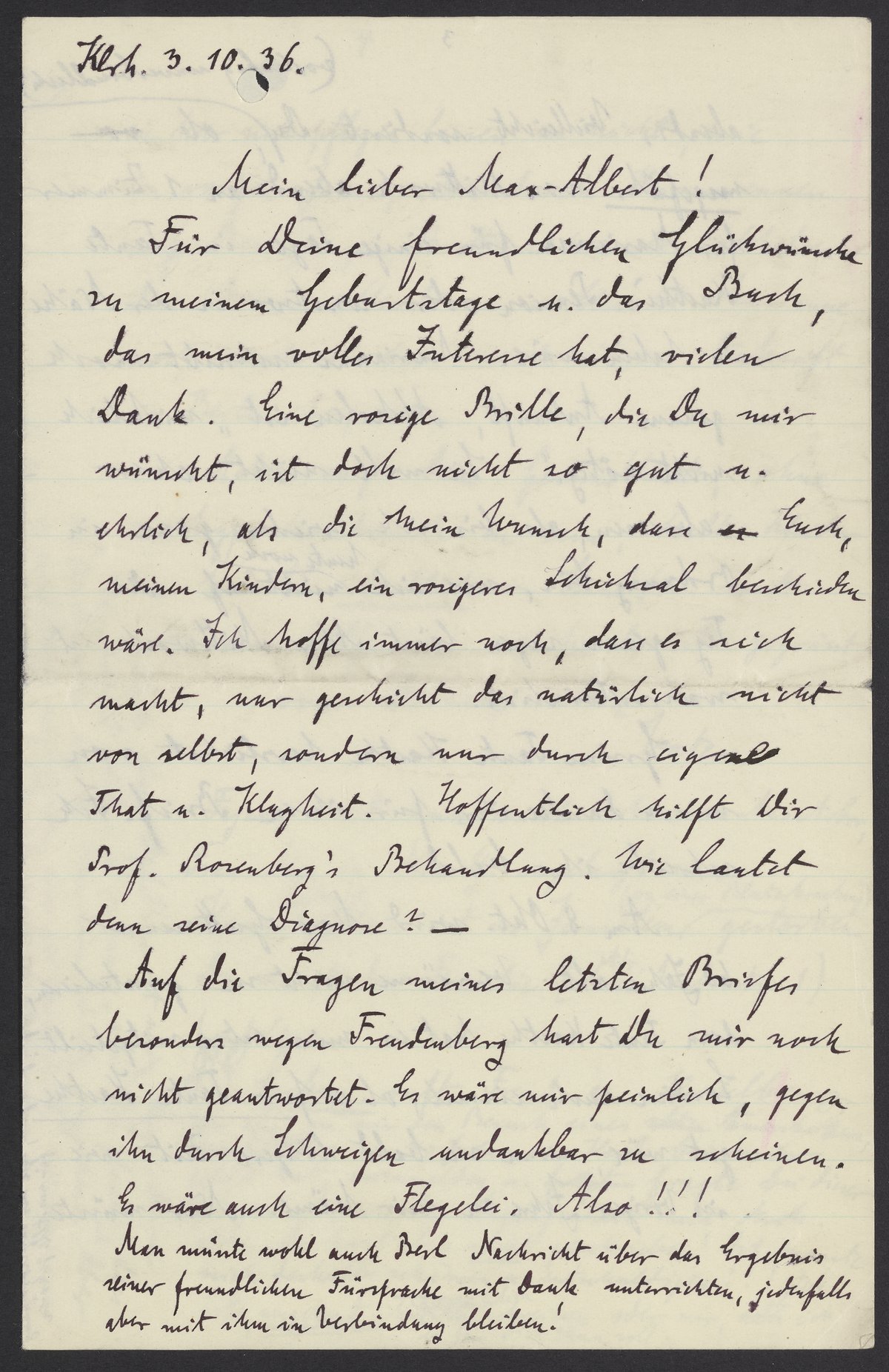 Letter from Georg Bredig to Max Bredig, October 3, 1936