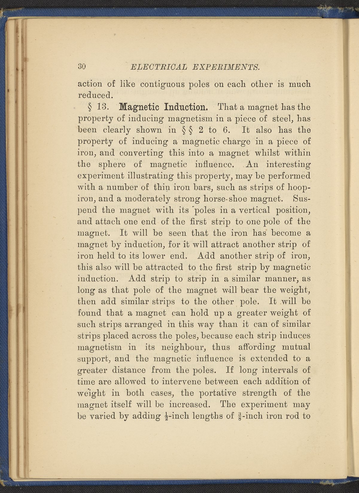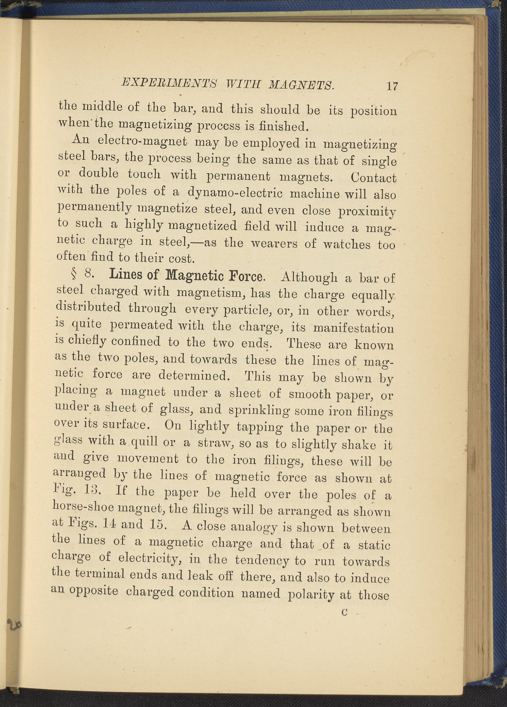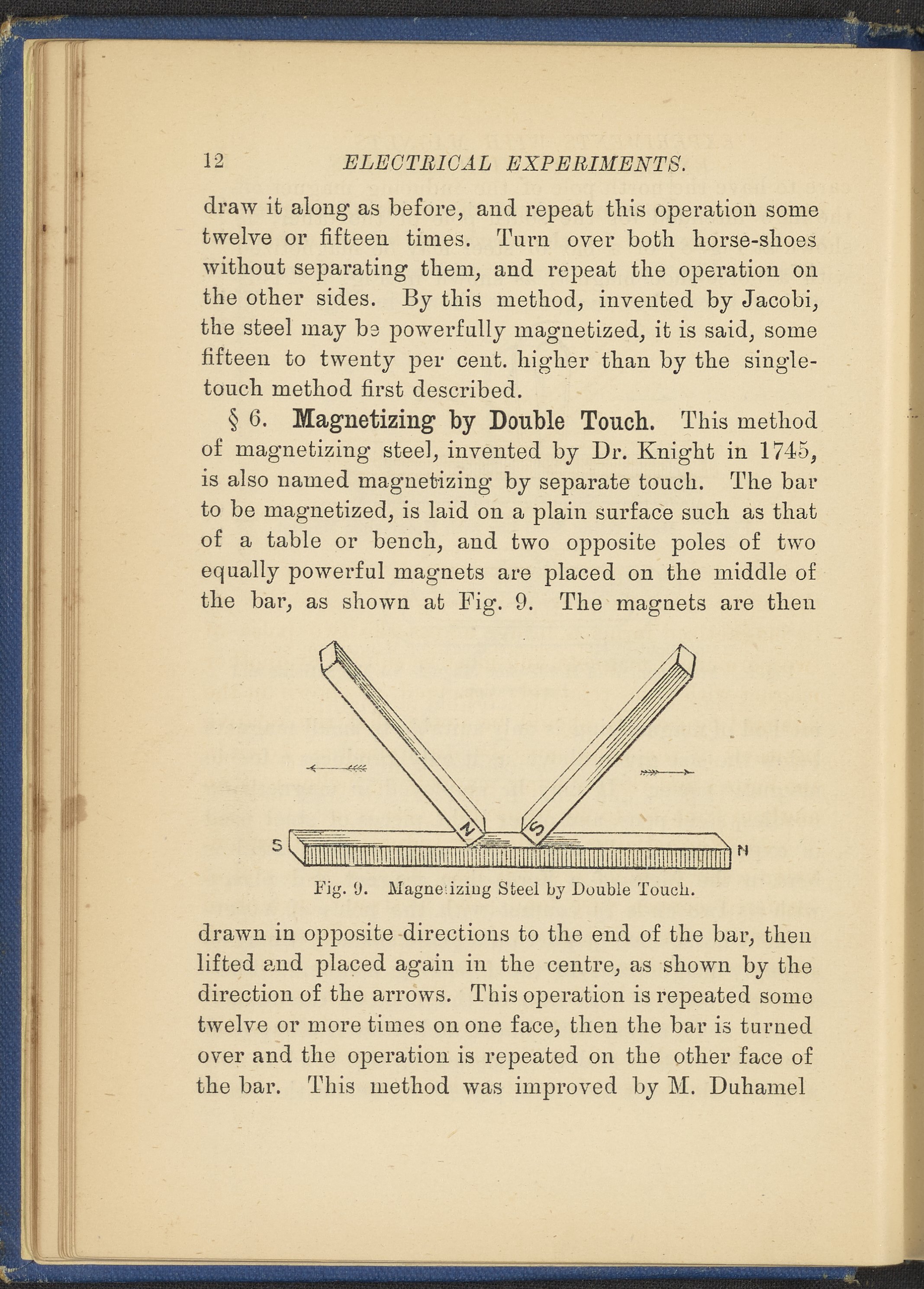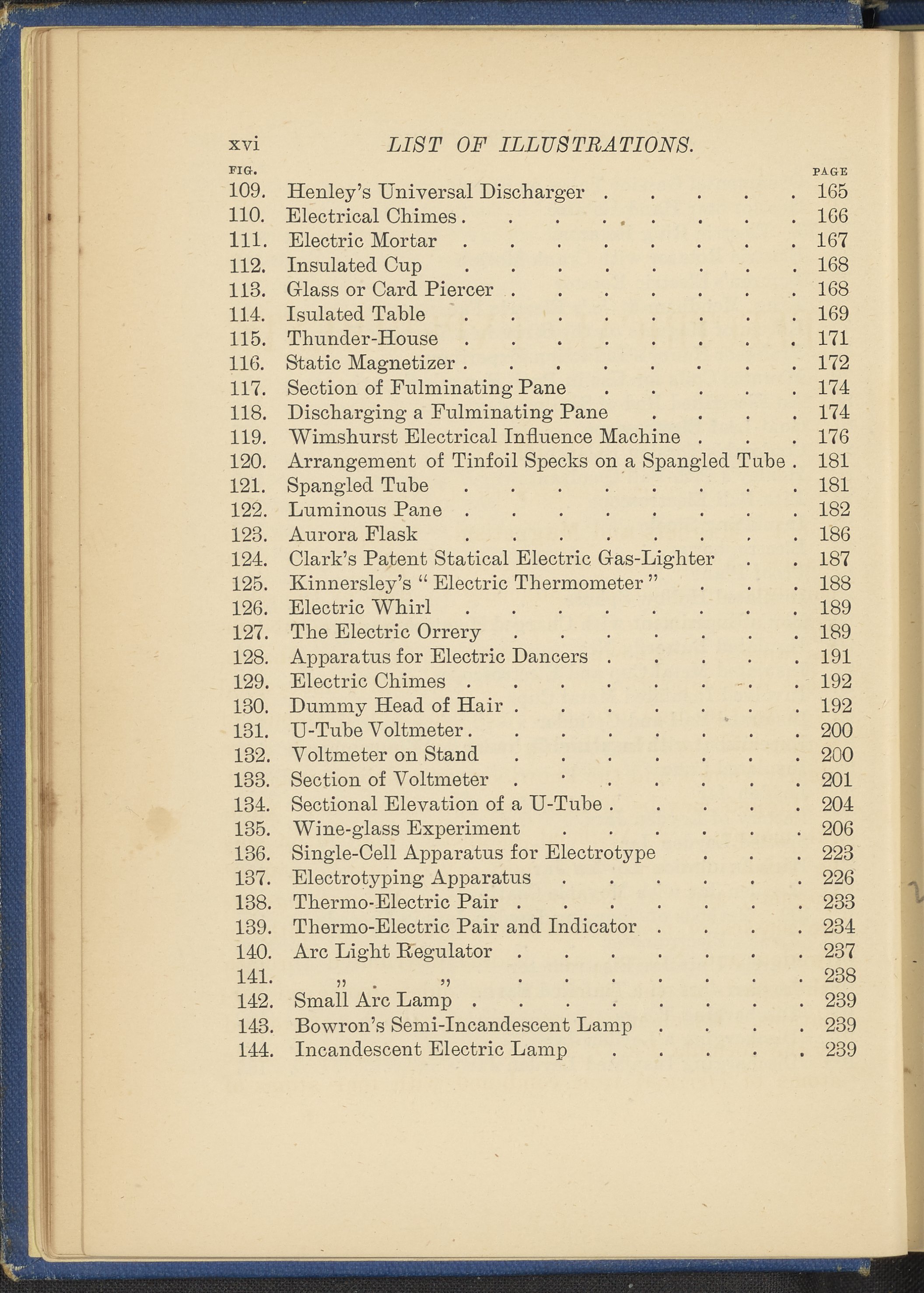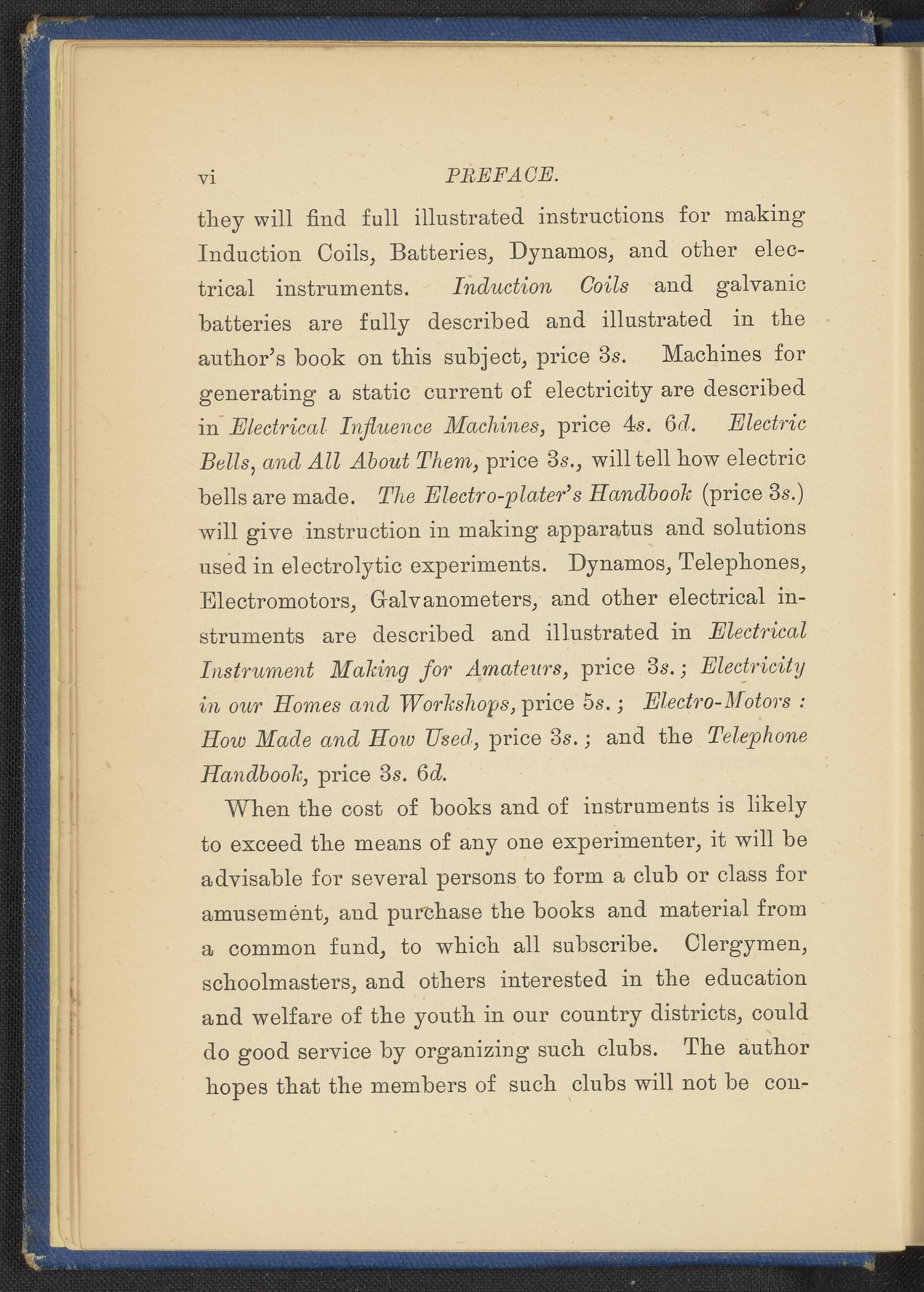 Small JPG1200 x 1571px — 494 KBFull-sized JPG2284 x 2991px — 1.5 MBOriginal fileTIFF — 2284 x 2991px — 19.6 MBWritten to show how electrical apparatus can be assembled at little cost for engaging instruction of scientifically-curious youth, this work includes descriptions of simple experiments that demonstrate elementary concepts of magnetism and electricity. Work is thoroughly illustrated and digitized in its entirety.