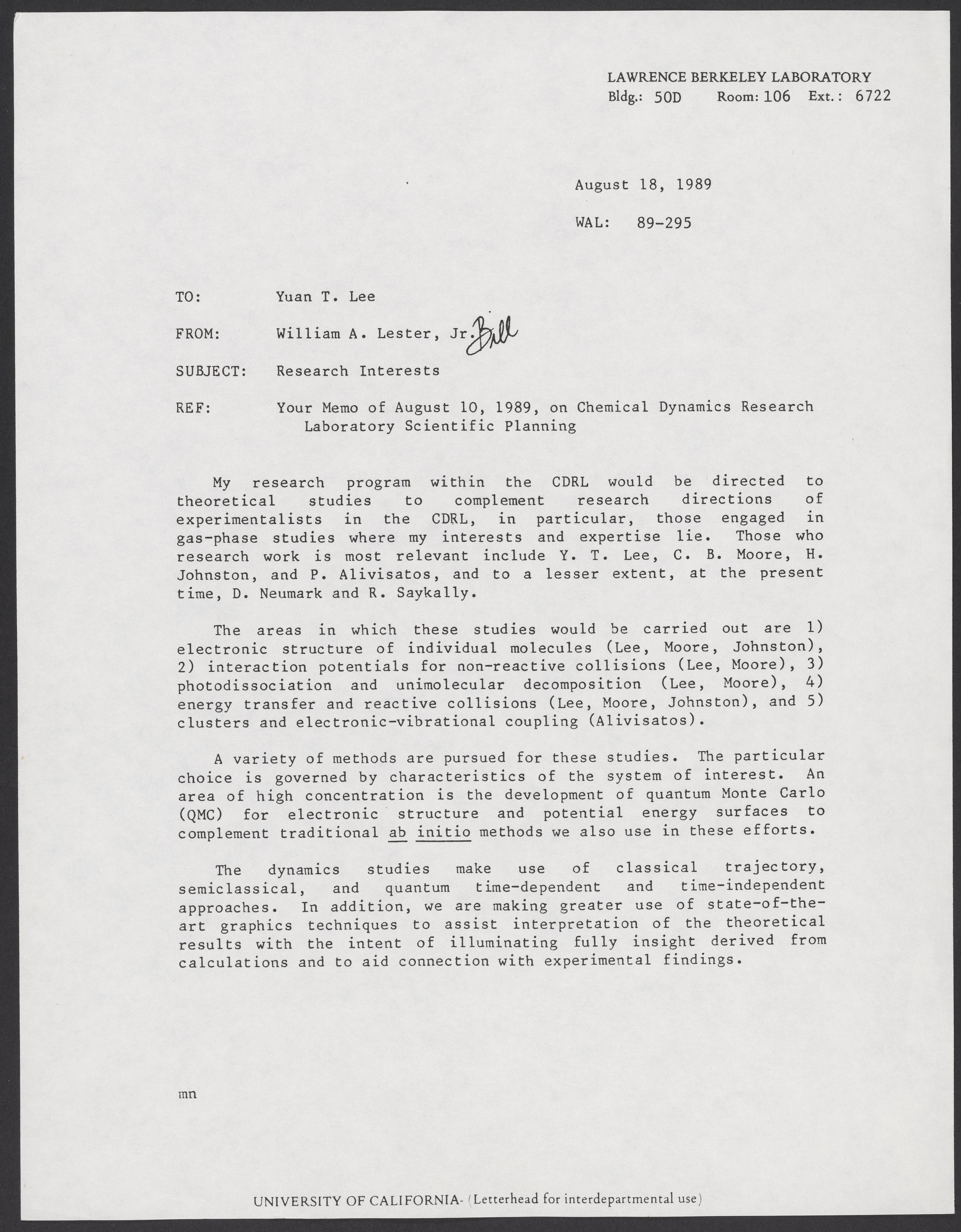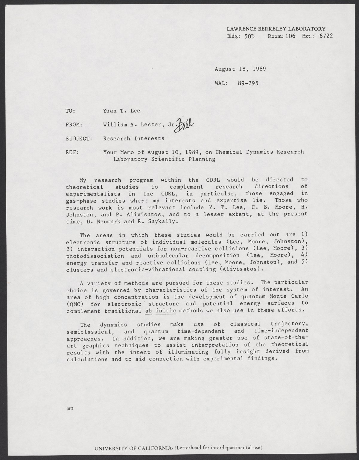 Letter from William A. Lester, Jr. to Yuan T. Lee, August 18, 1989