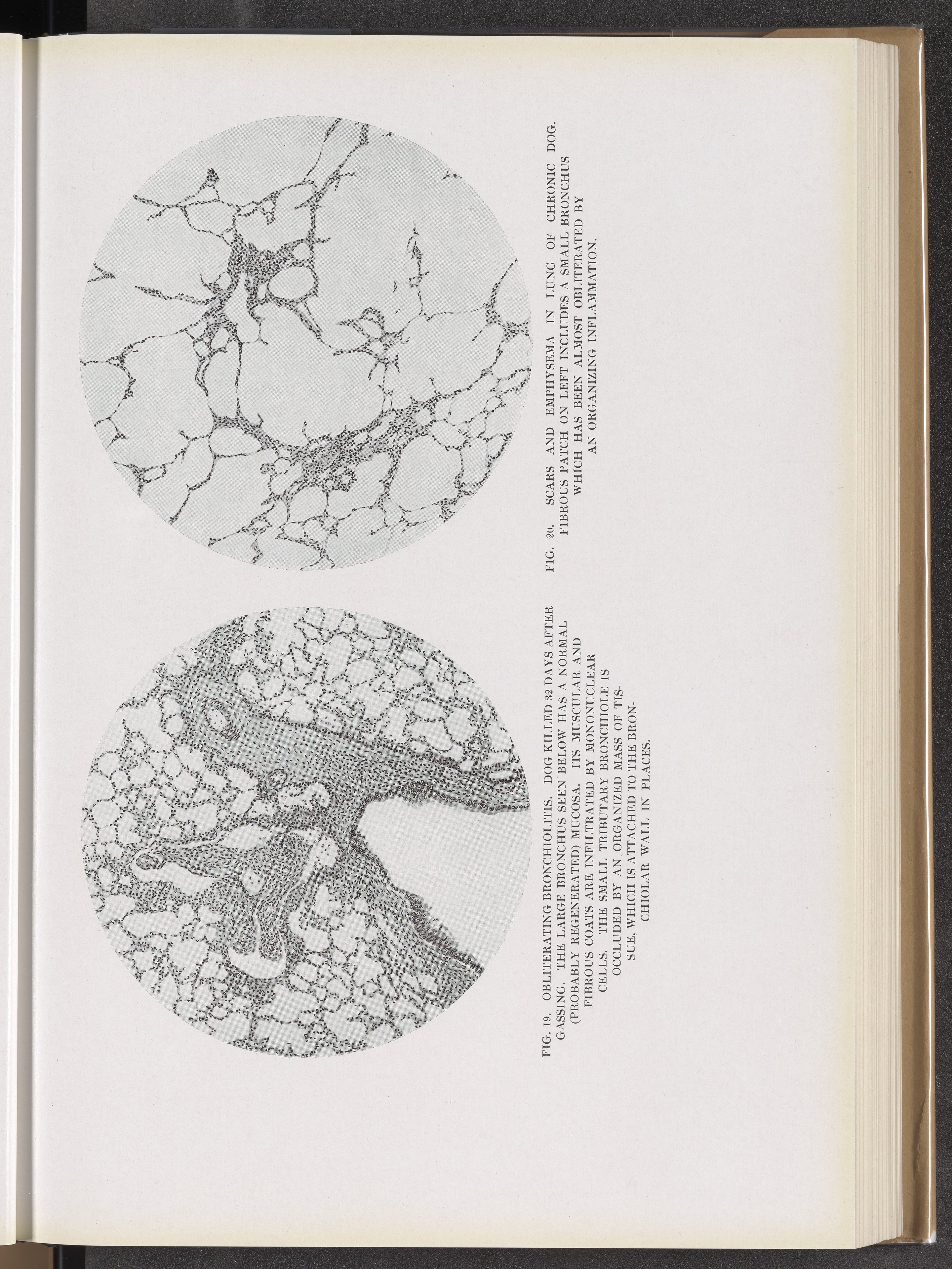 Winternitz, M. C. (Milton C.). “Fig. 19: Obliterating Bronchiolitis. Fig. 20: Scars and Emphysema in Lung of Chronic Dog.” Collected Studies on the Pathology of War Gas Poisoning. New Haven, Connecticut: Yale University Press, 1920. https://digital.sciencehistory.org/works/st74cq62z.