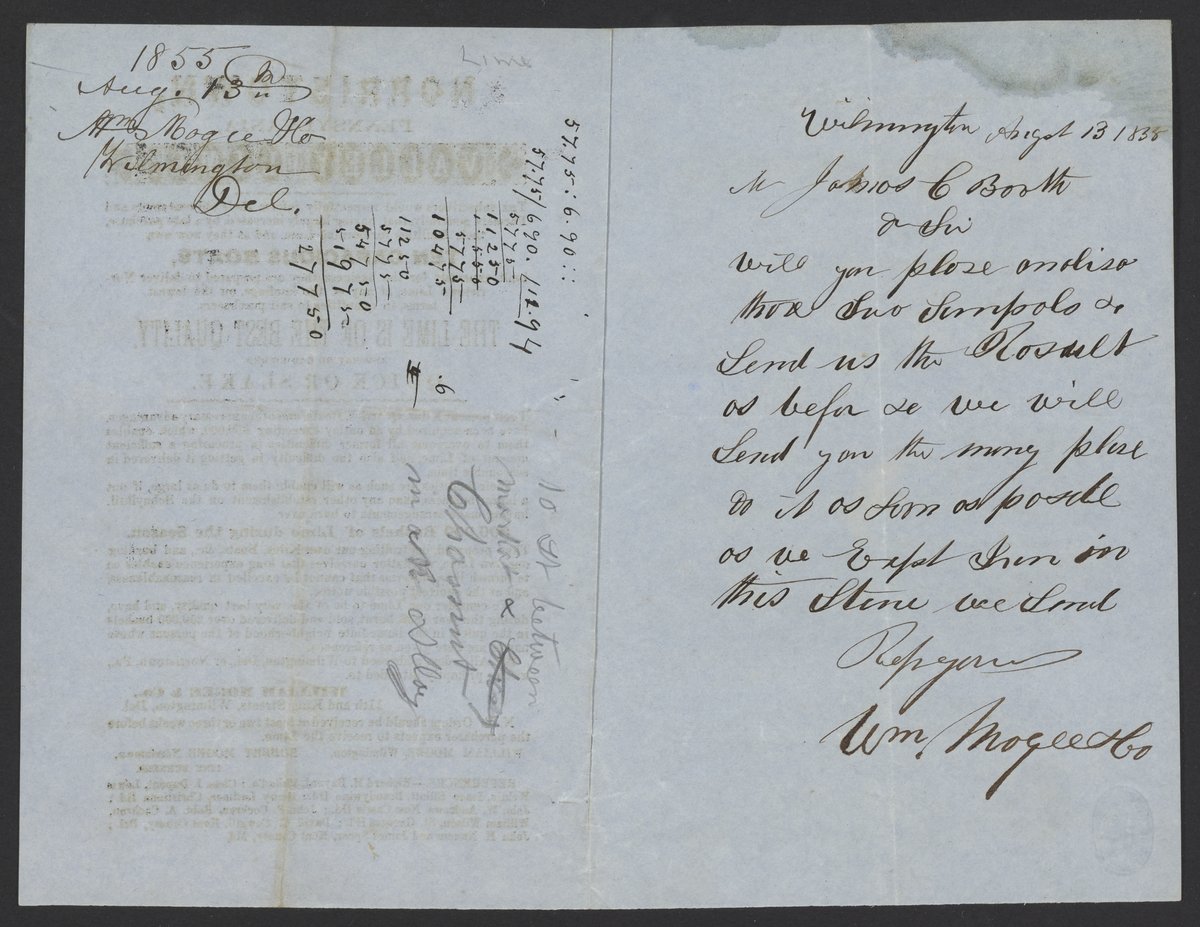 Letter from William Mogee and Co. to James Curtis Booth, August 1855