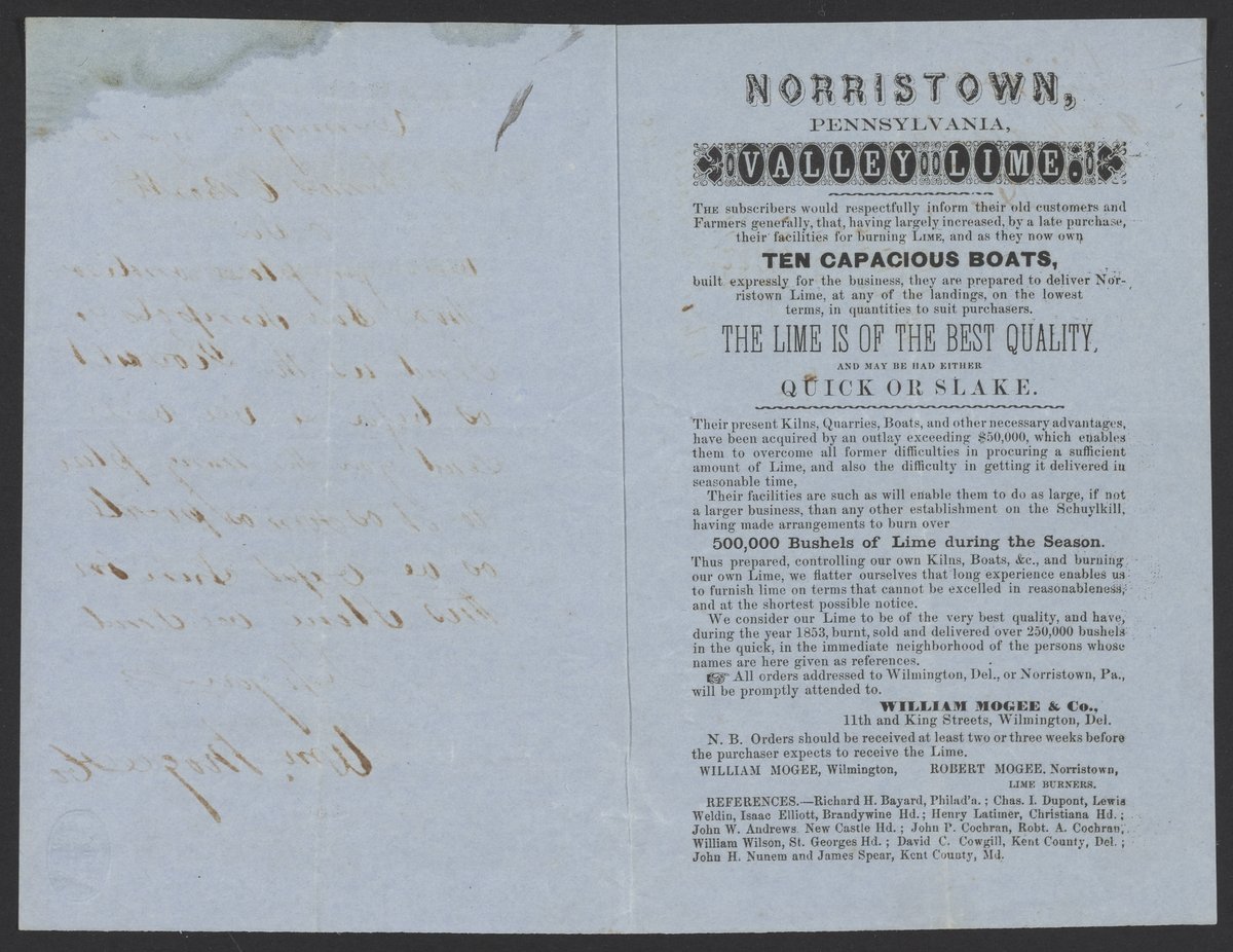 William Mogee & Co. “Letter from William Mogee and Co. to James Curtis Booth, August 1855,” August 1855. Papers of James Curtis Booth, Box 1, Folder 7. Science History Institute. Philadelphia. https://digital.sciencehistory.org/works/sudq4py.
