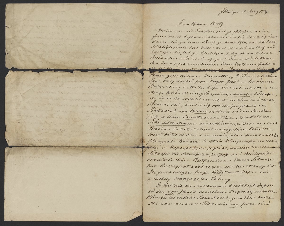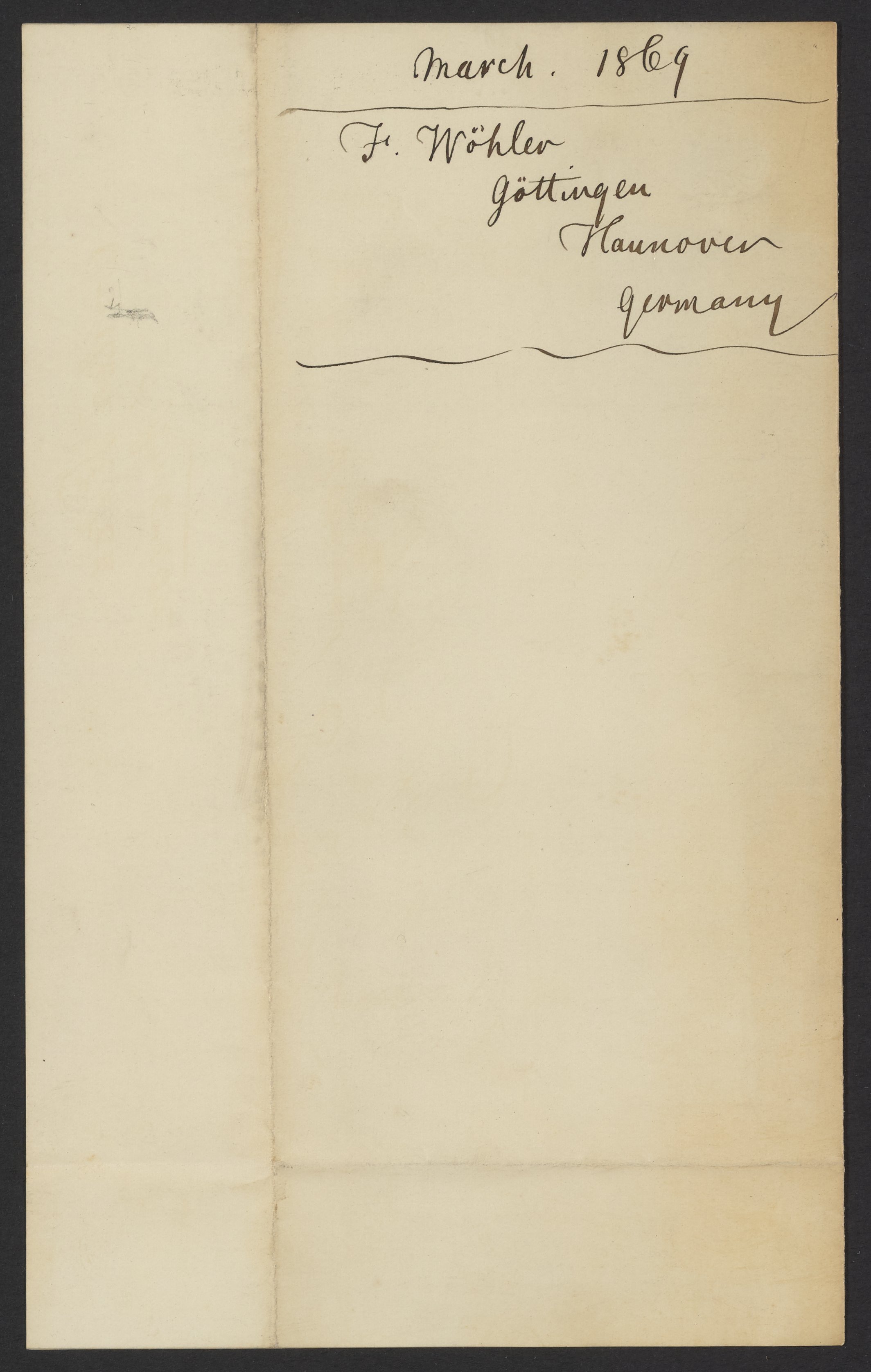 Letter from Friedrich Wöhler to James Curtis Booth, March 18, 1869