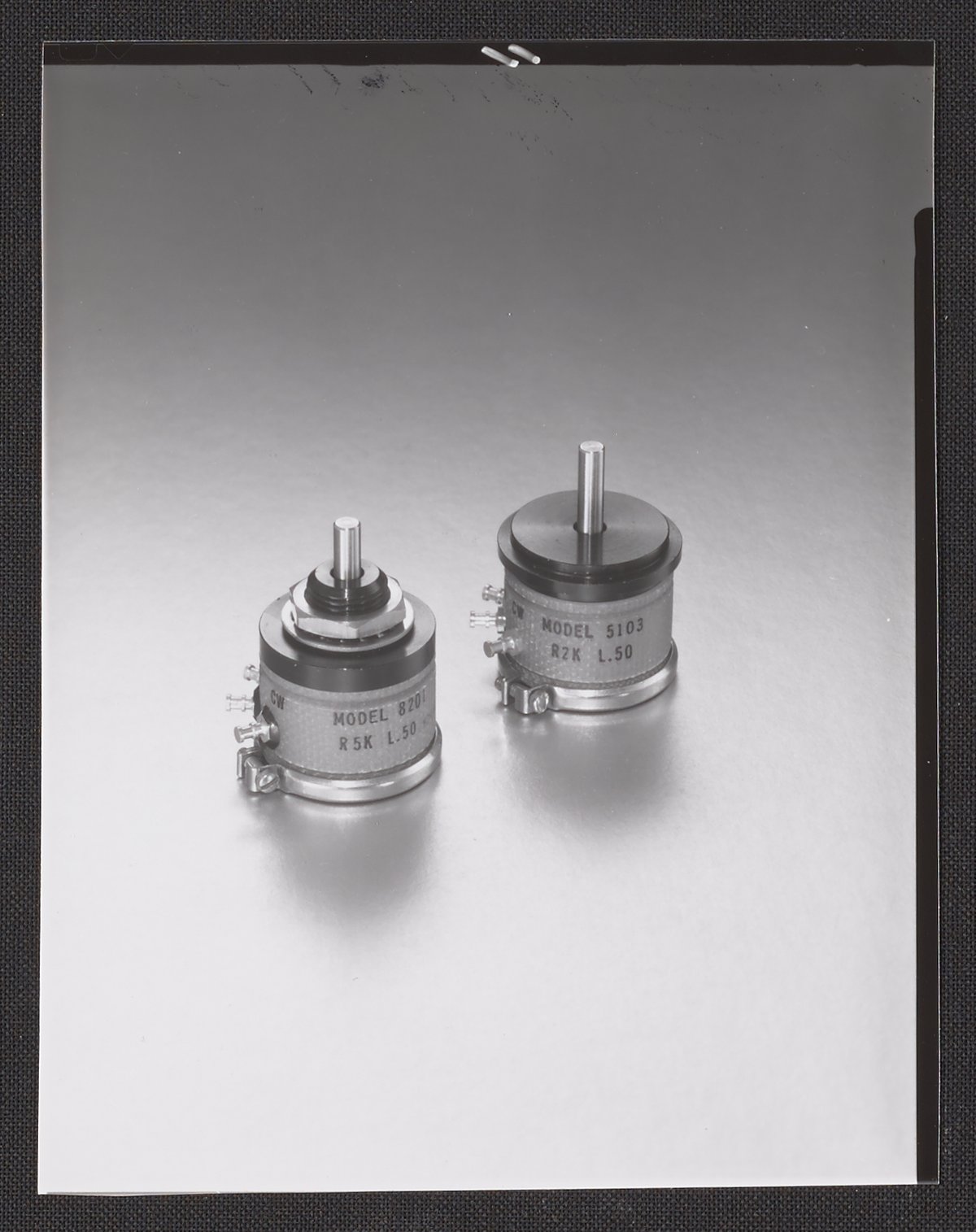 Karjalas' Photo Vision. “Helipot Model 5103 and 8201 Wirewound Potentiometers,” 1950–1969. Beckman Historical Collection, Box 85. Science History Institute. Philadelphia. https://digital.sciencehistory.org/works/sx61dm740.